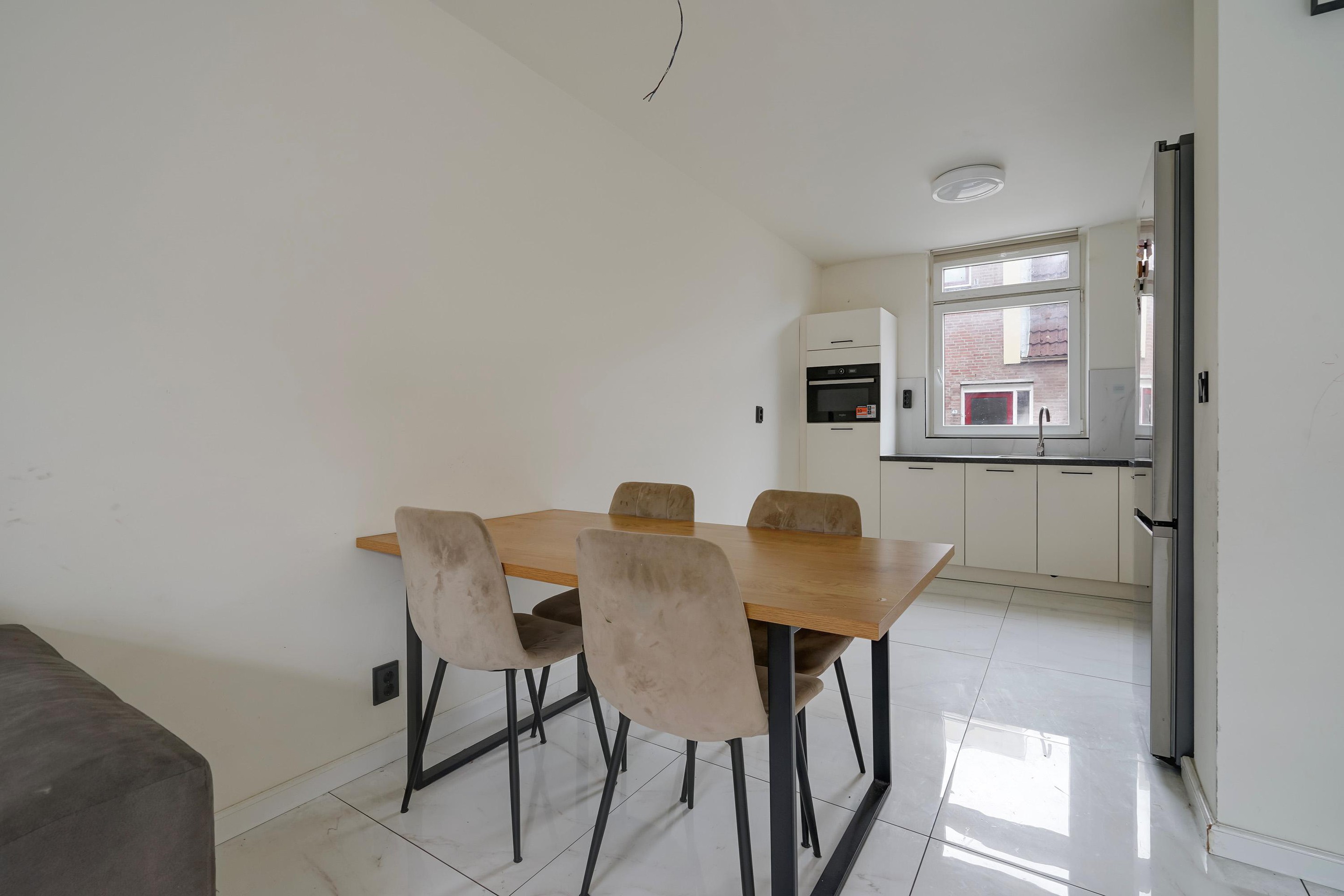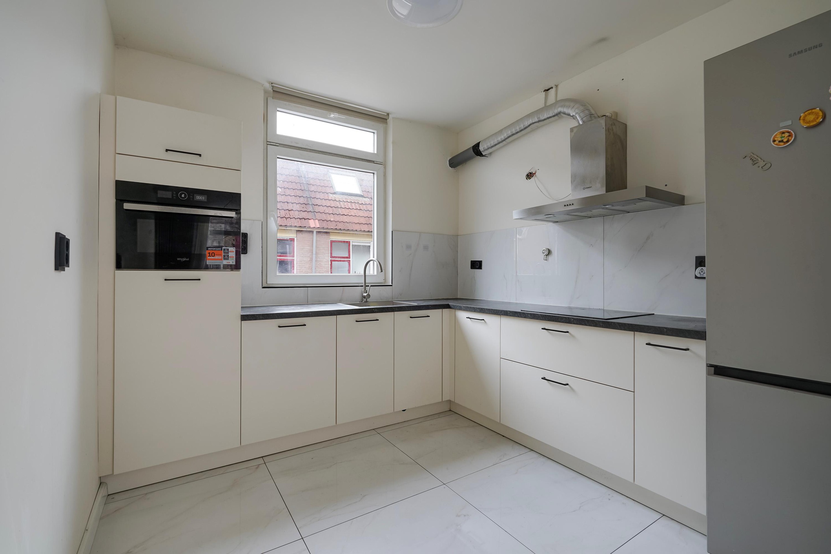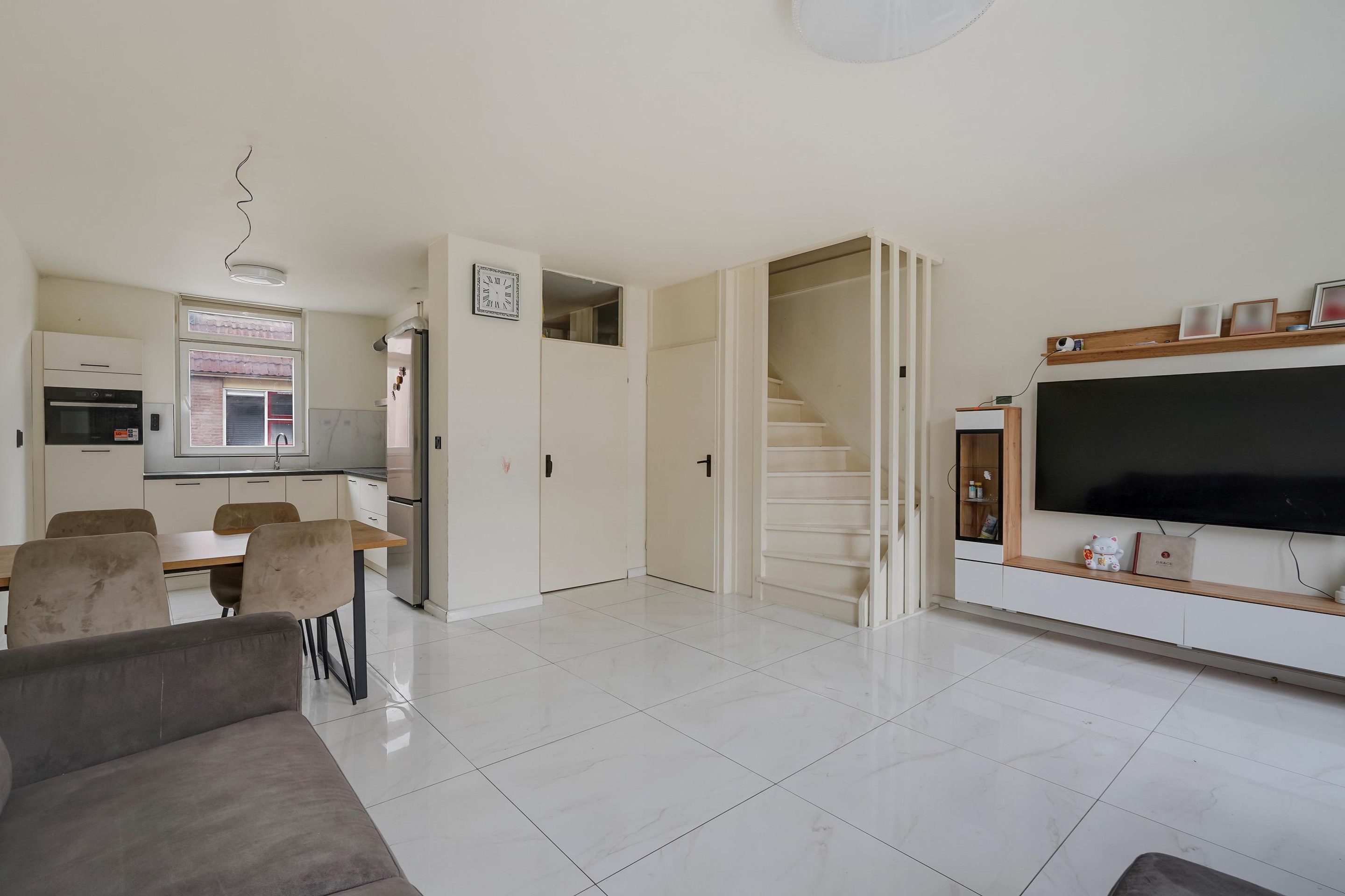 Ruime entree met separaat toilet. De lichte woonkamer vormt het hart van de woning en biedt volop ruimte voor een comfortabele zit- en eethoek. De keuken grenst direct aan de woonkamer en is praktisch ingericht, waardoor koken en gezellig samenzijn moeiteloos samengaan.