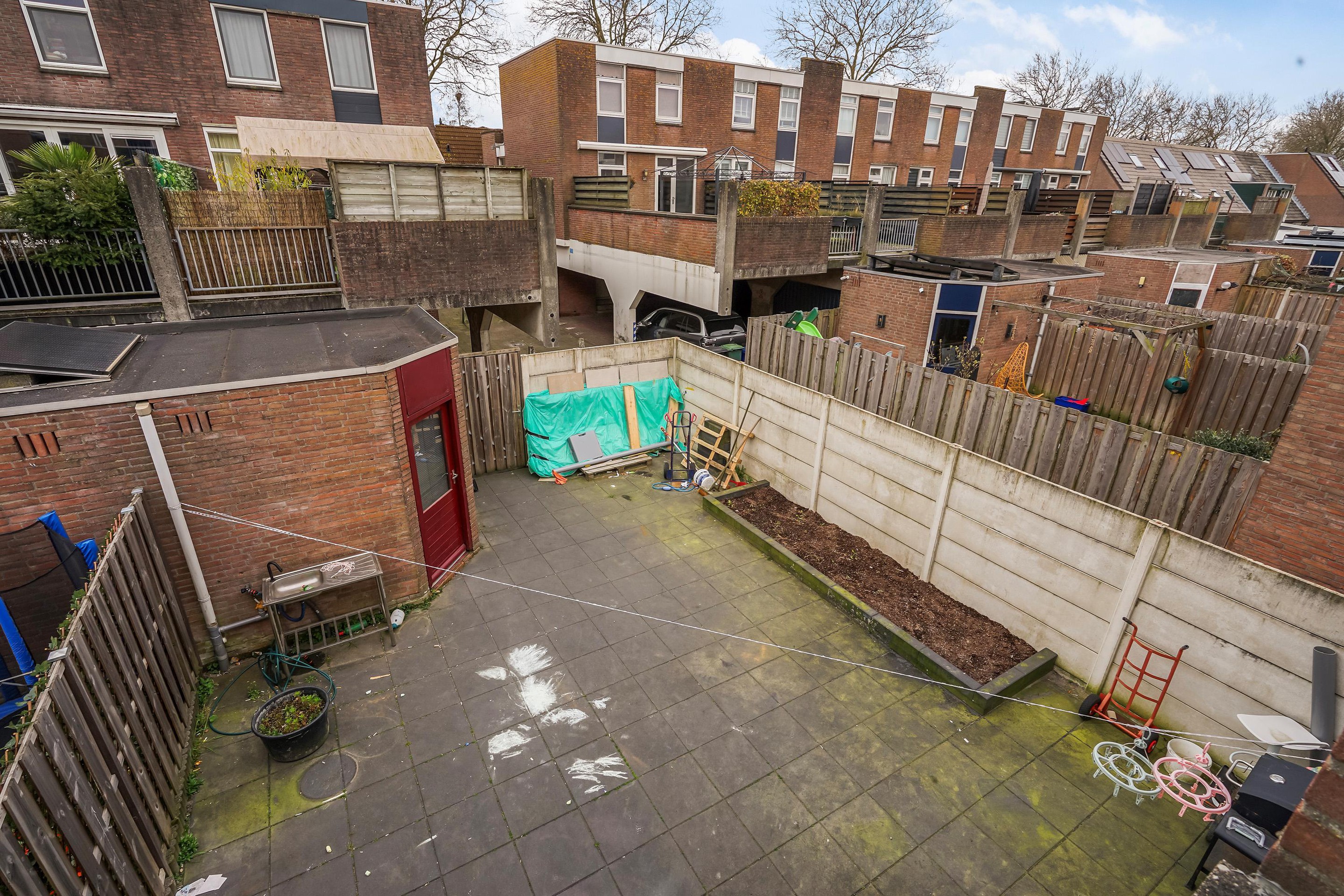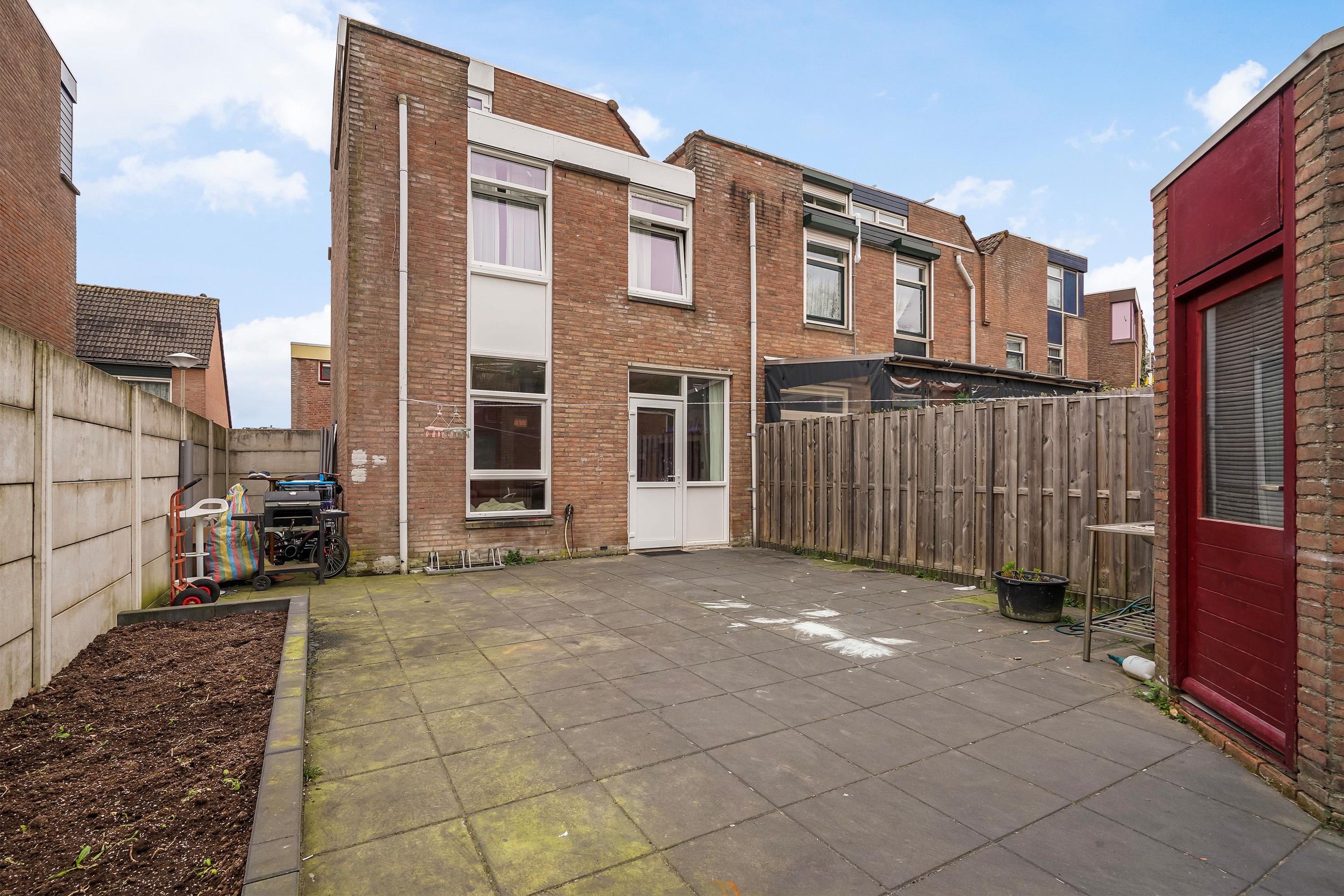De woning beschikt over een uitpandige berging, ideaal voor fietsen, gereedschap en extra opslagruimte.