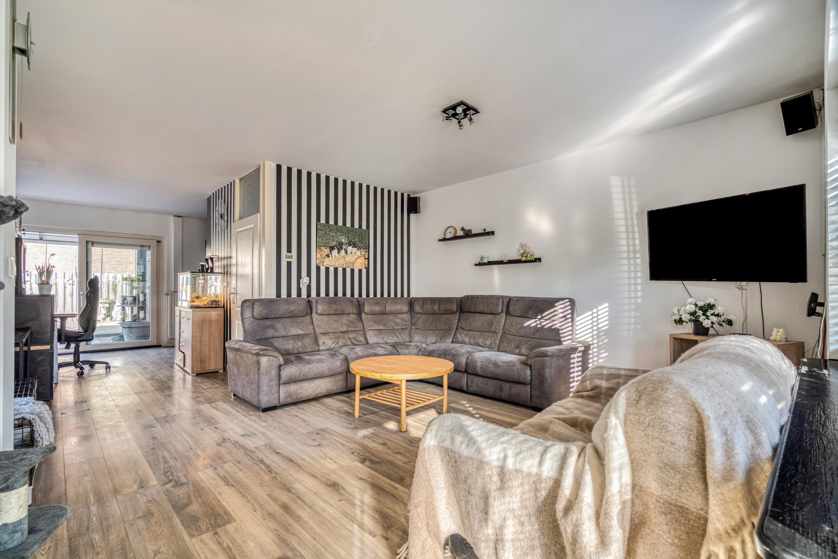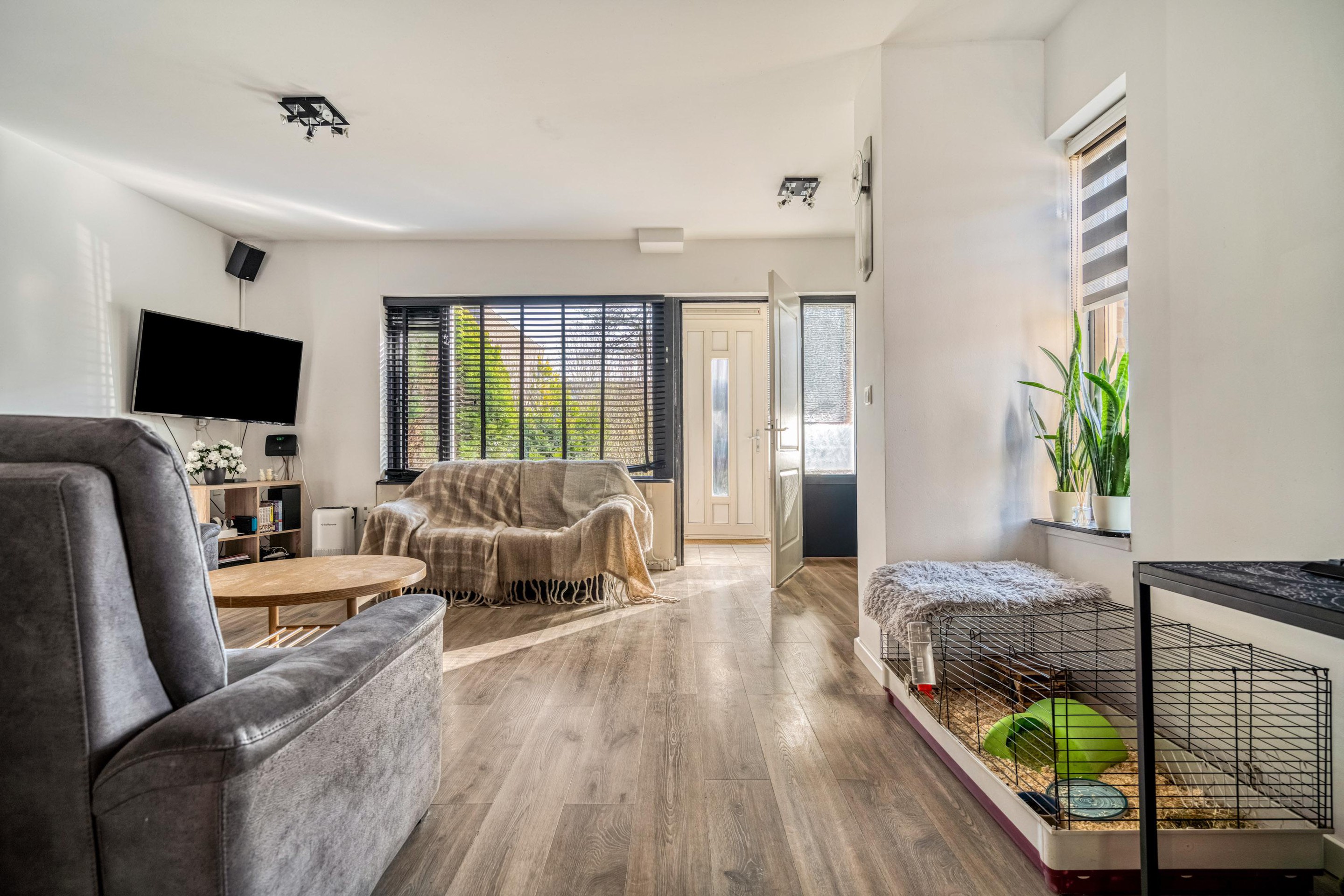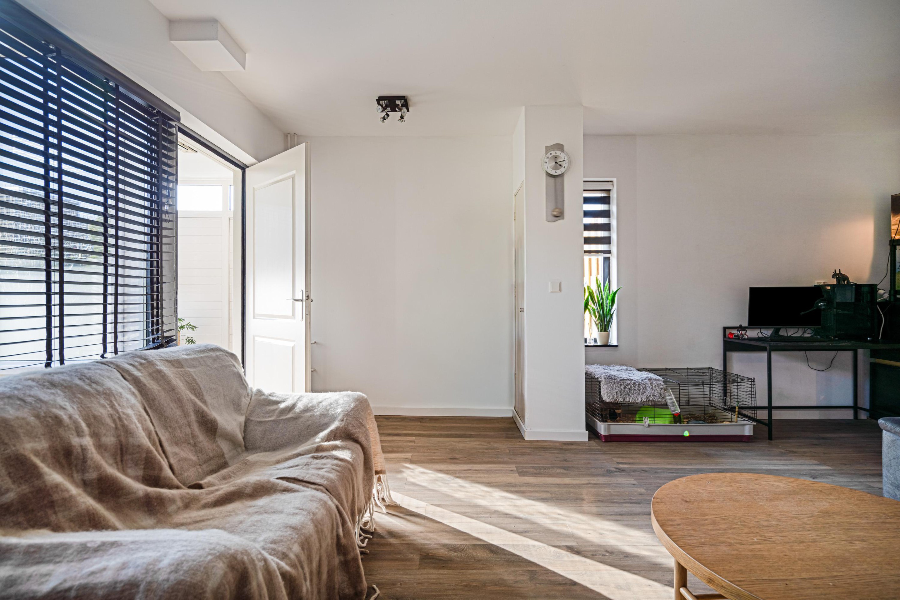 Via de entree (voormalige berging) met toilet betreedt u de woning. De lichte woonkamer aan de voorzijde zorgt voor een prettige leefruimte. Aan de tuinzijde bevindt zich de halfopen keuken met eetkamer — dé plek om gezellig samen te komen.