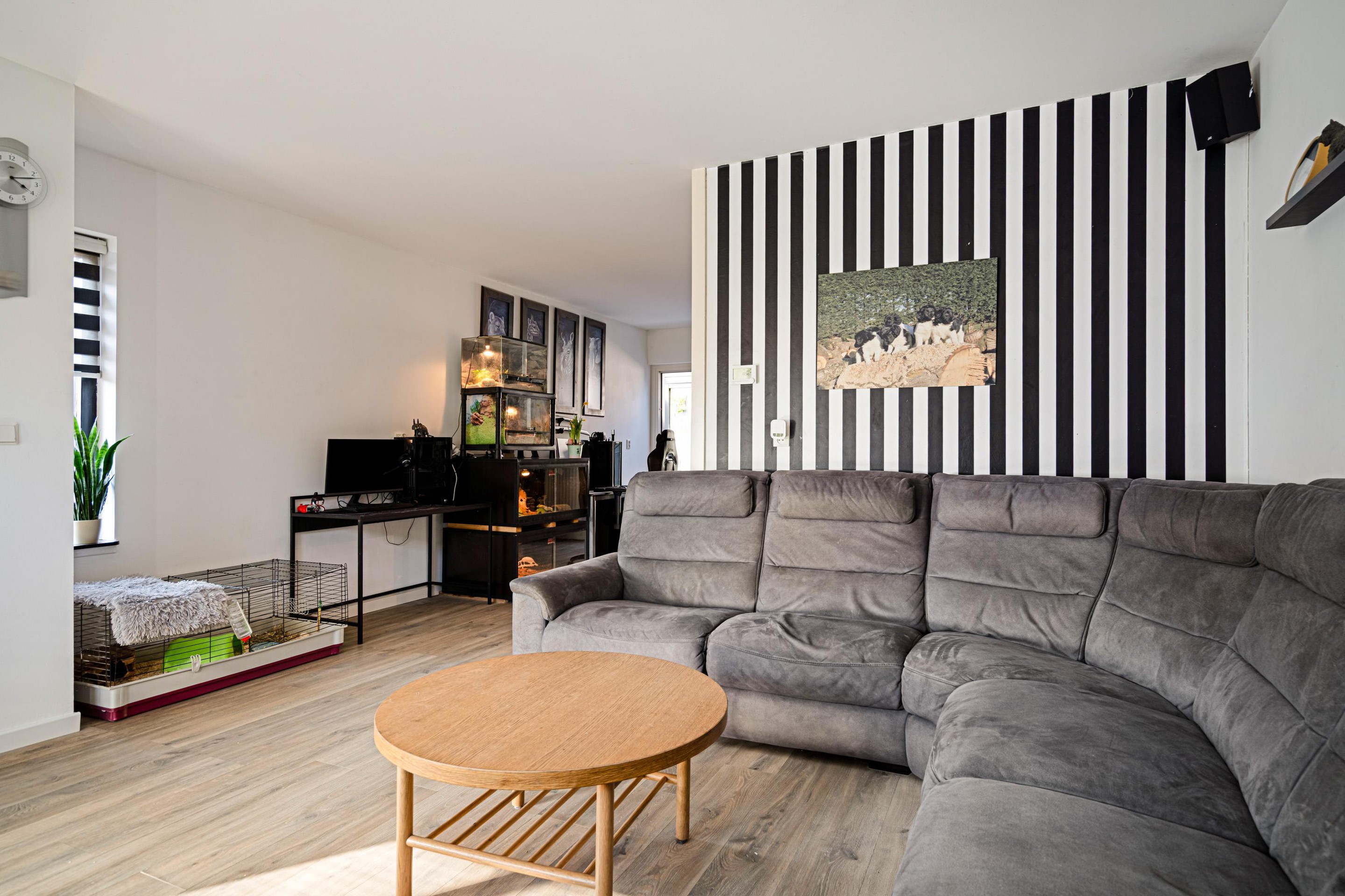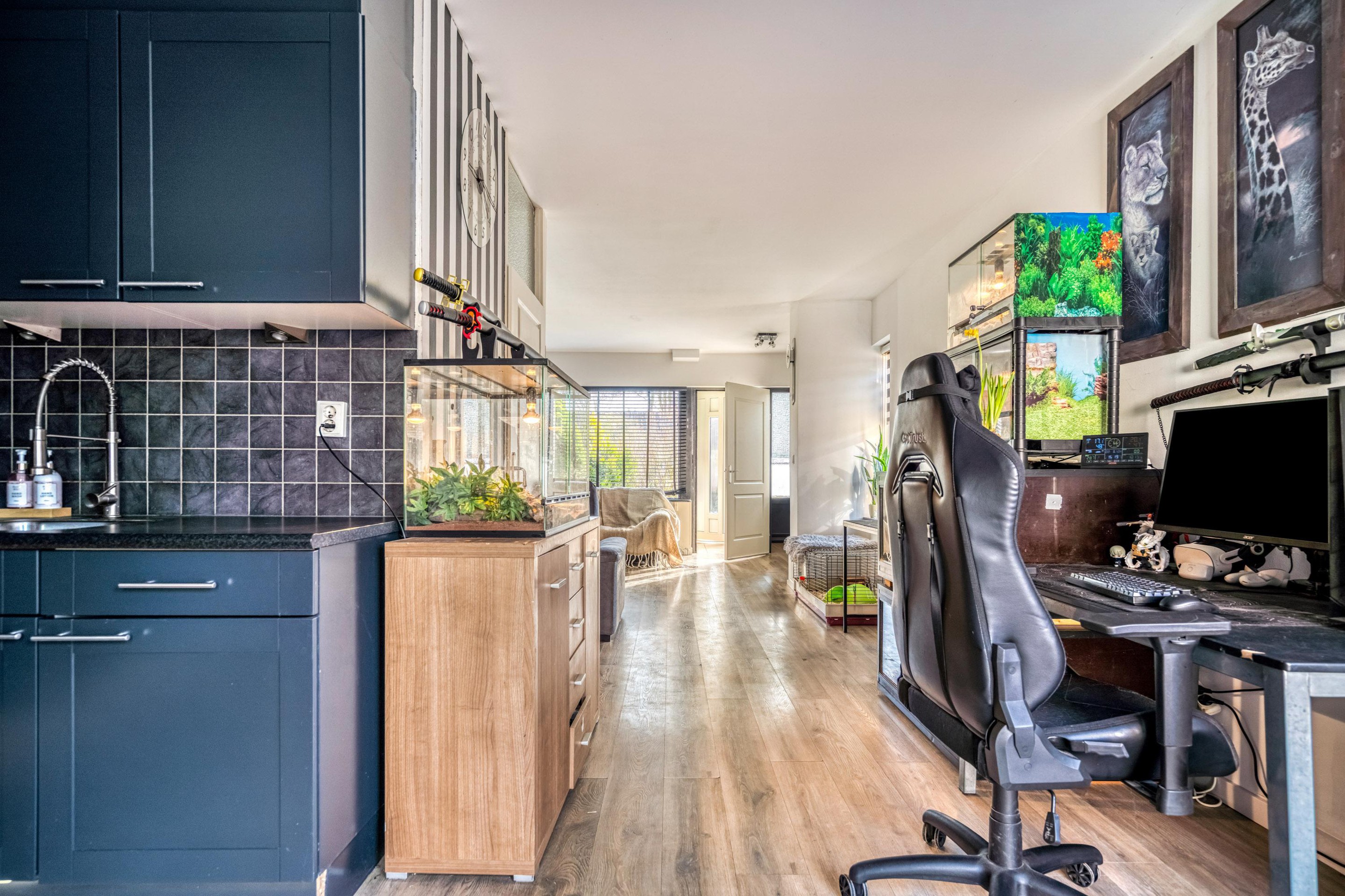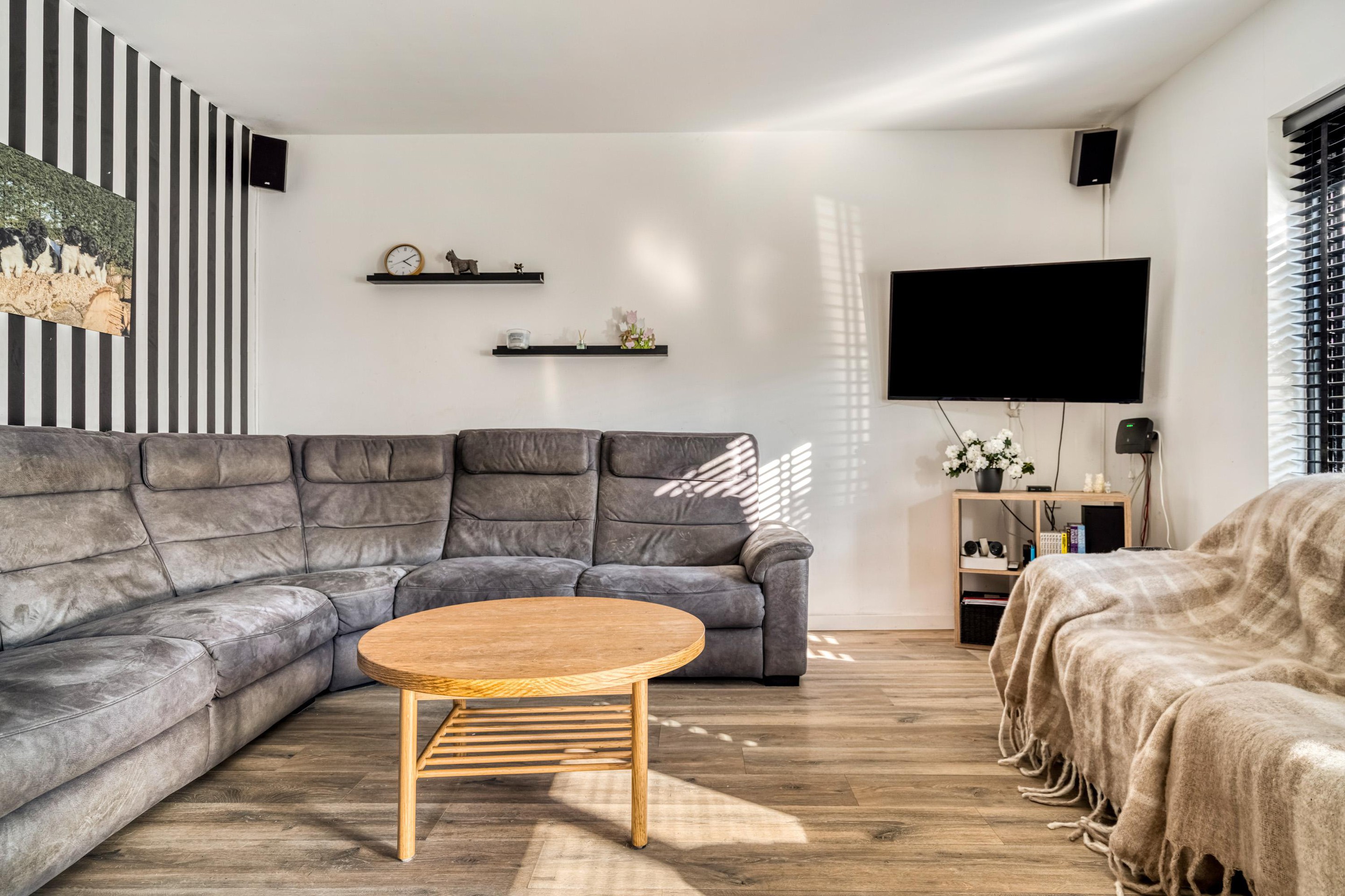 Via de entree (voormalige berging) met toilet betreedt u de woning. De lichte woonkamer aan de voorzijde zorgt voor een prettige leefruimte. Aan de tuinzijde bevindt zich de halfopen keuken met eetkamer — dé plek om gezellig samen te komen.