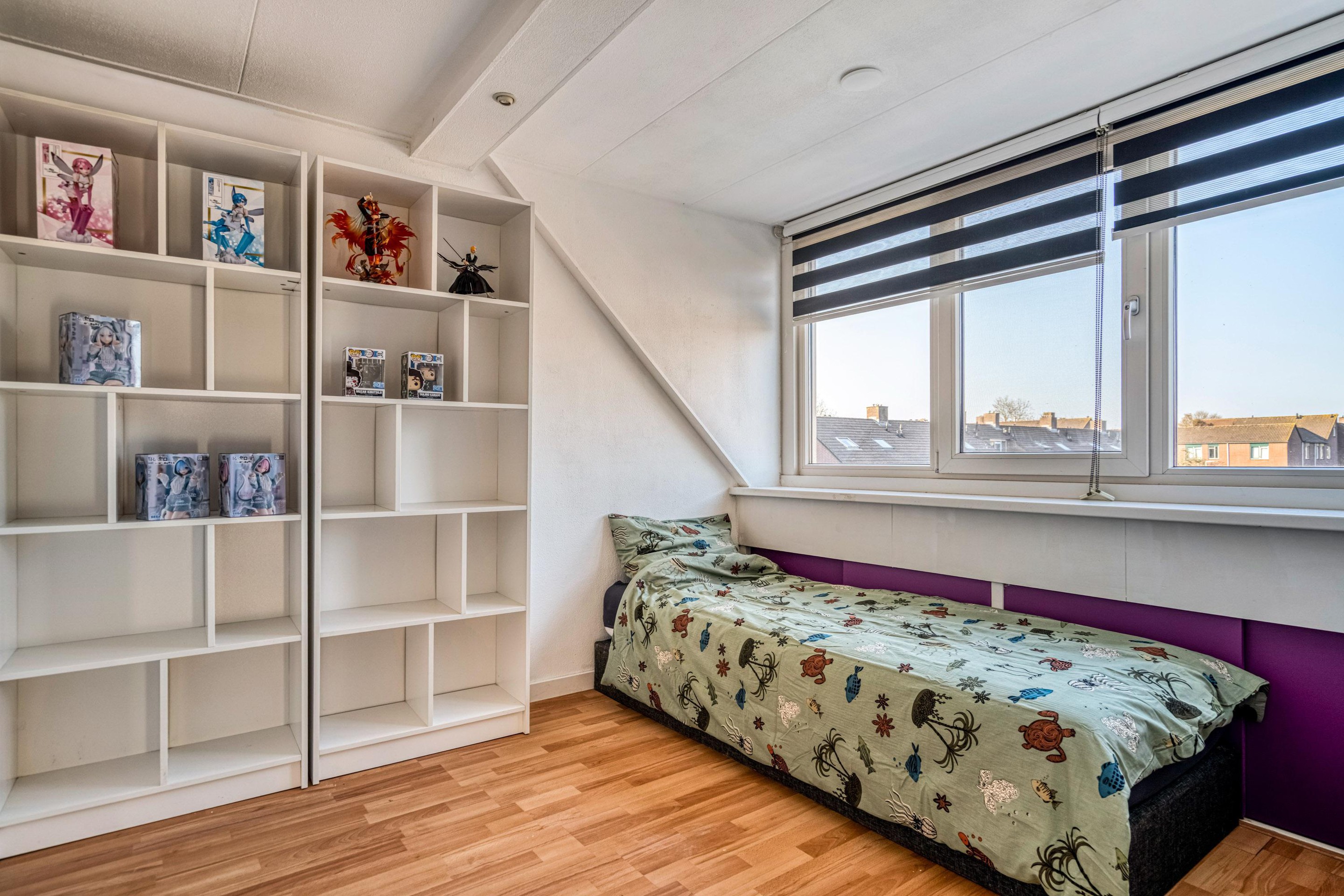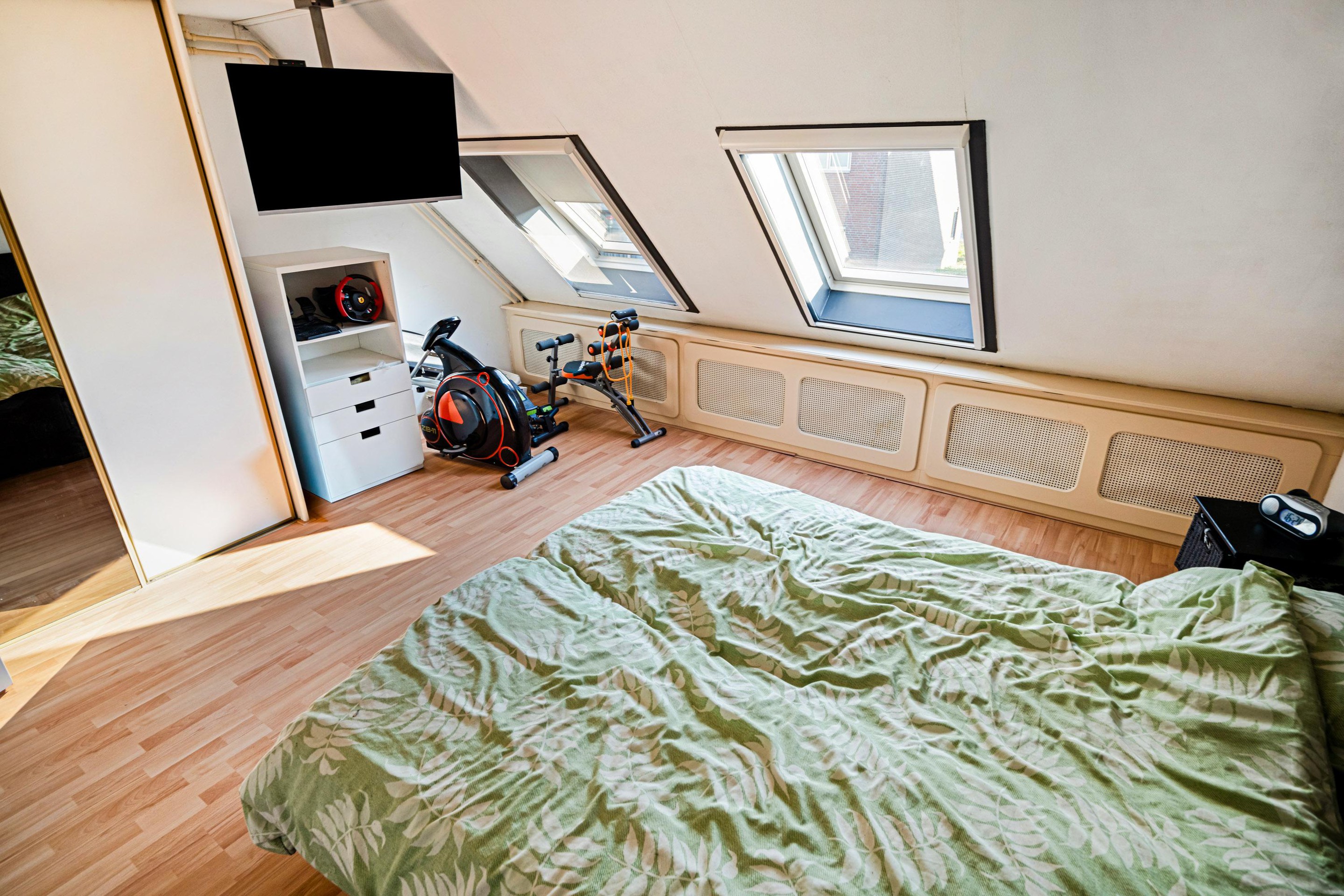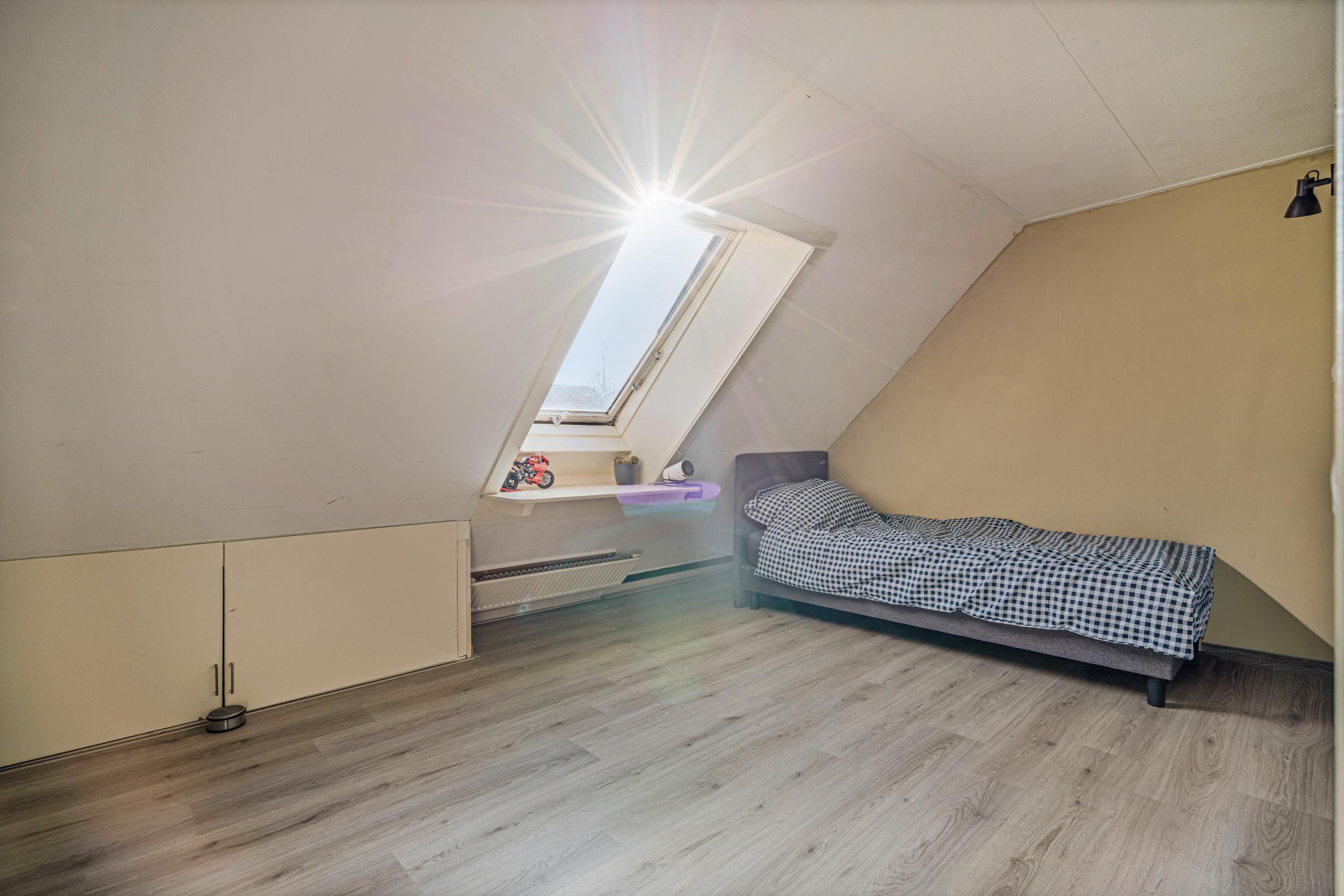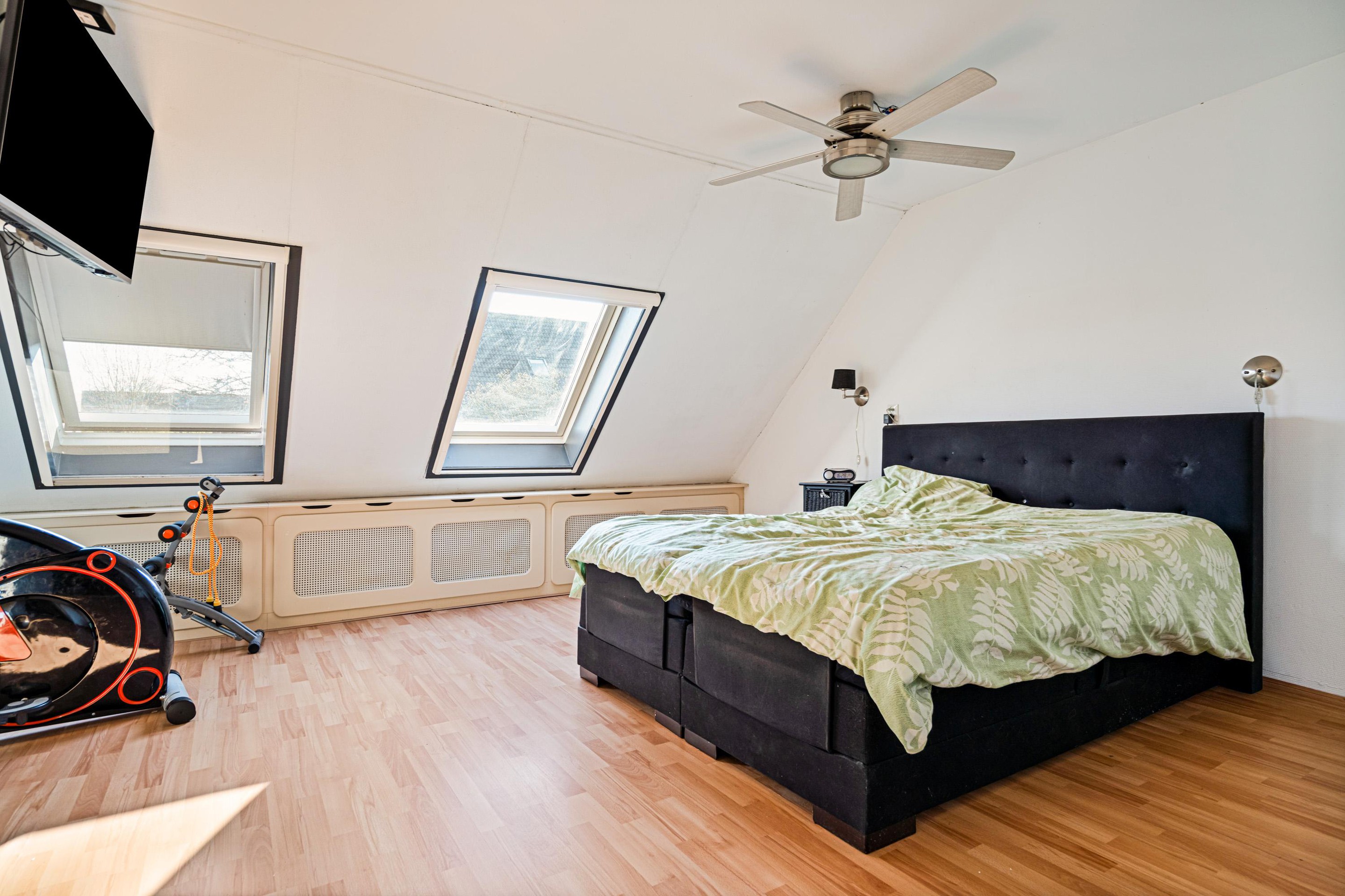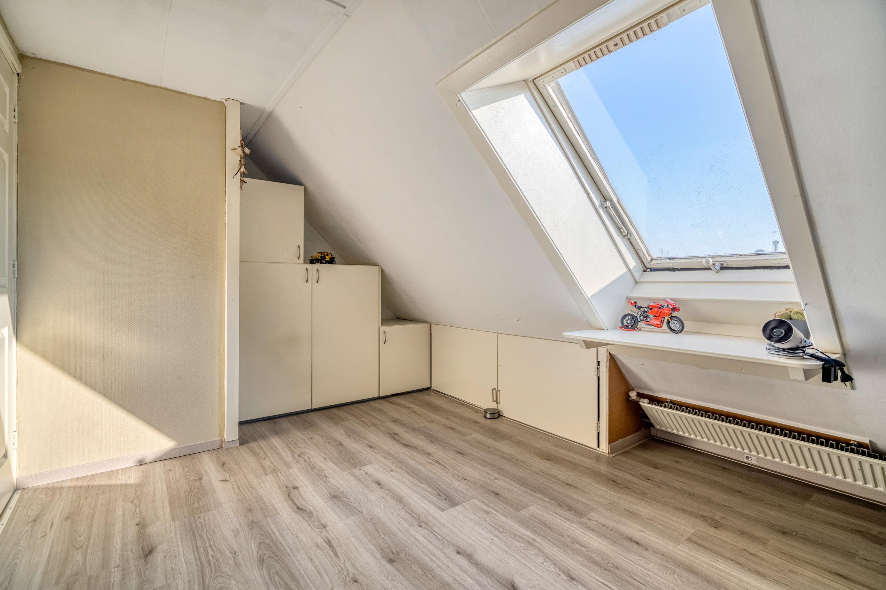 Tweede verdieping Hier vindt u twee ruime slaapkamers, waaronder een royale kamer over de volledige breedte van de woning.