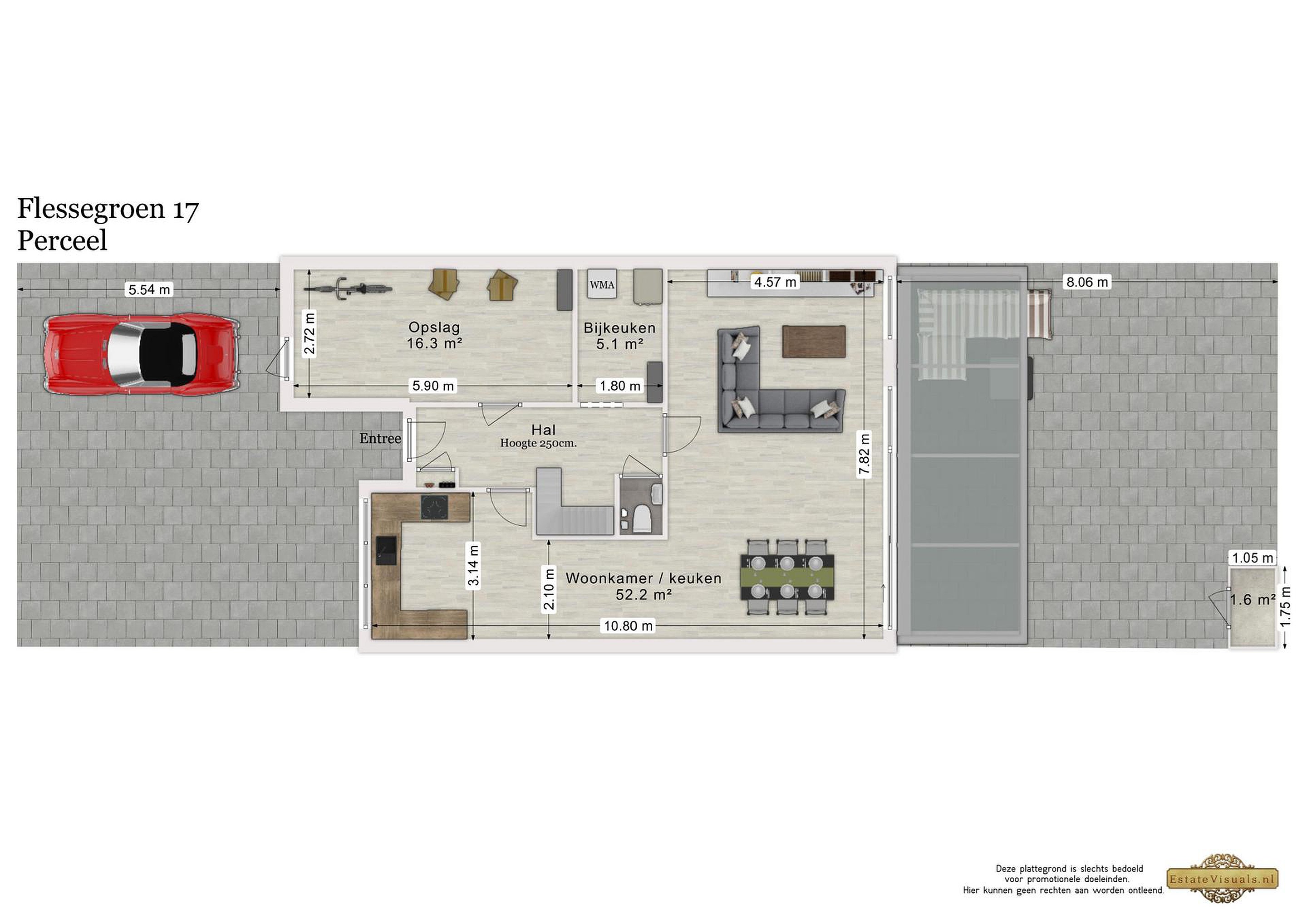 De voortuin beschikt over parkeergelegenheid op eigen terrein. Via het ruime voorportaal bereik je de hal, kelderruimte, keuken en bijkeuken.