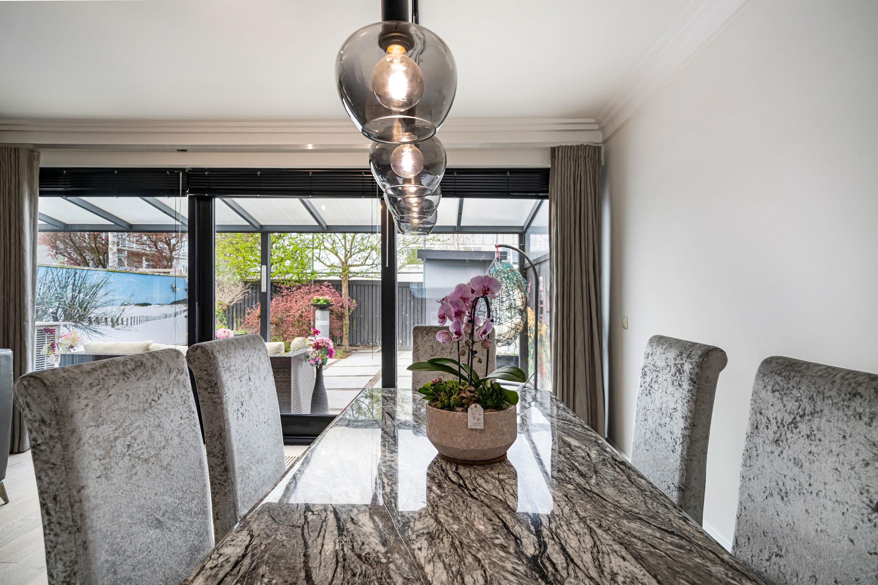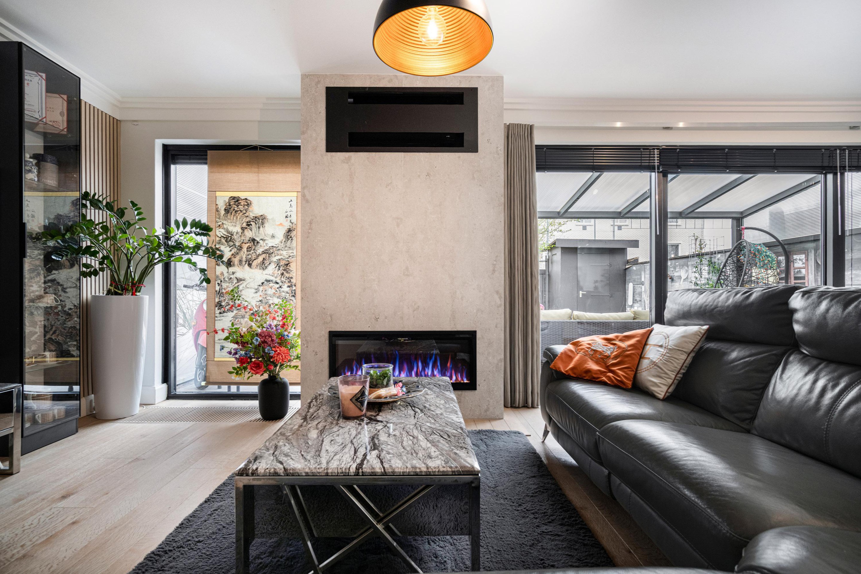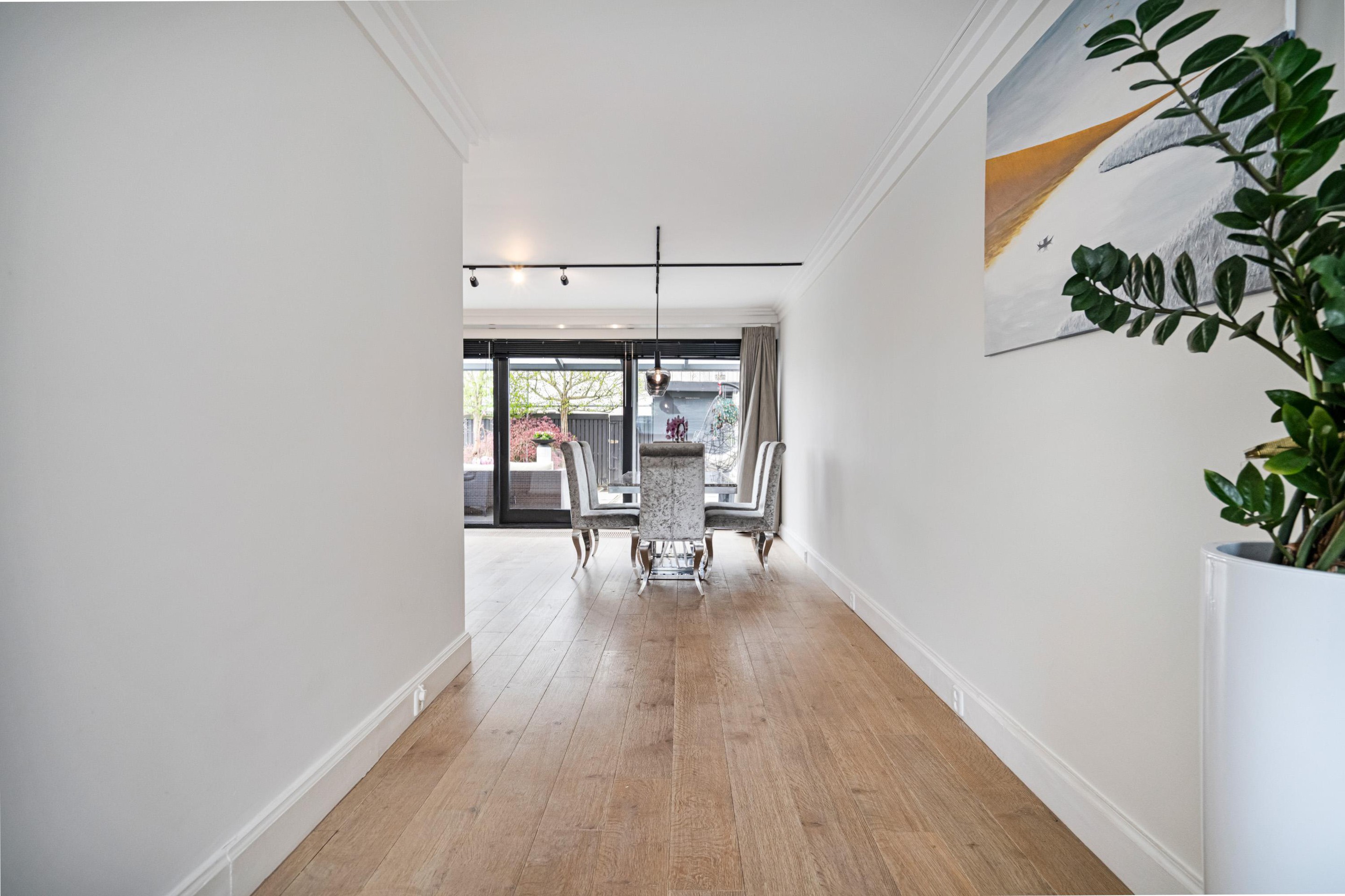 De royale woonkamer van maar liefst 7,82 meter breed is heerlijk licht dankzij de grote raampartijen aan de achterzijde. De ruimte is voorzien van een sfeervolle haard, een fraaie vloerafwerking en biedt via de schuifpui toegang tot de ruime achtertuin.