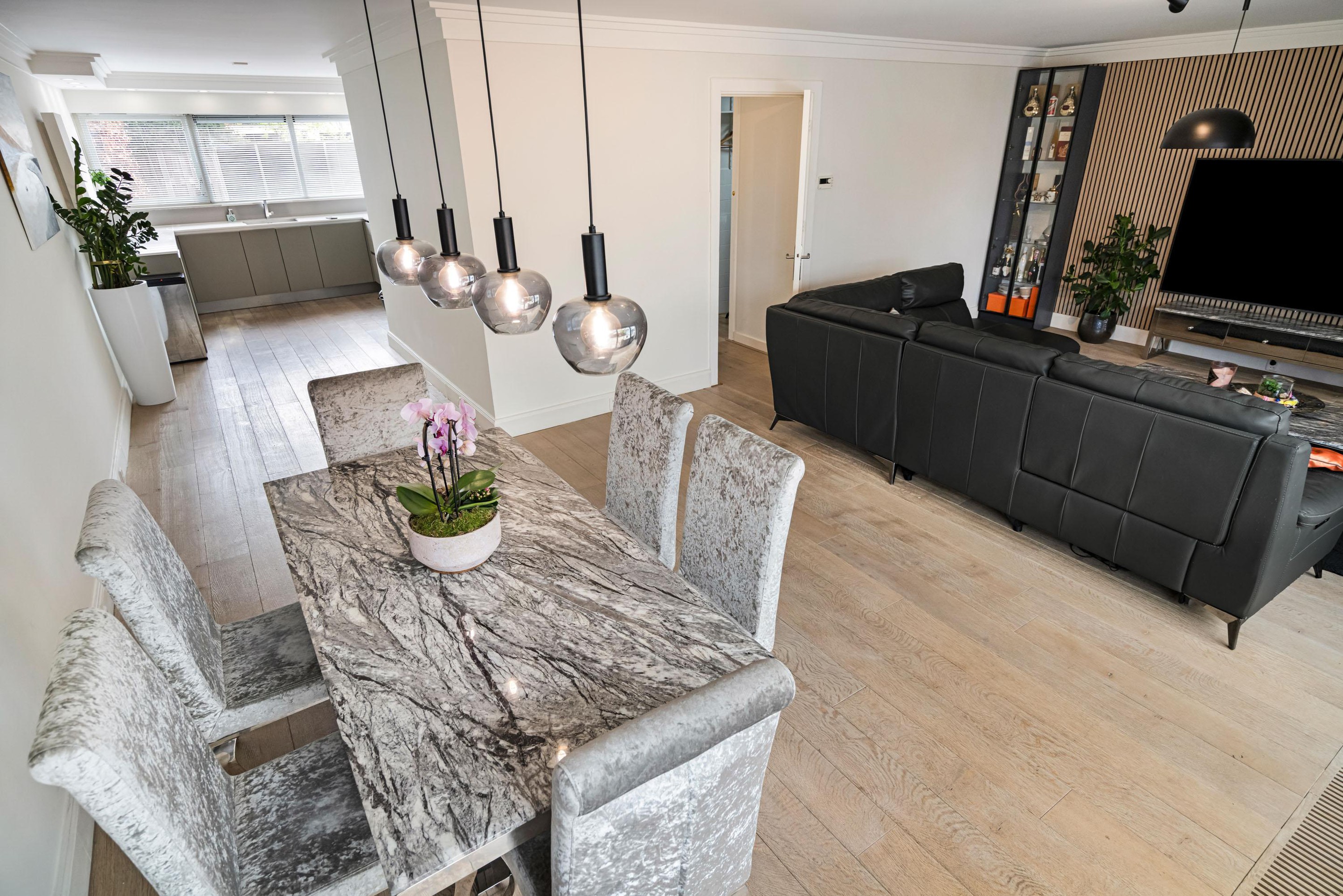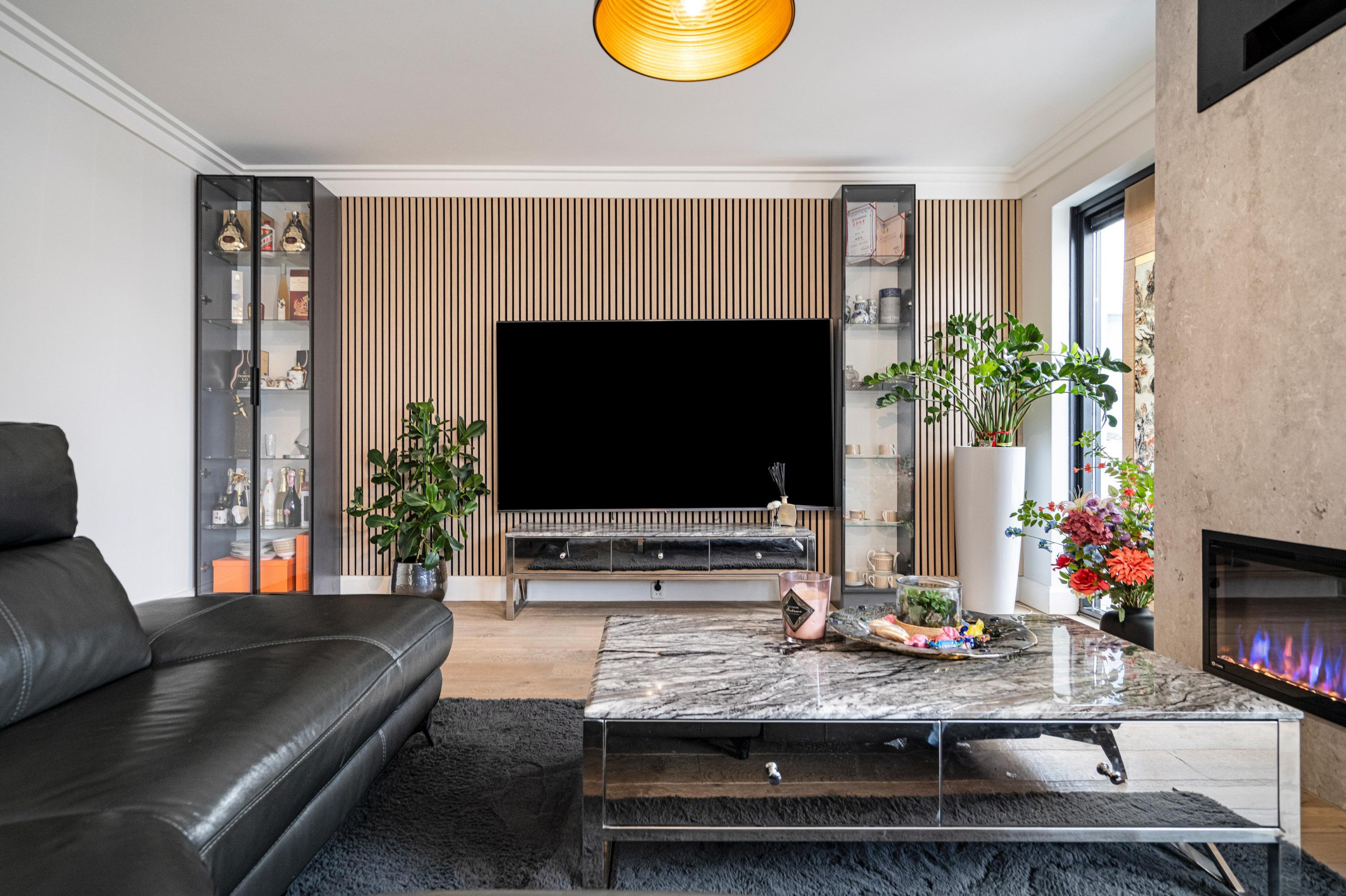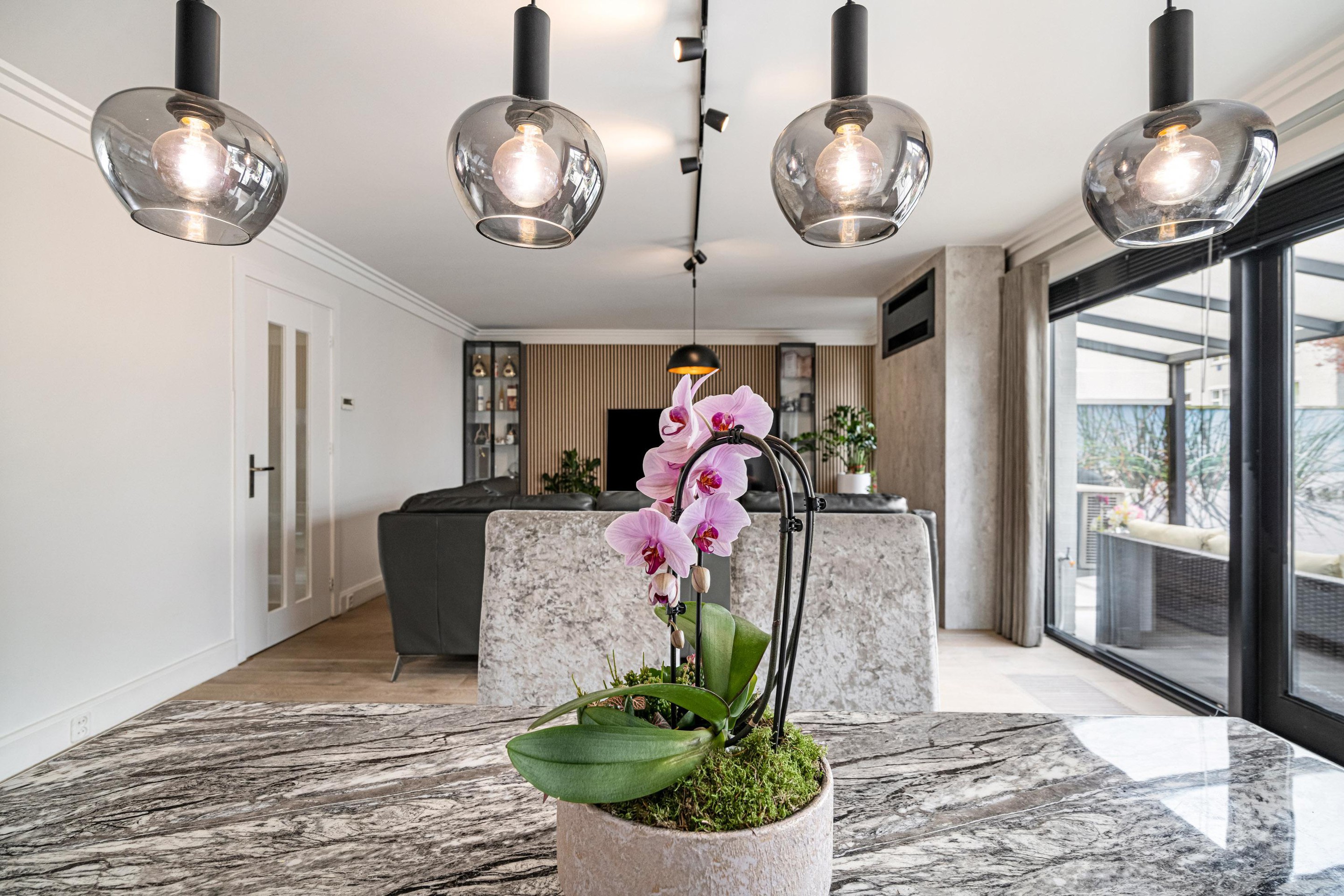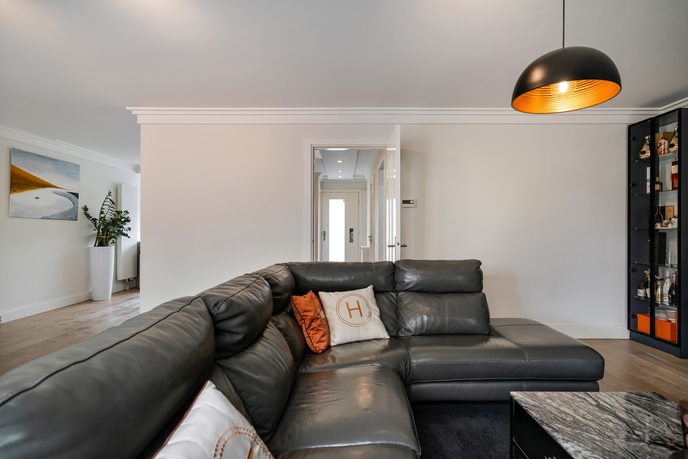 De royale woonkamer van maar liefst 7,82 meter breed is heerlijk licht dankzij de grote raampartijen aan de achterzijde. De ruimte is voorzien van een sfeervolle haard, een fraaie vloerafwerking en biedt via de schuifpui toegang tot de ruime achtertuin.