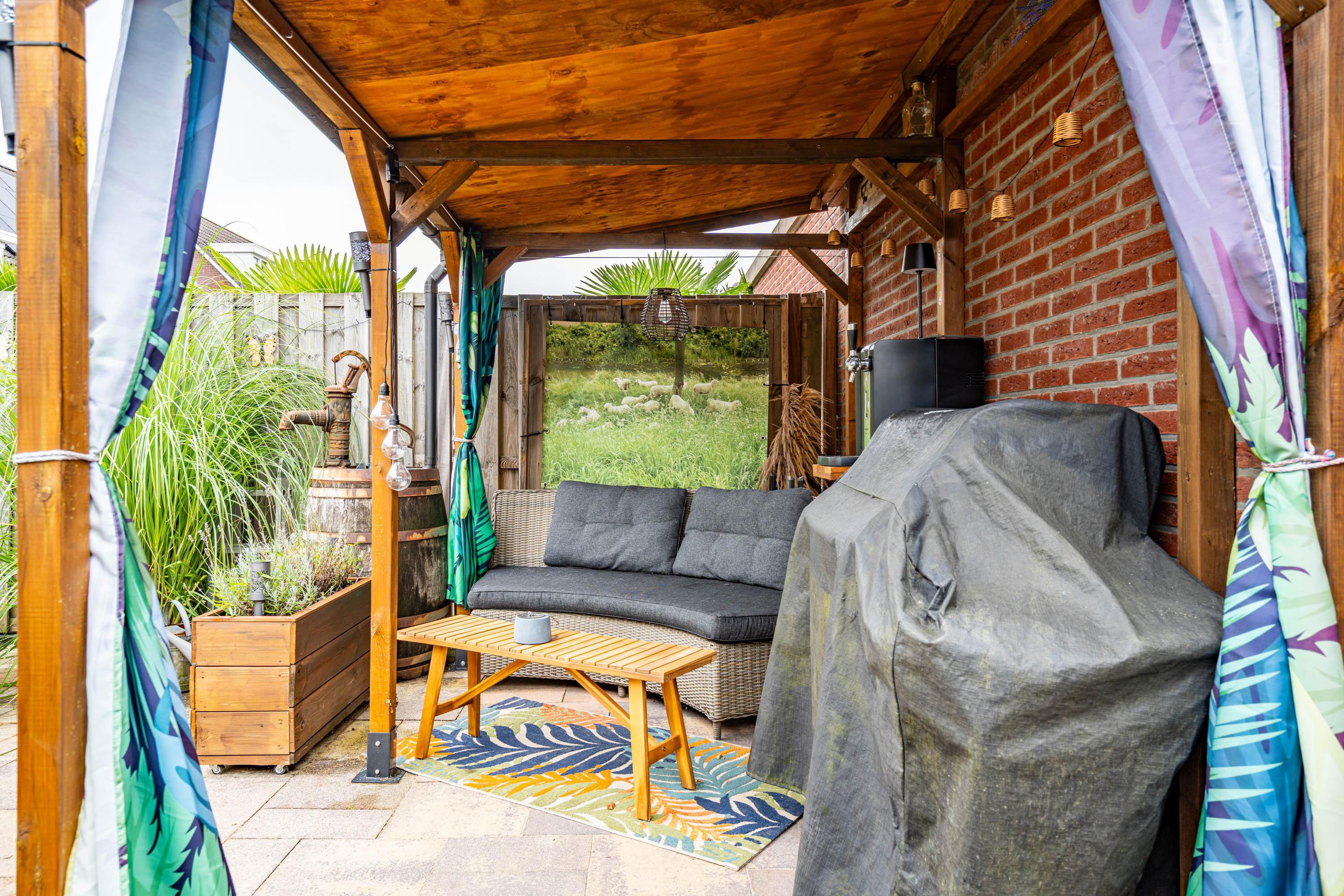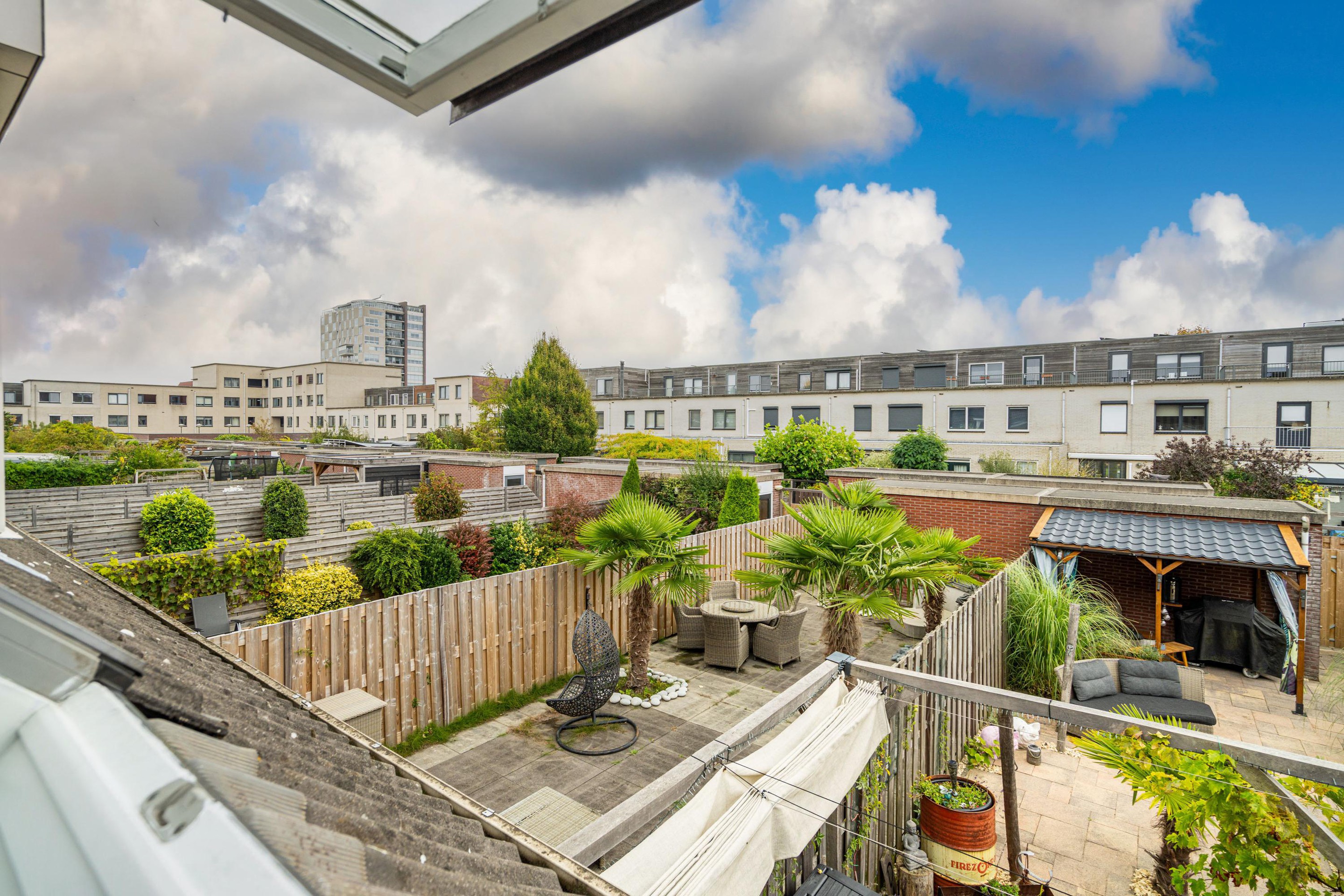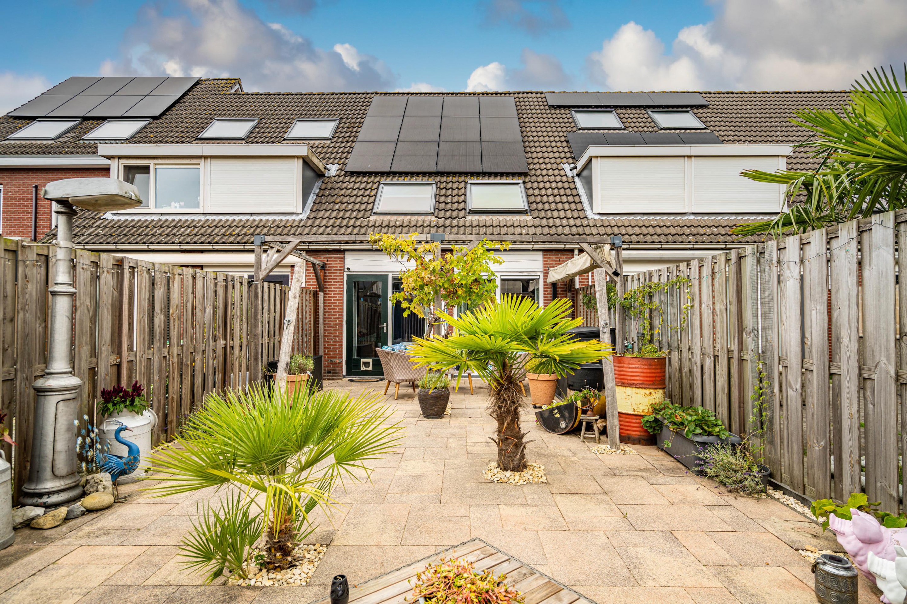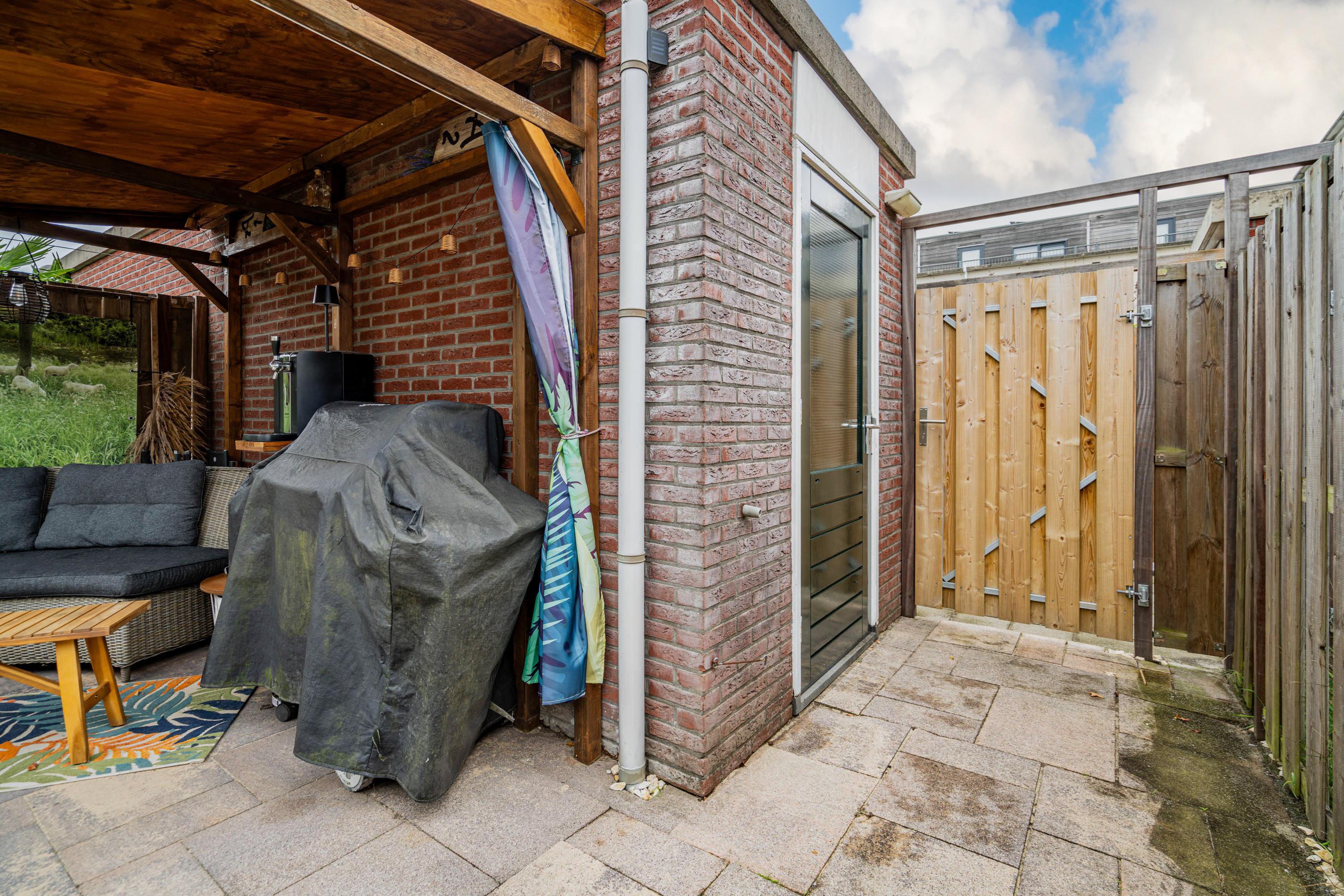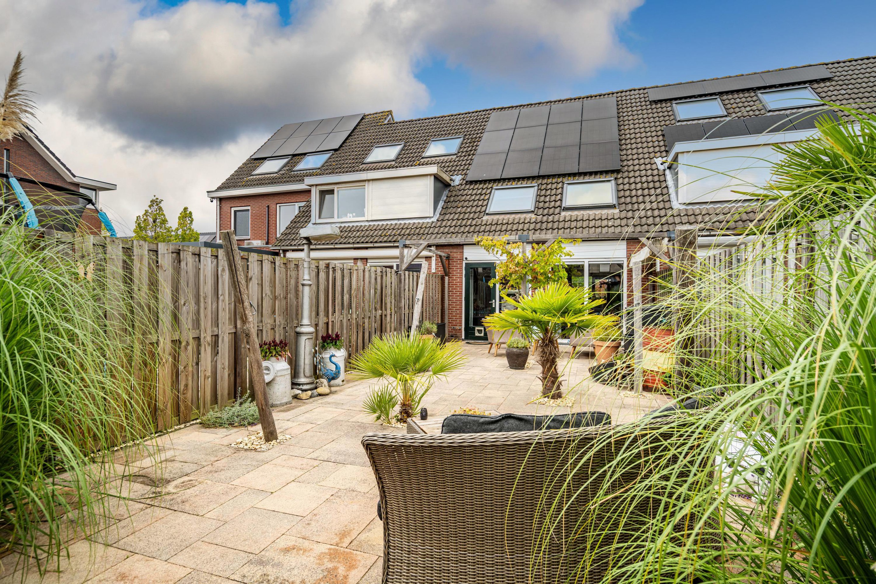 De achtertuin is een heerlijke plek om te ontspannen. Dankzij het schaduwdoek en de overkapping aan de achterzijde heeft u op warme dagen altijd een koel plekje. Verder beschikt de tuin over een praktische berging en een achterom.