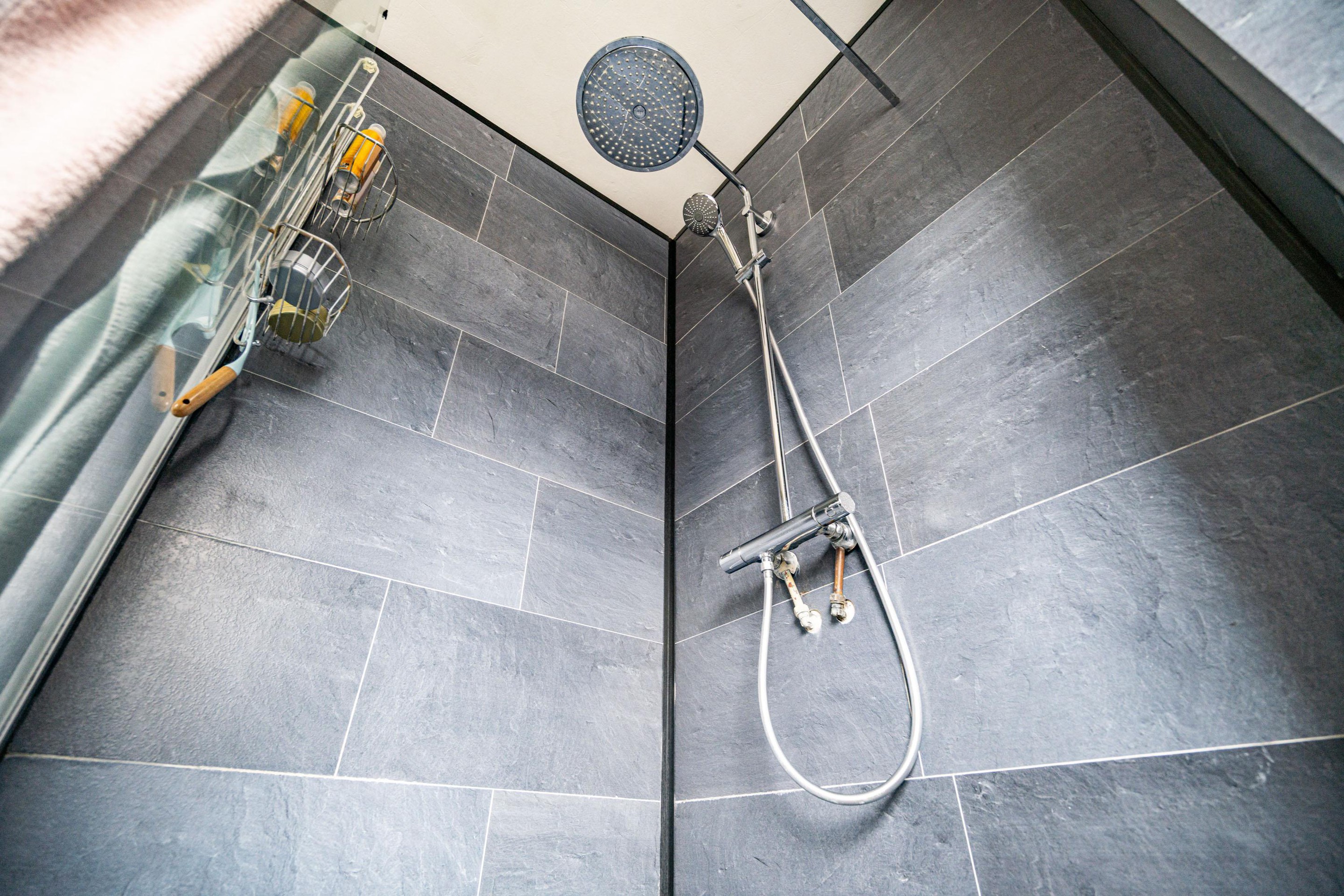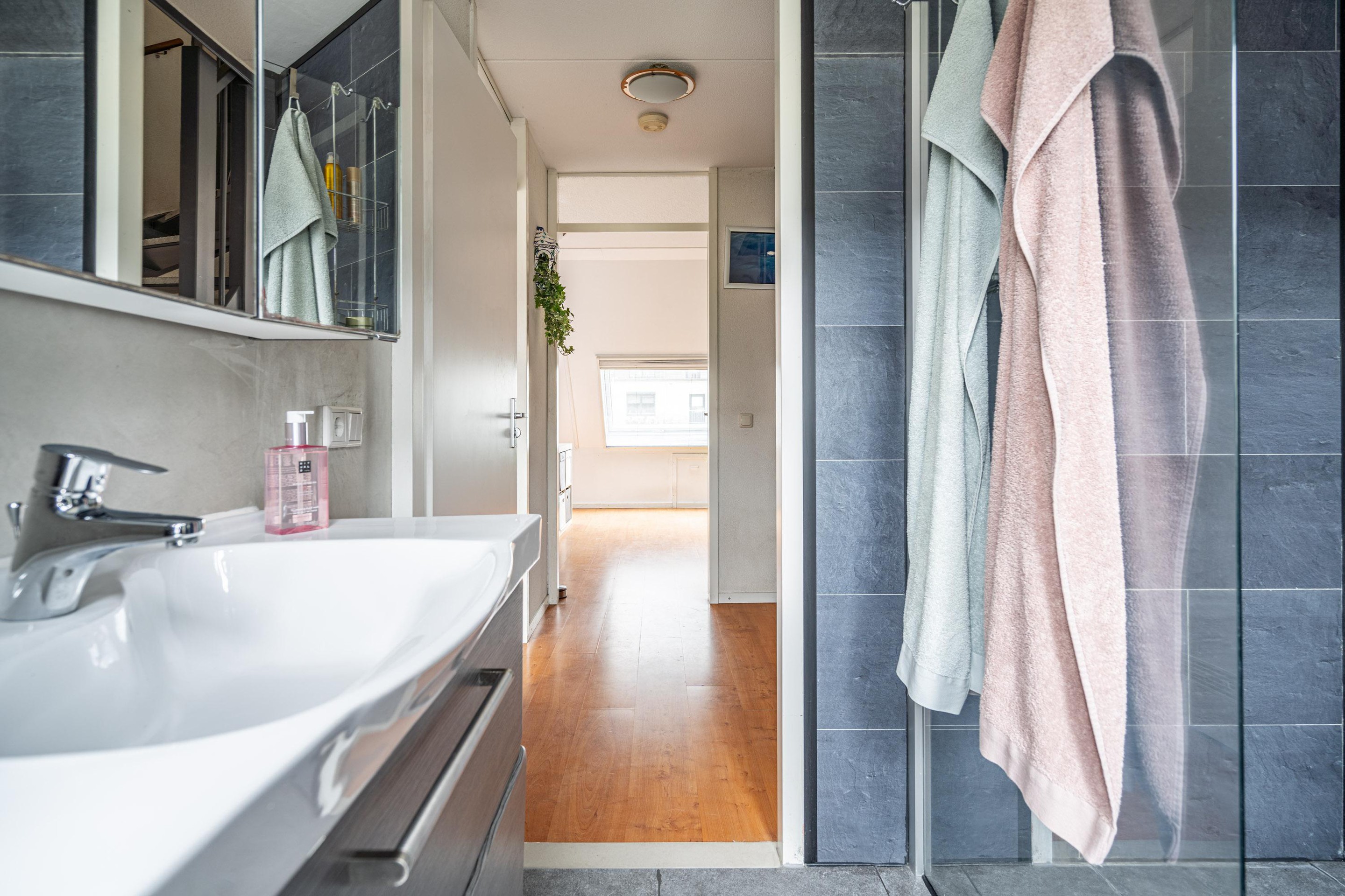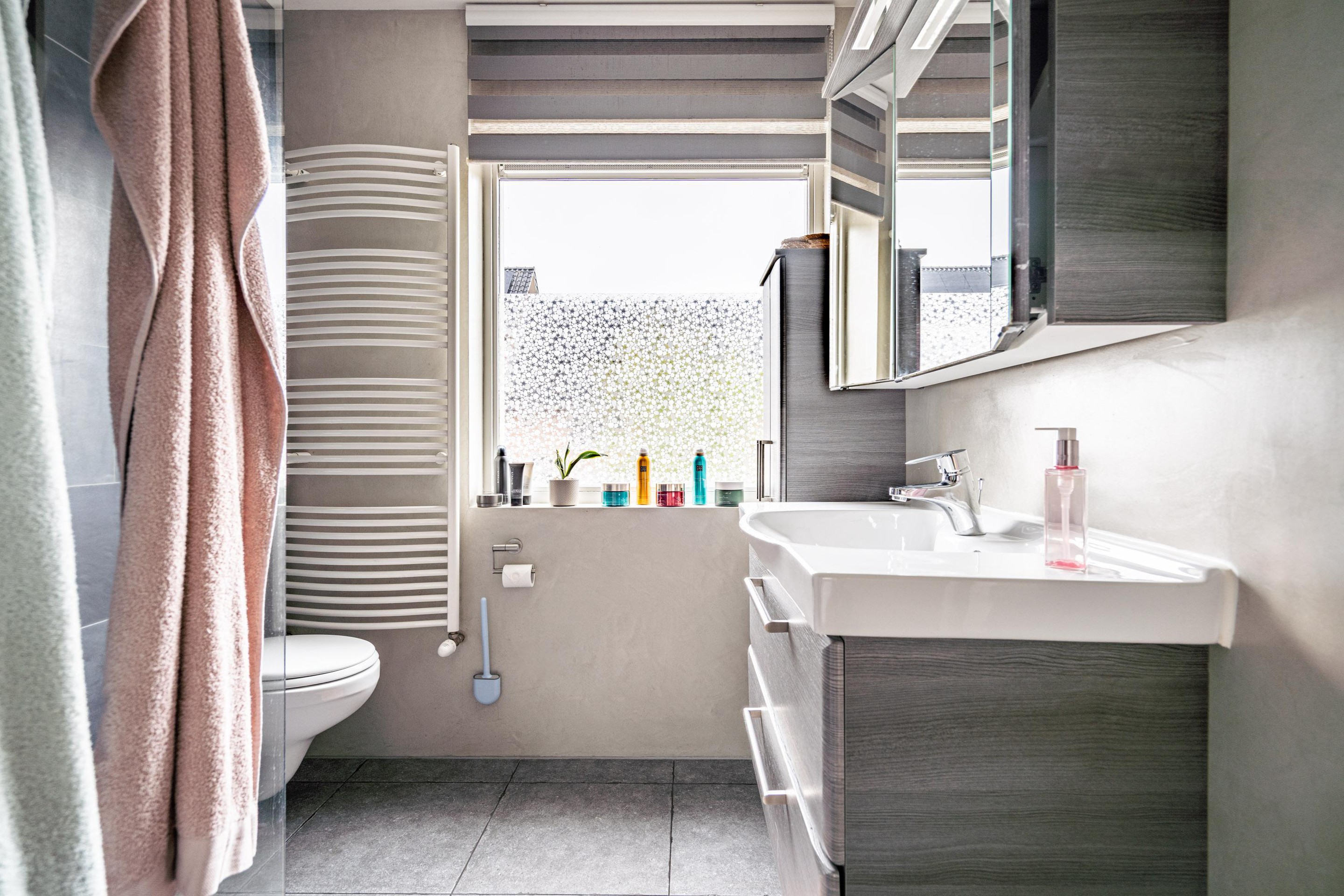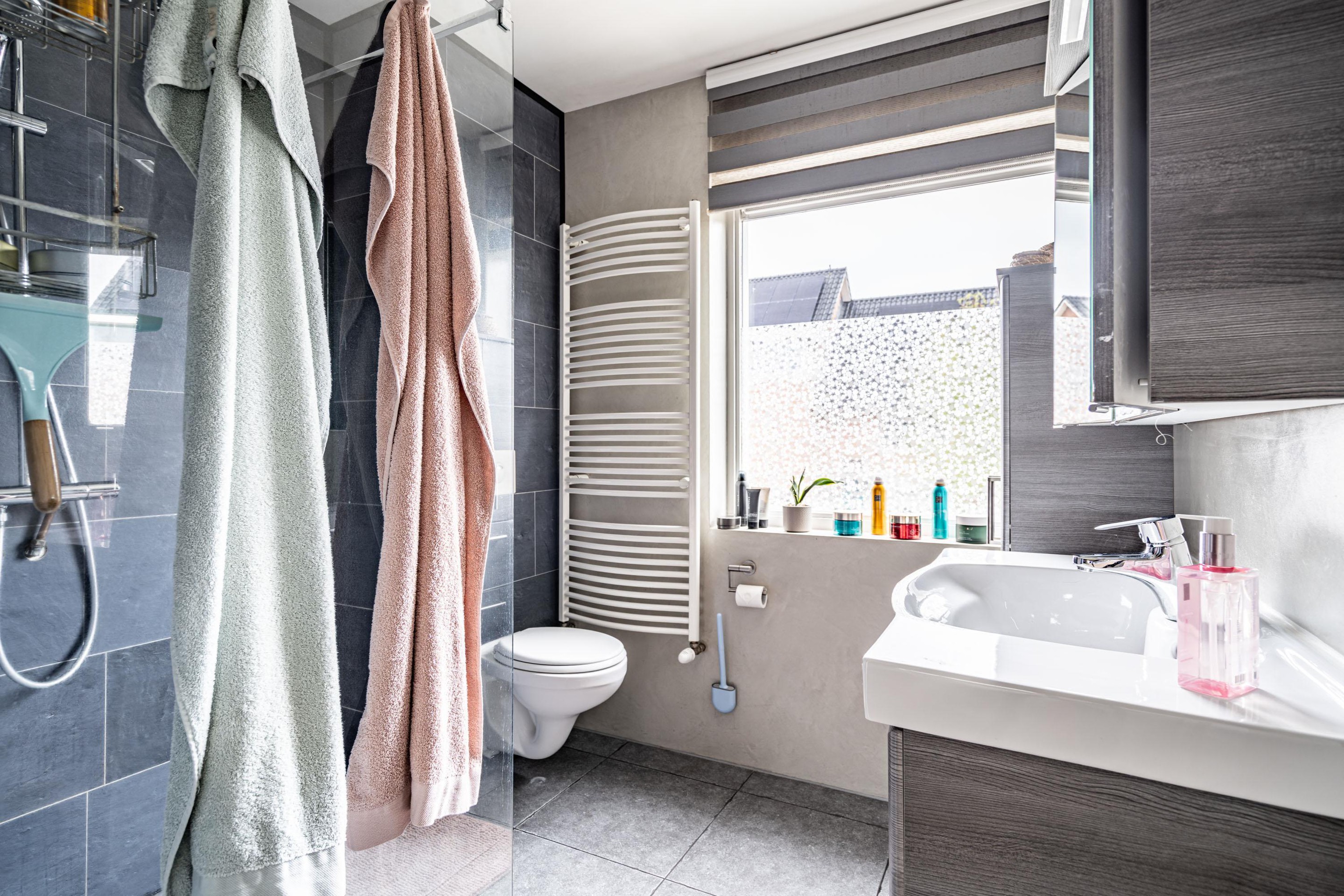 Vanaf de overloop bereikt u twee ruime slaapkamers, beide voorzien van airconditioning. De nette badkamer beschikt over een douche, wastafelmeubel, extra opbergruimte, een tweede toilet en een raam dat zorgt voor natuurlijk licht en ventilatie.