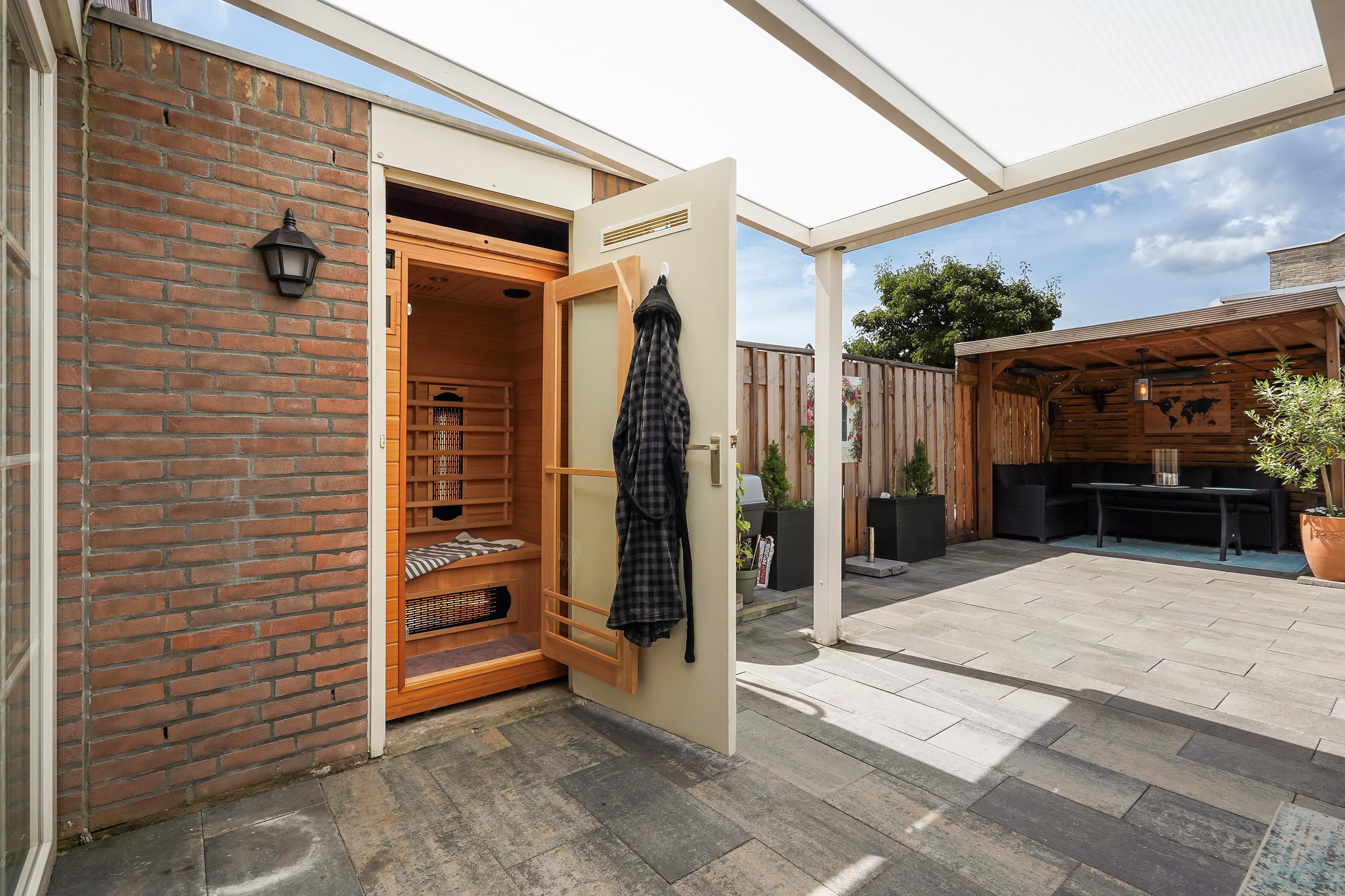 Begane grond Middels voortuin (v.v. kleine opbergkast) toegang tot de woning, ruime hal v.v. modern toilet met fontein, meterkast en berging aan de voorzijde alwaar opstelplaats wasmachine-/droger en omvormer zonnepanelen. Vanuit de hal toegang tot de heerlijk en zeer goed verzorgde woonkamer met trapkast en open keuken. Vanuit de woonkamer toegang tot de zeer zonnige achtertuin met open serre (2013) , veranda (2021) en berging met sauna. De keuken is recent geplaats en v.v. inductie kookplaat, combi oven, gewone oven, koel-/vriescombinatie en vaatwasser.