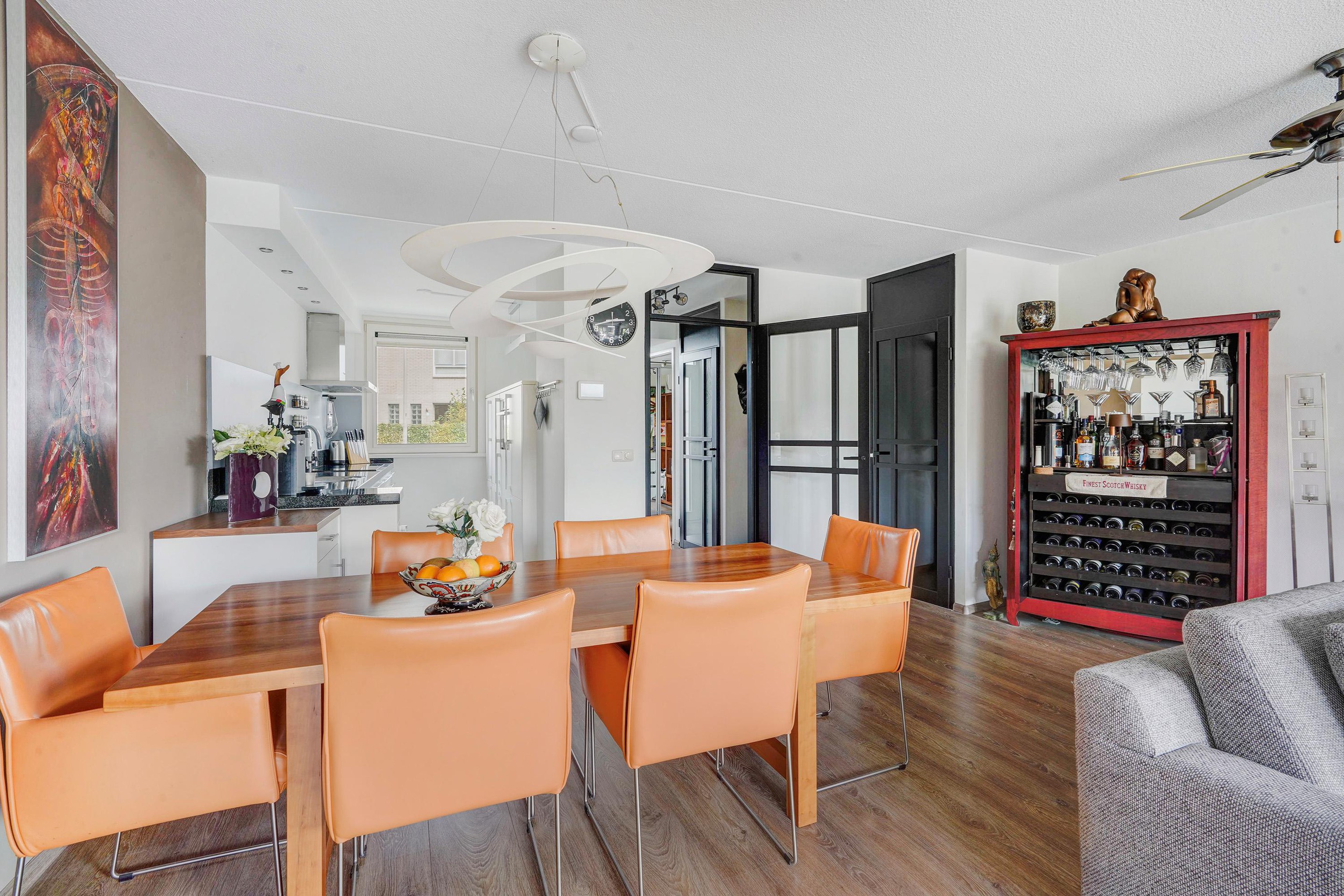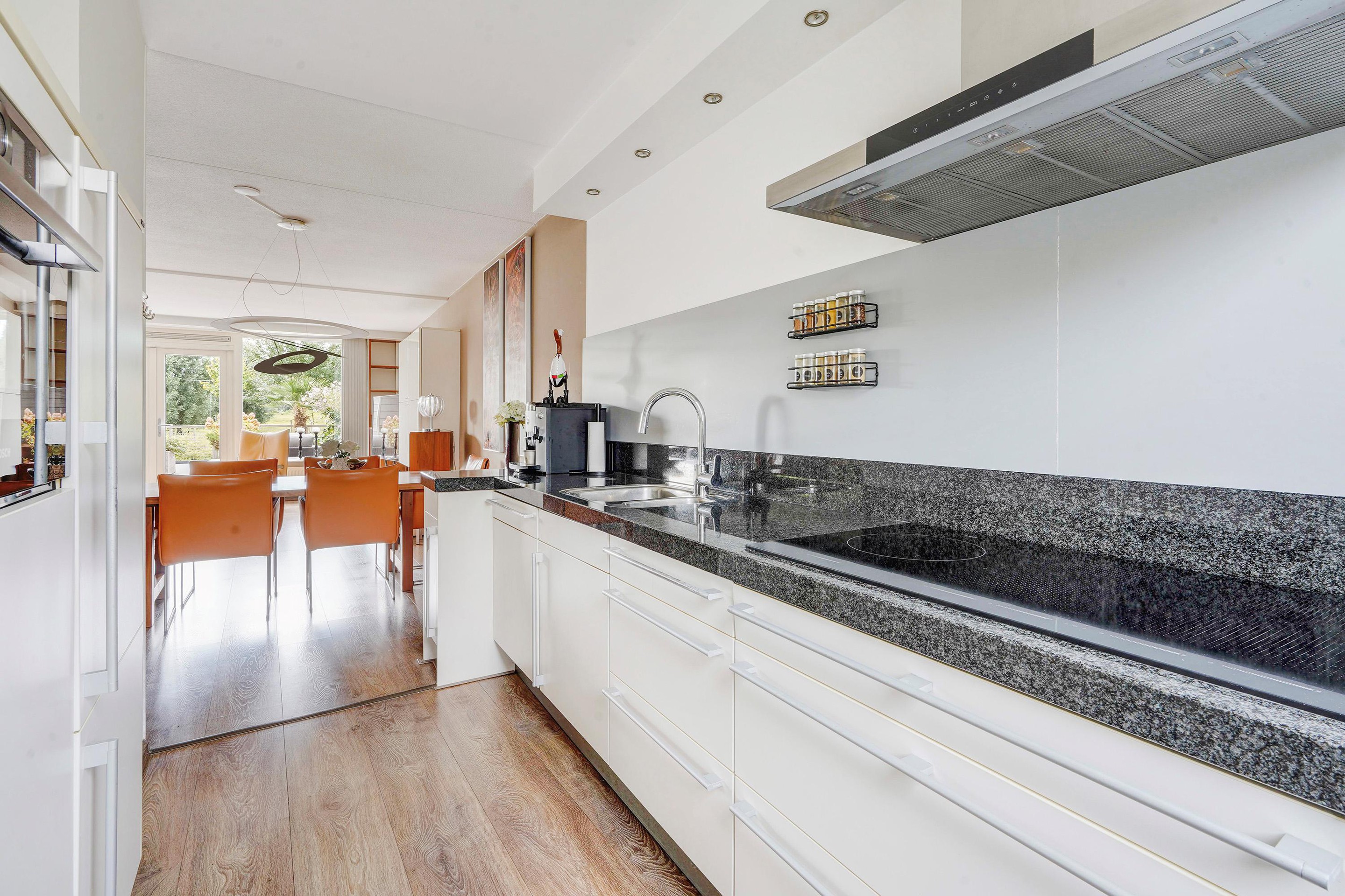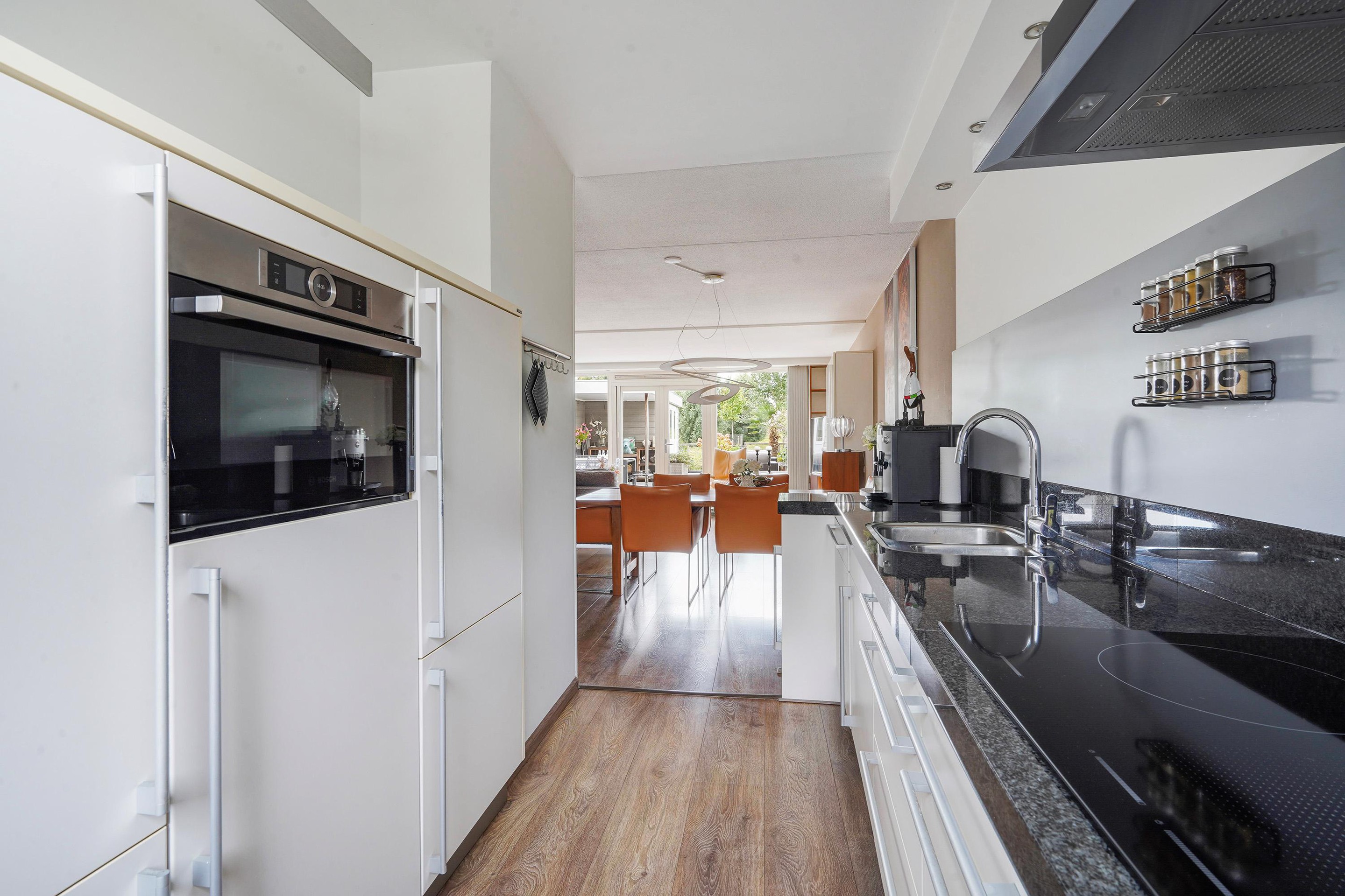 - De keuken is geweldig onderhouden en dateert van 2003, inbouwapparatuur is tussentijds vervangen (koelkast ’22, inductie kookplaat ’21, combimagnetron ’19, vaatwasser ’18)