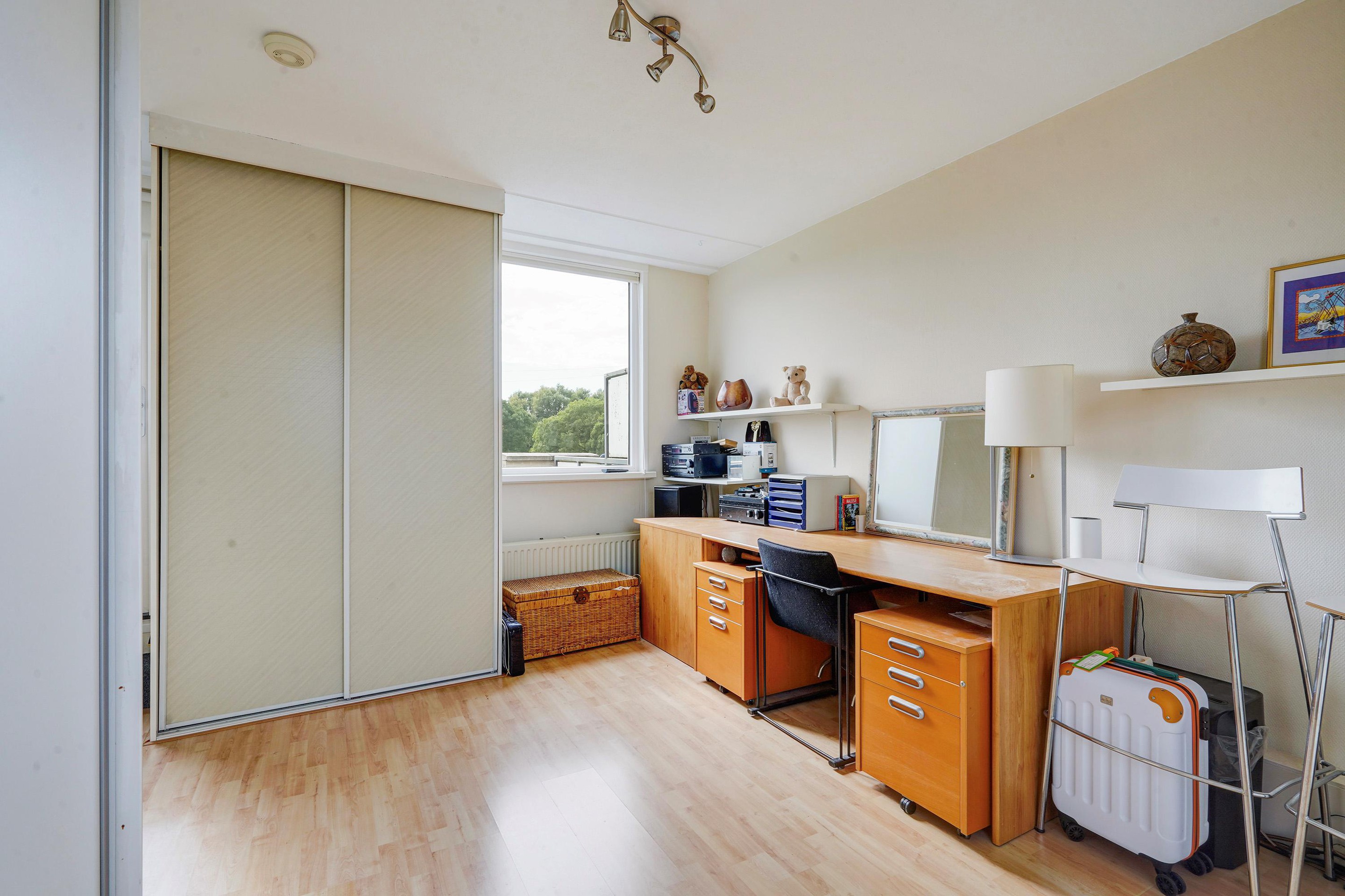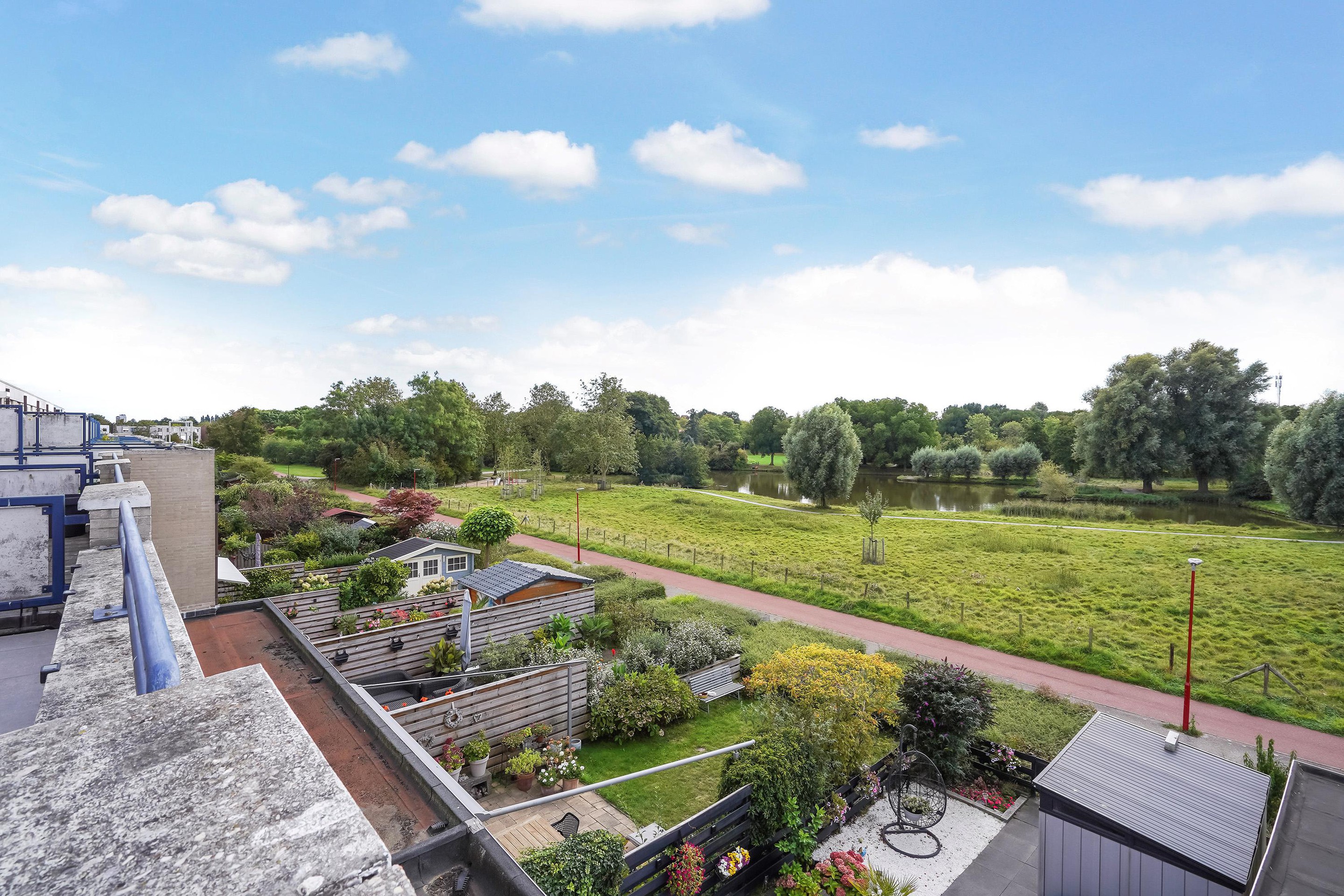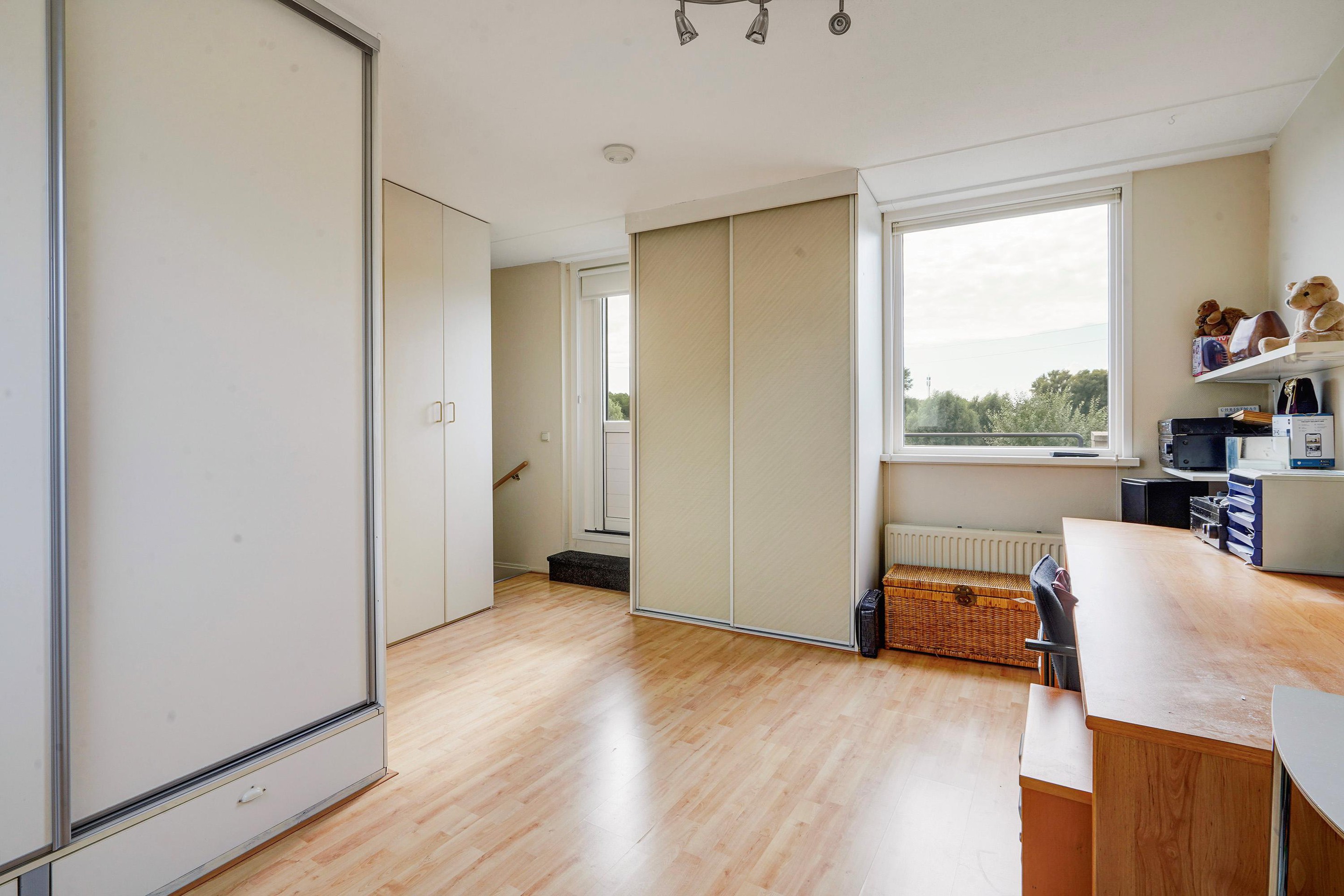 Zolderverdieping: ruime kamer met toegang tot het riante en zeer zonnige dakterras waar u geniet van een geweldig groen uitzicht. De technische ruimte is v.v. wasmachine aansluiting, opstelplaats cv-combi ketel en mechanische ventilatie unit.