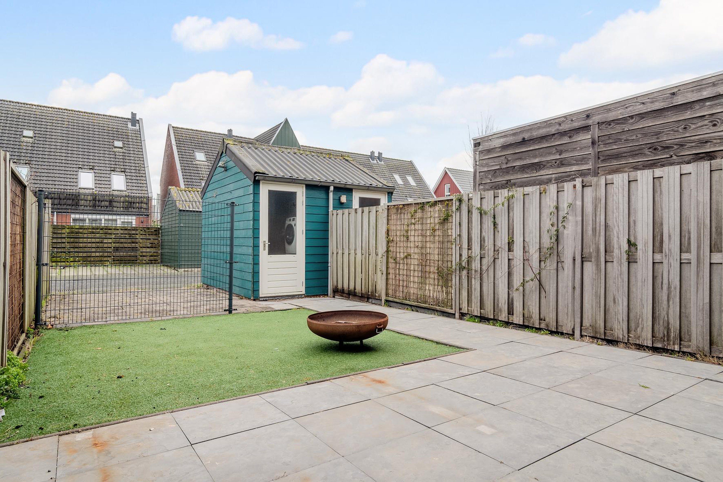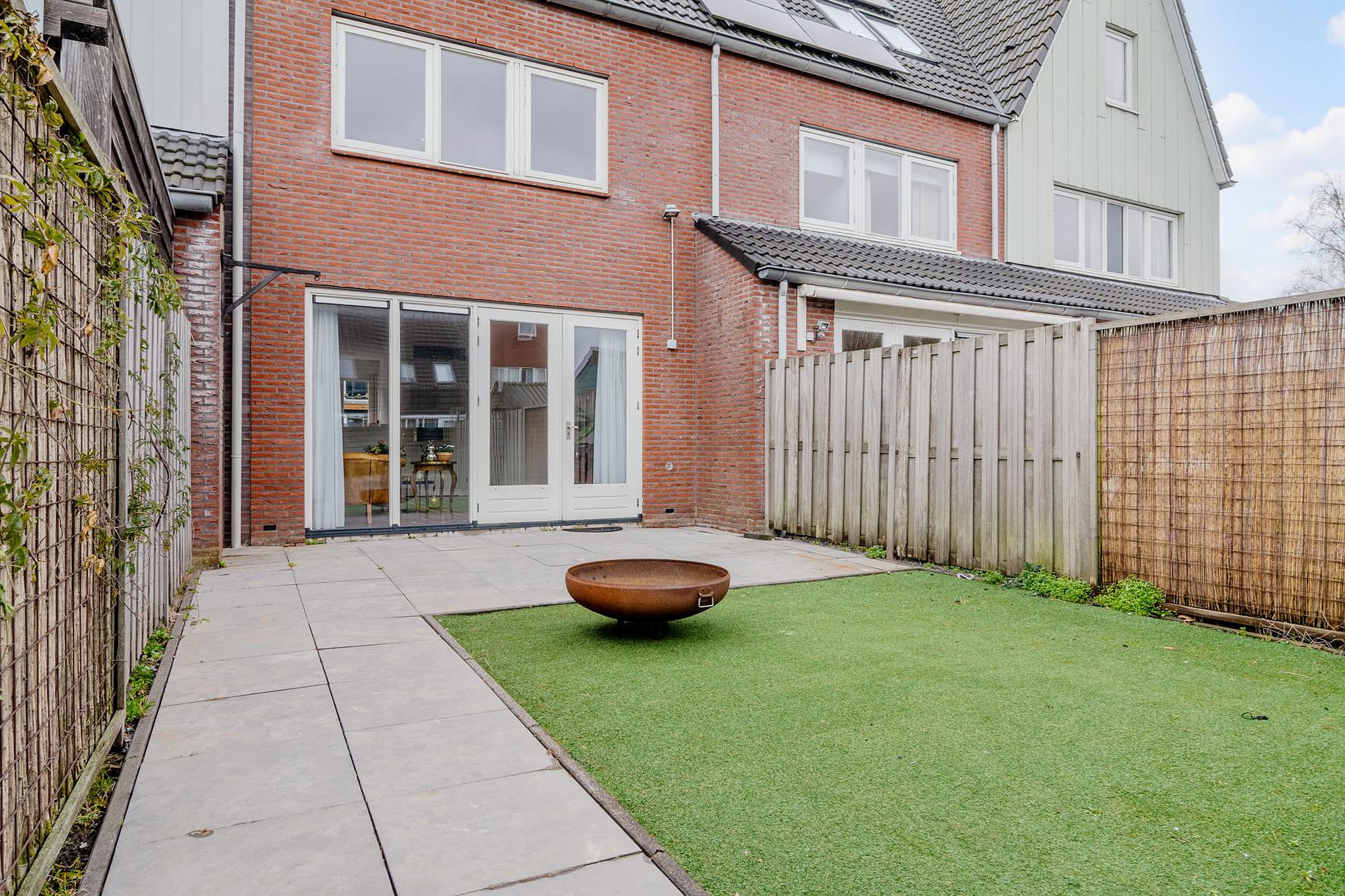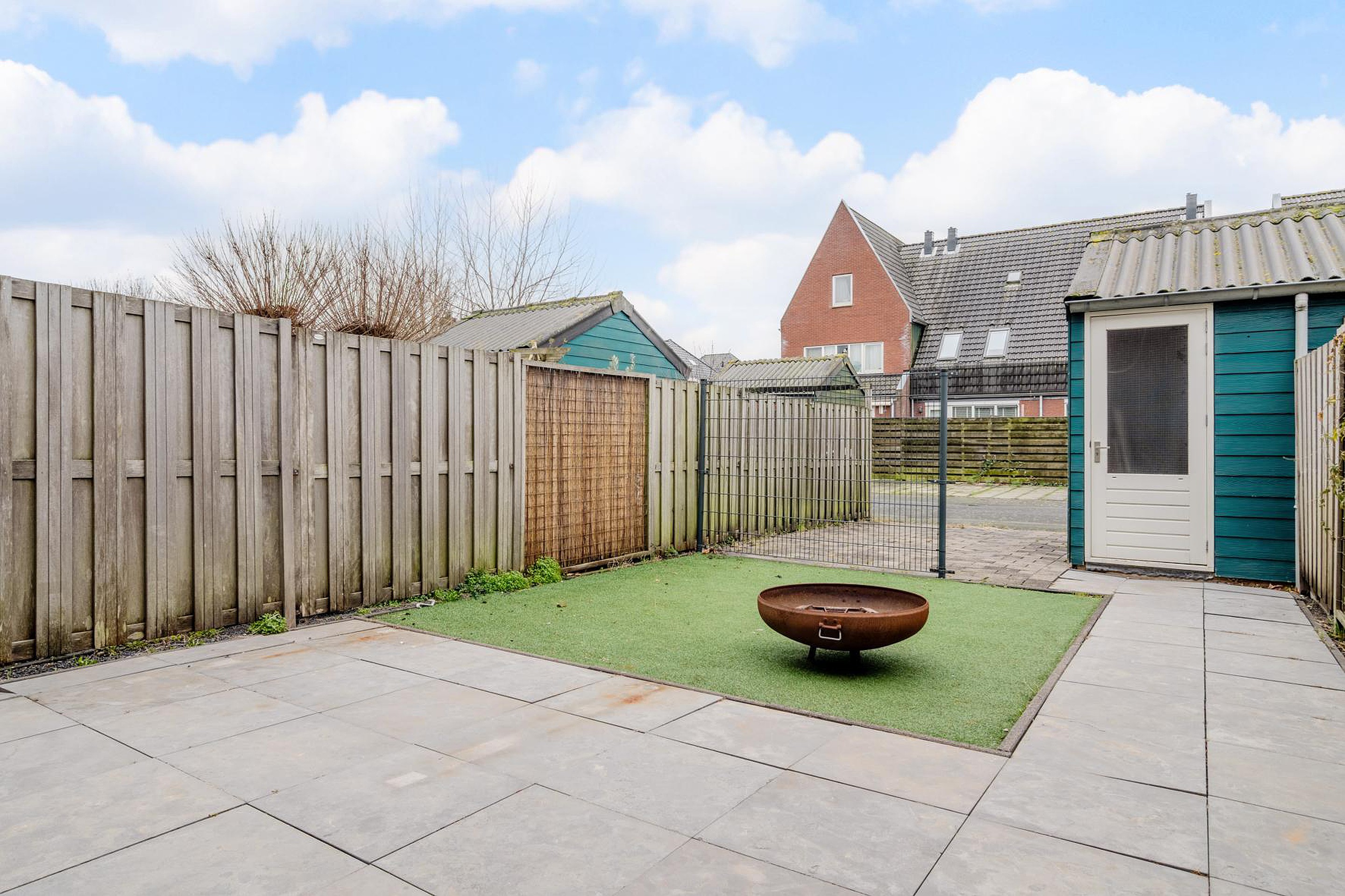 De achtertuin is een fijne plek om te ontspannen en biedt voldoende ruimte voor een zitje of speelplek. Achterin de tuin bevindt zich parkeergelegenheid op eigen terrein, wat zorgt voor extra comfort en gemak in het dagelijks gebruik.
