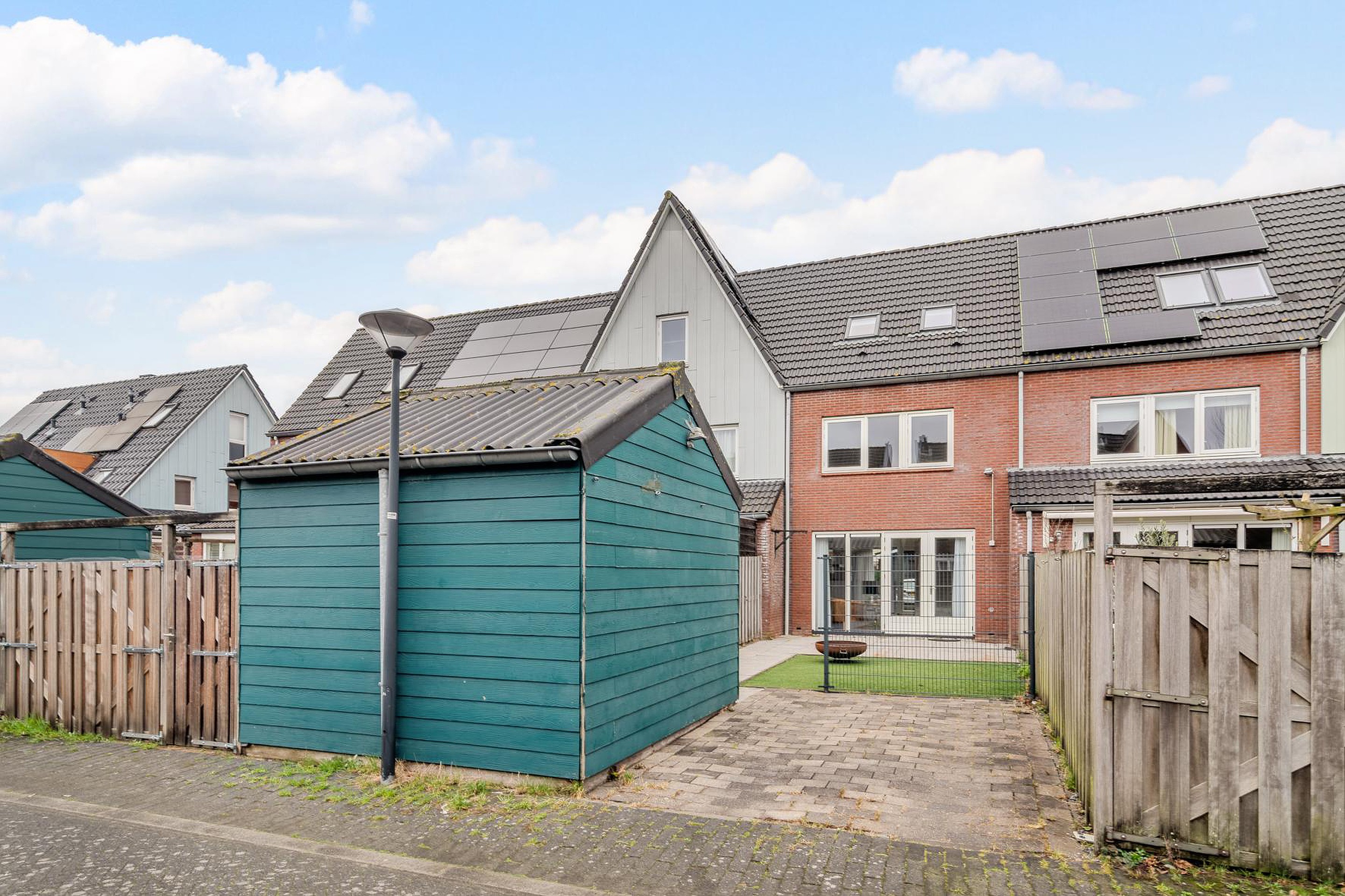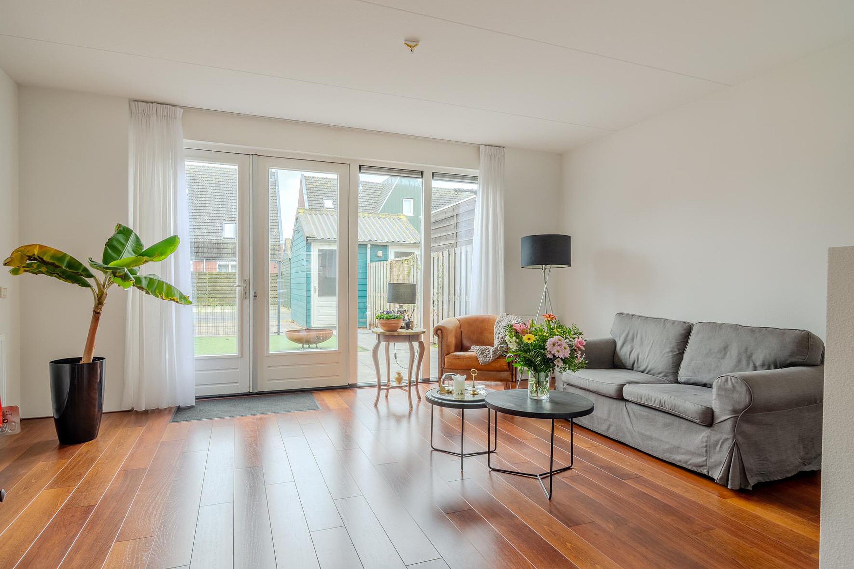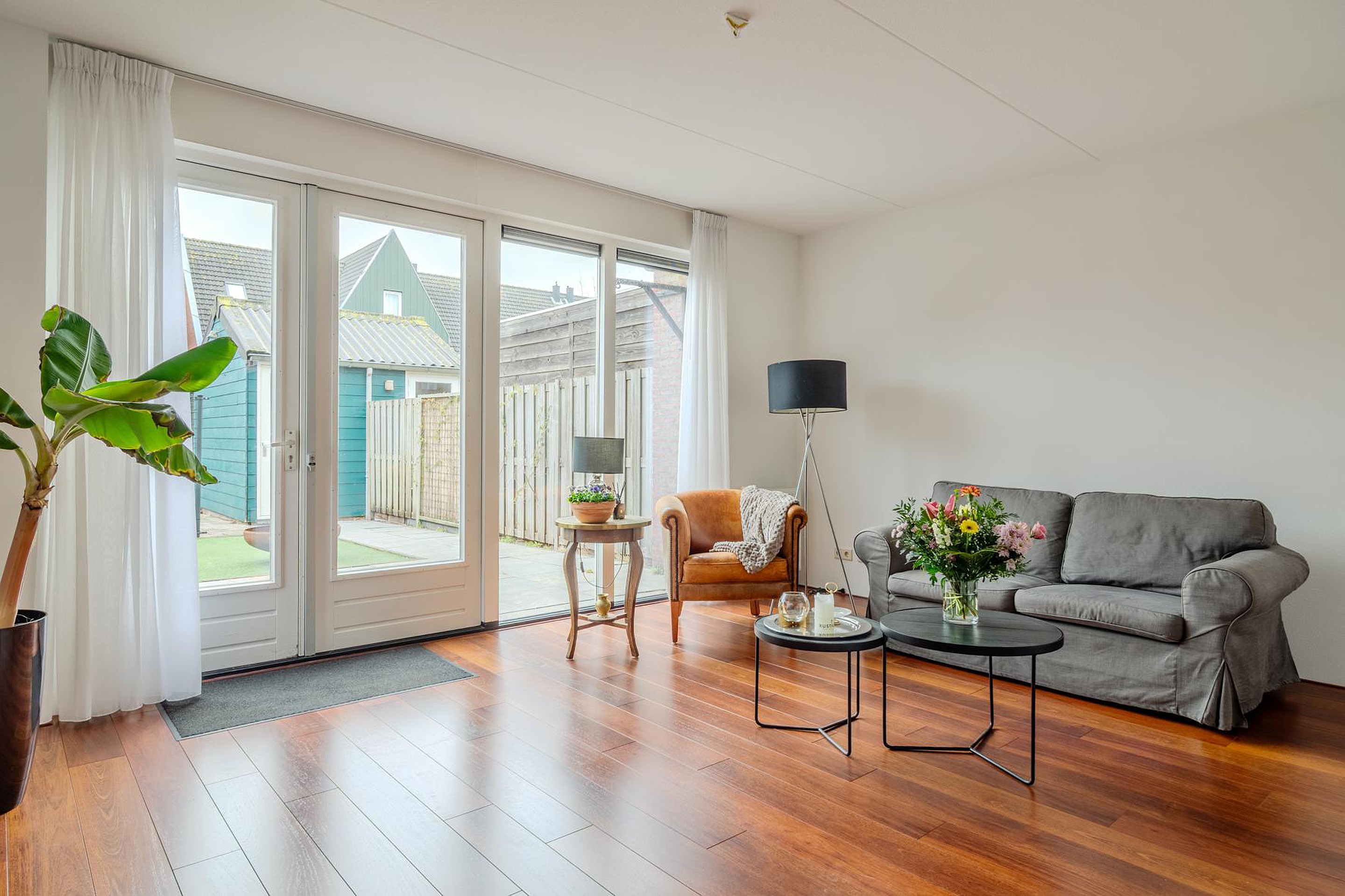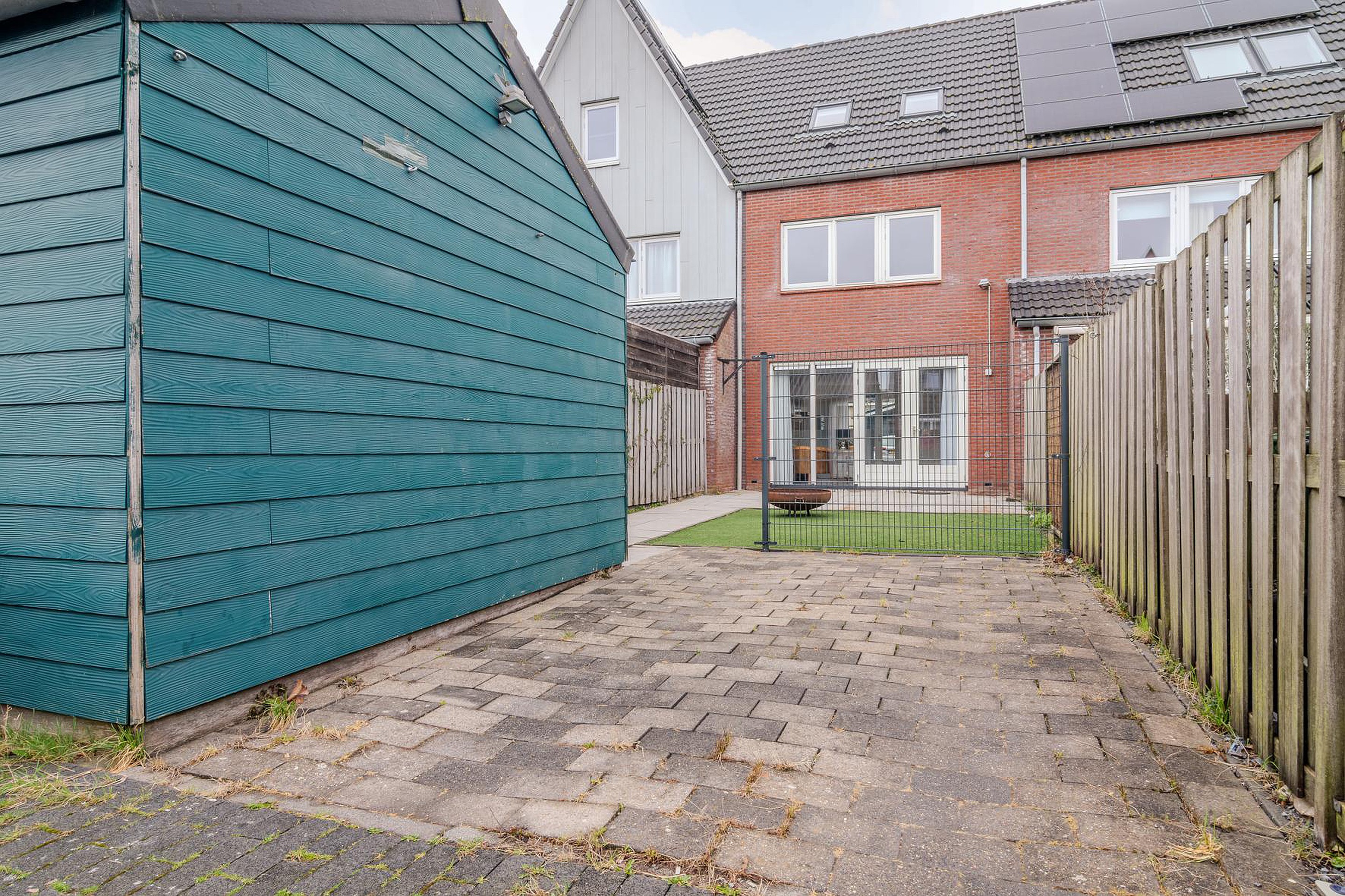 De achtertuin is een fijne plek om te ontspannen en biedt voldoende ruimte voor een zitje of speelplek. Achterin de tuin bevindt zich parkeergelegenheid op eigen terrein, wat zorgt voor extra comfort en gemak in het dagelijks gebruik.