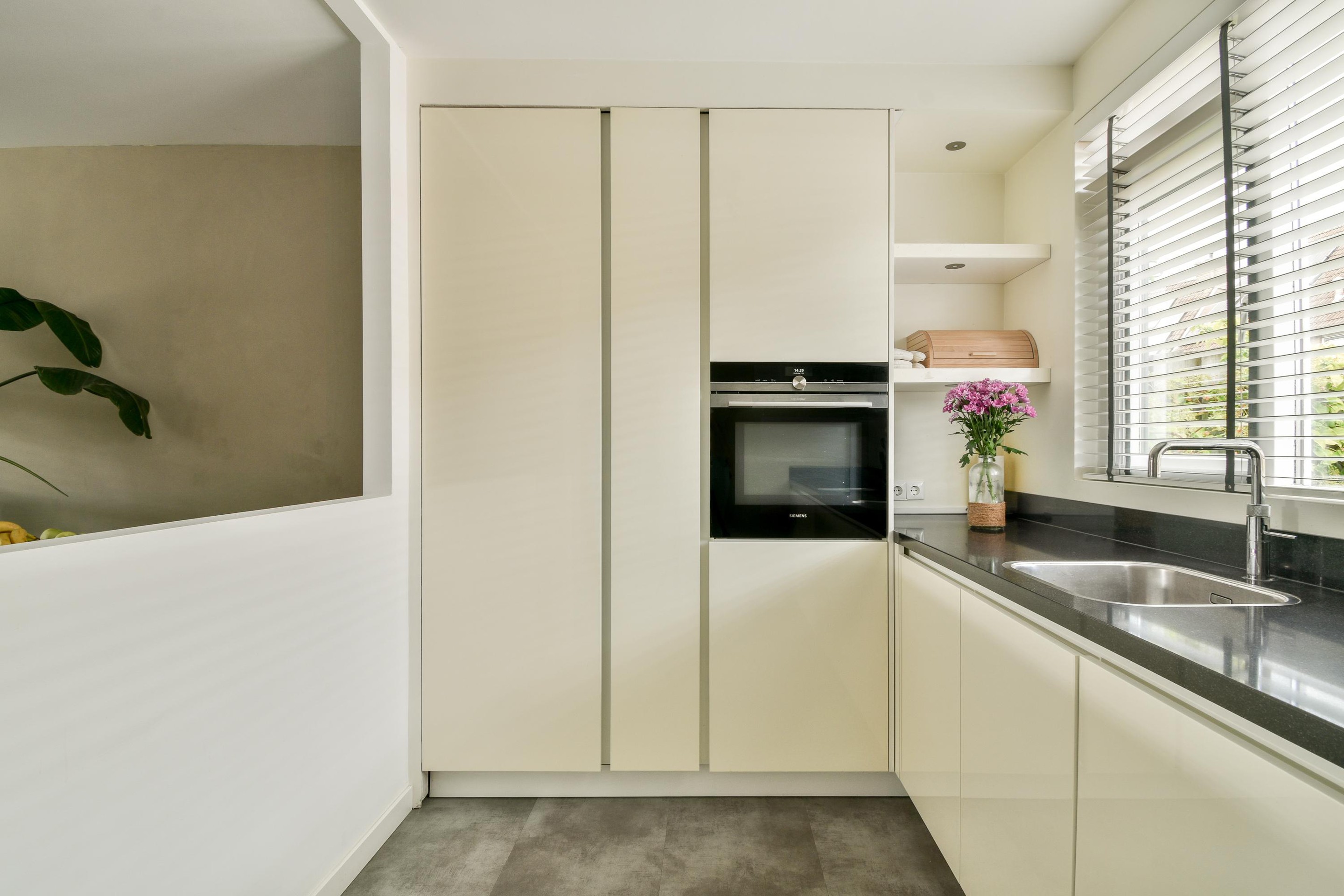 Moderne open keuken welke is voorzien van de volgende inbouwapparatuur: