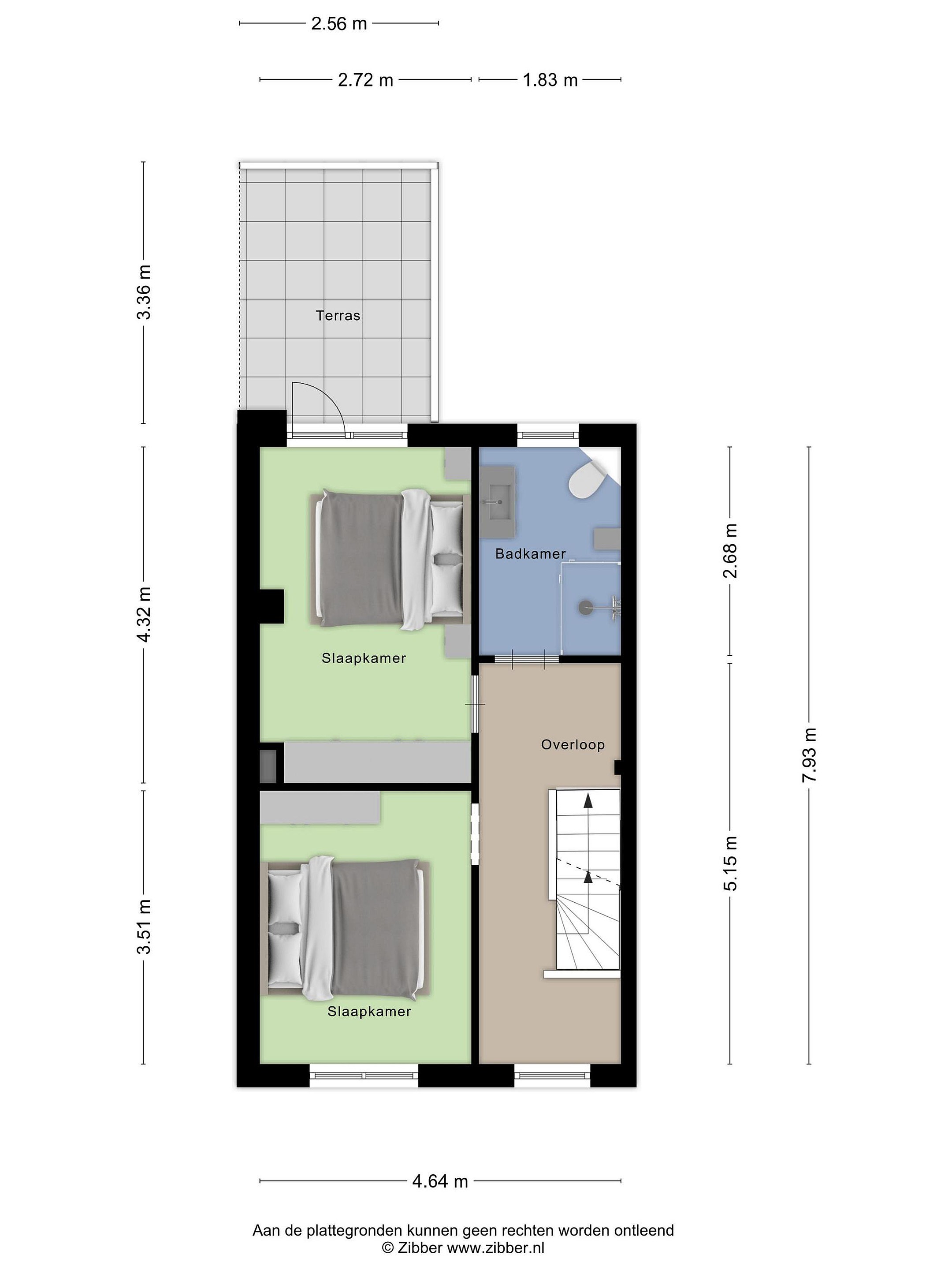 Met toegang tot de vertrekken en vaste trap naar de tweede verdieping. De overloop biedt eventueel voldoende ruimte om een studeerplek of werkhoek in te richten.