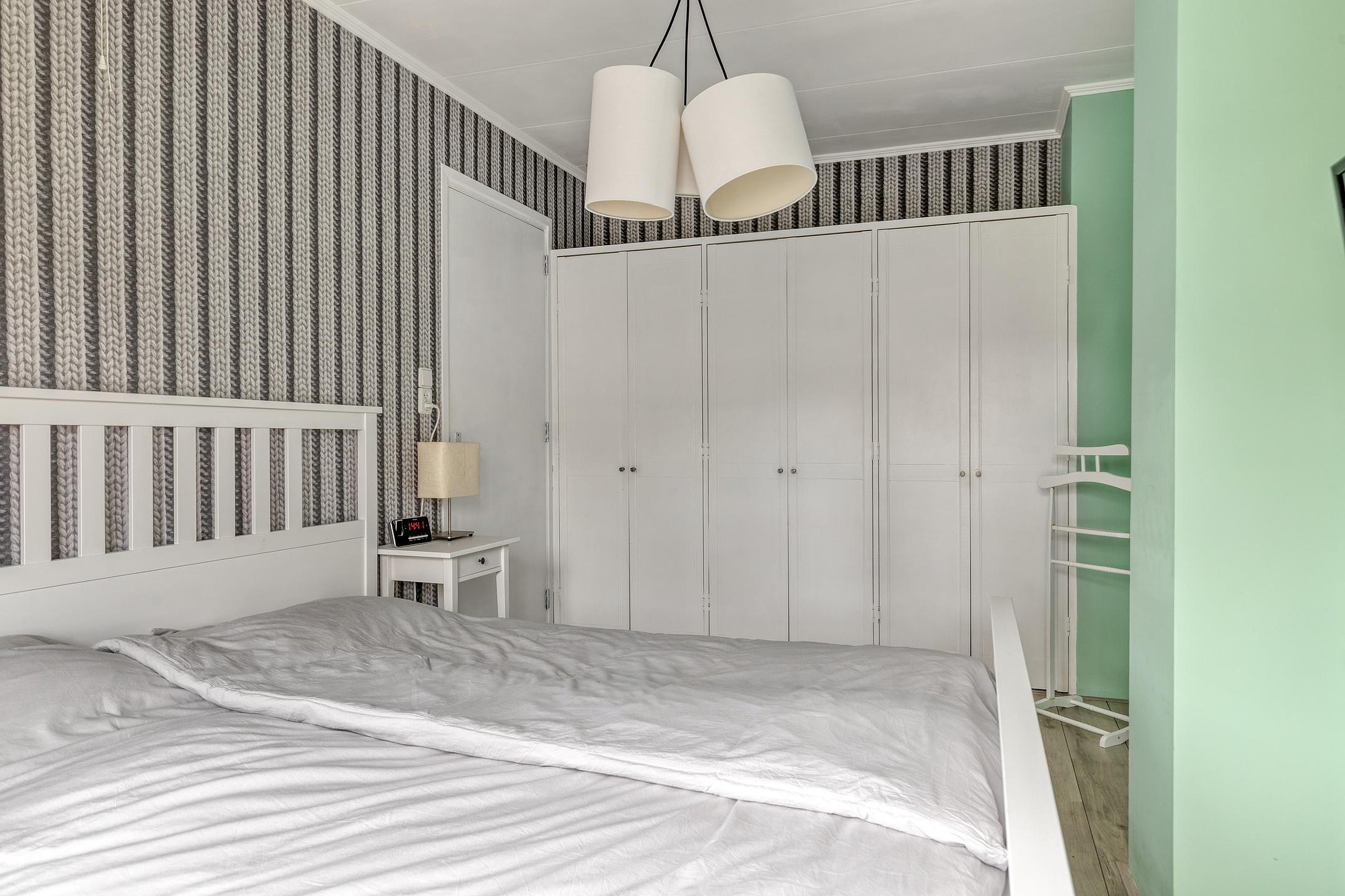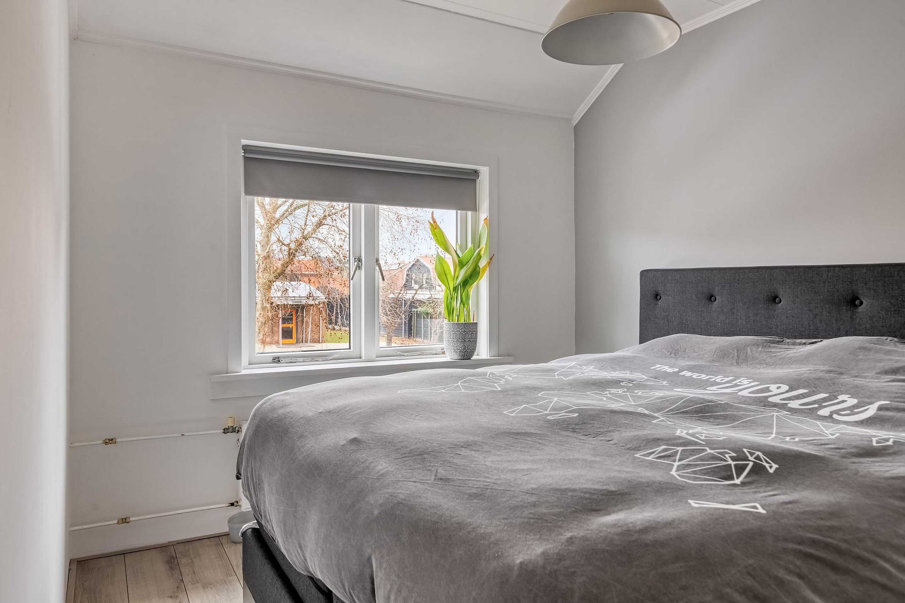 Ruime slaapkamer aan de achterzijde van de woning met laminaatvloer afwerking en openslaande deuren naar een eventueel te realiseren dakterras.