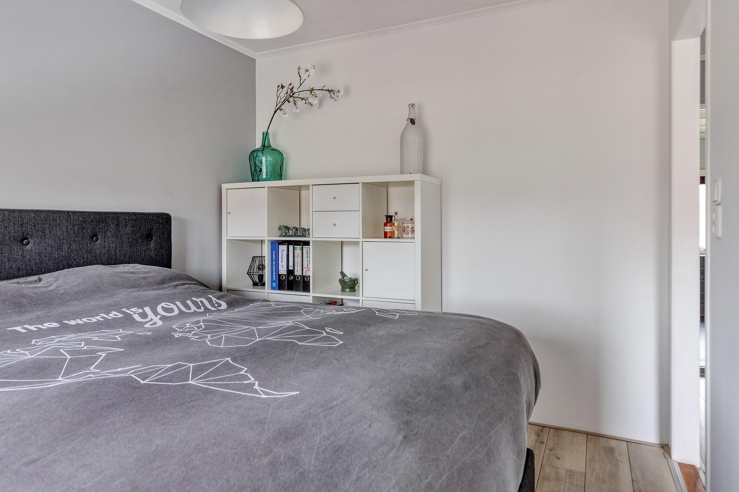 Ruime slaapkamer aan de voorzijde met laminaatvloer.