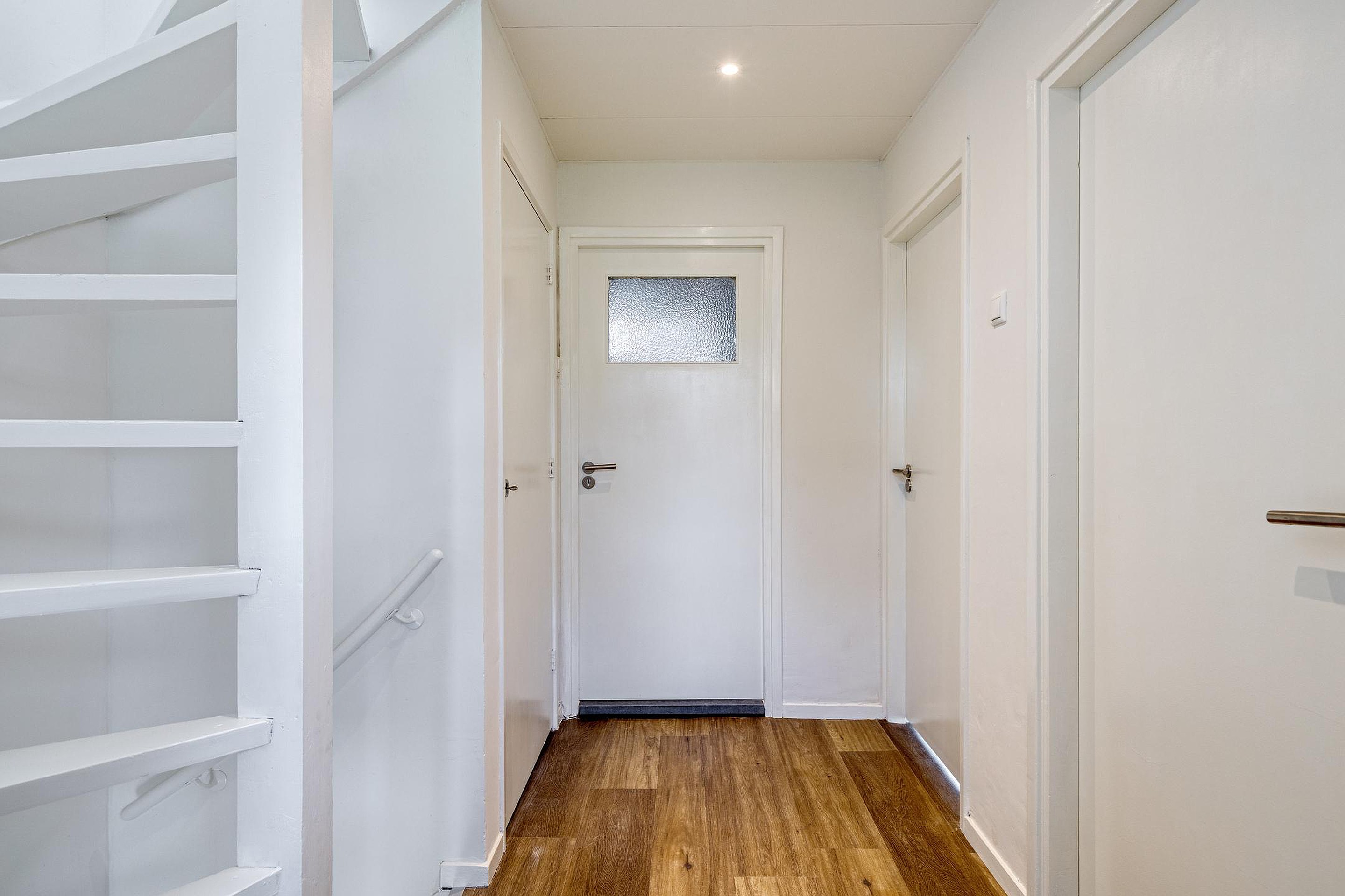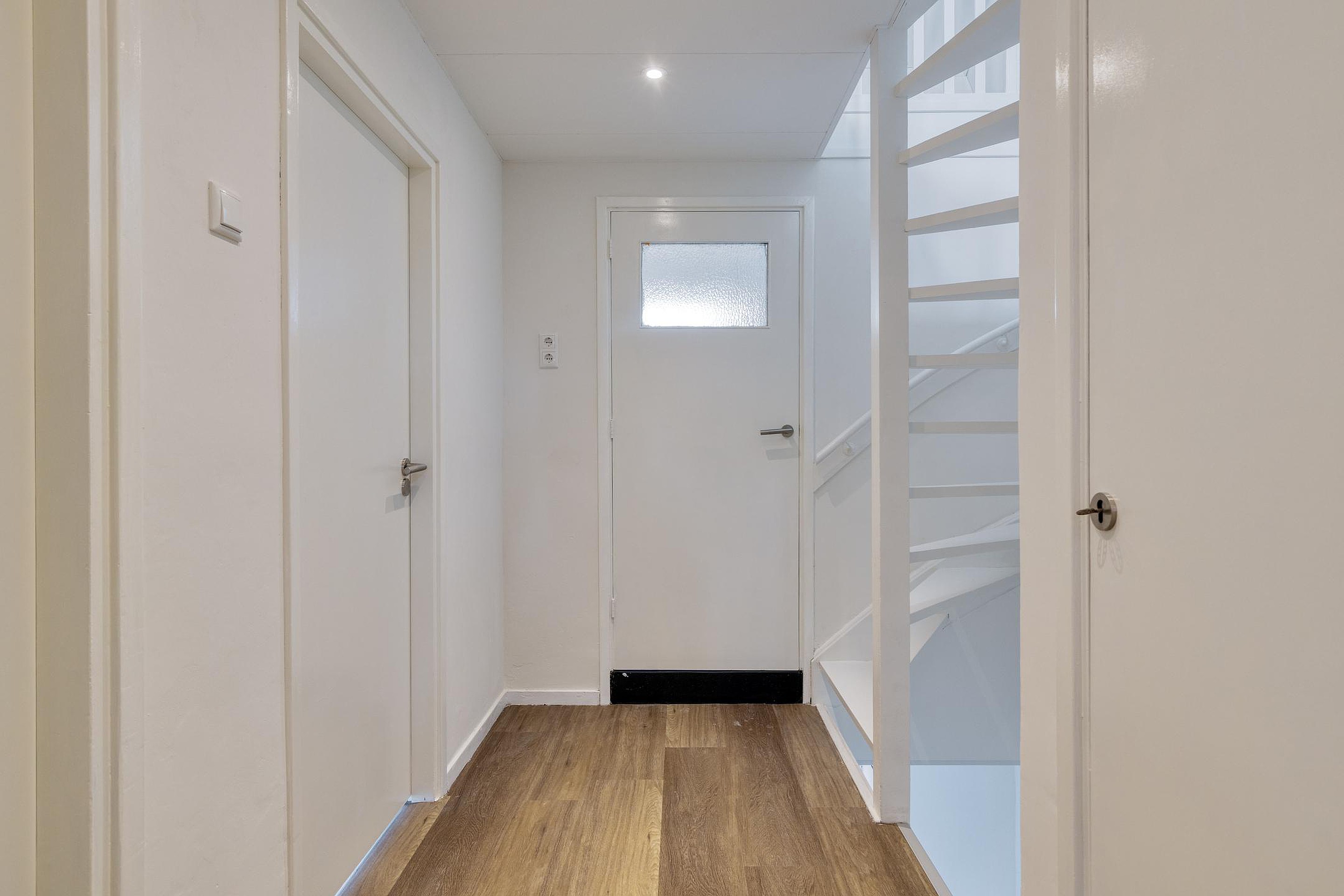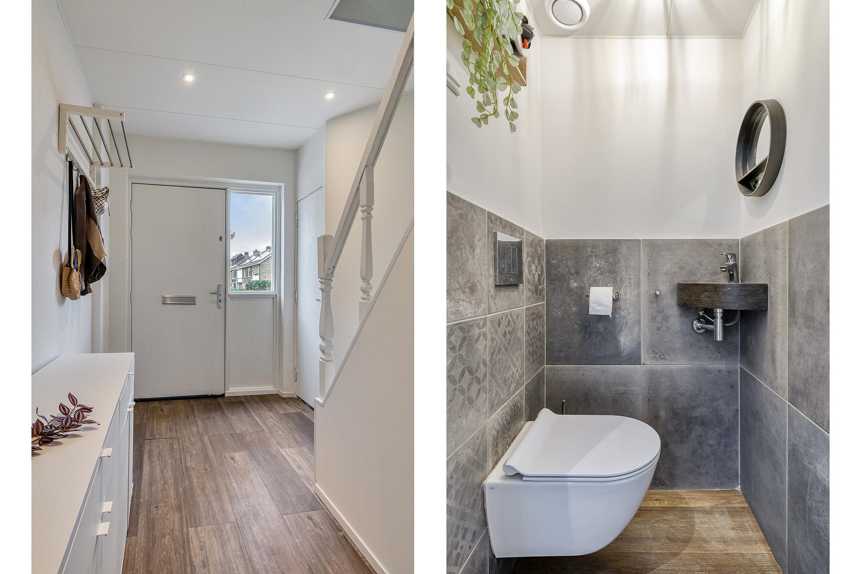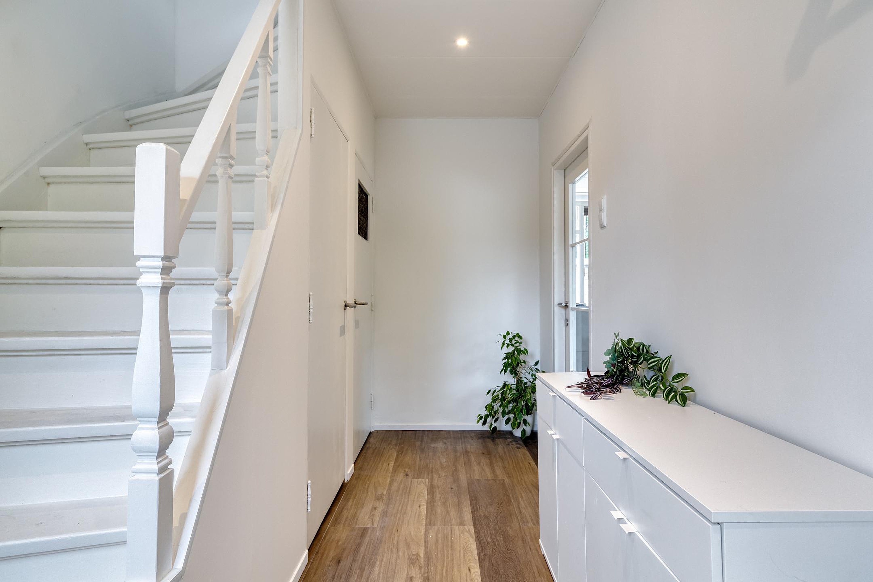 Hal met meterkast, toilet, toegang tot trapkast en trap naar de verdieping.