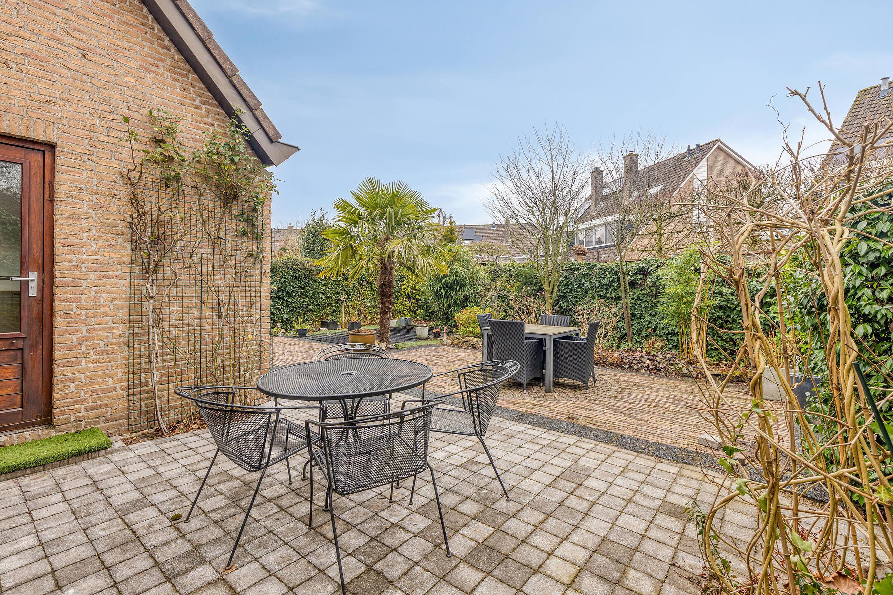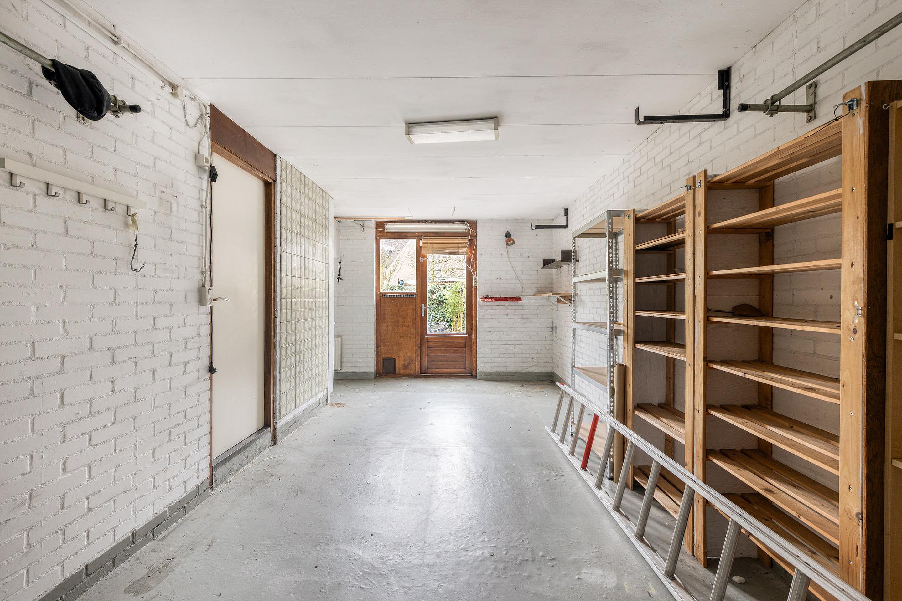 De garage is ook inpandig te bereiken en hier bevind zich de aansluiting van de wasapparatuur. Vanuit de garage is de achtertuin te bereiken.