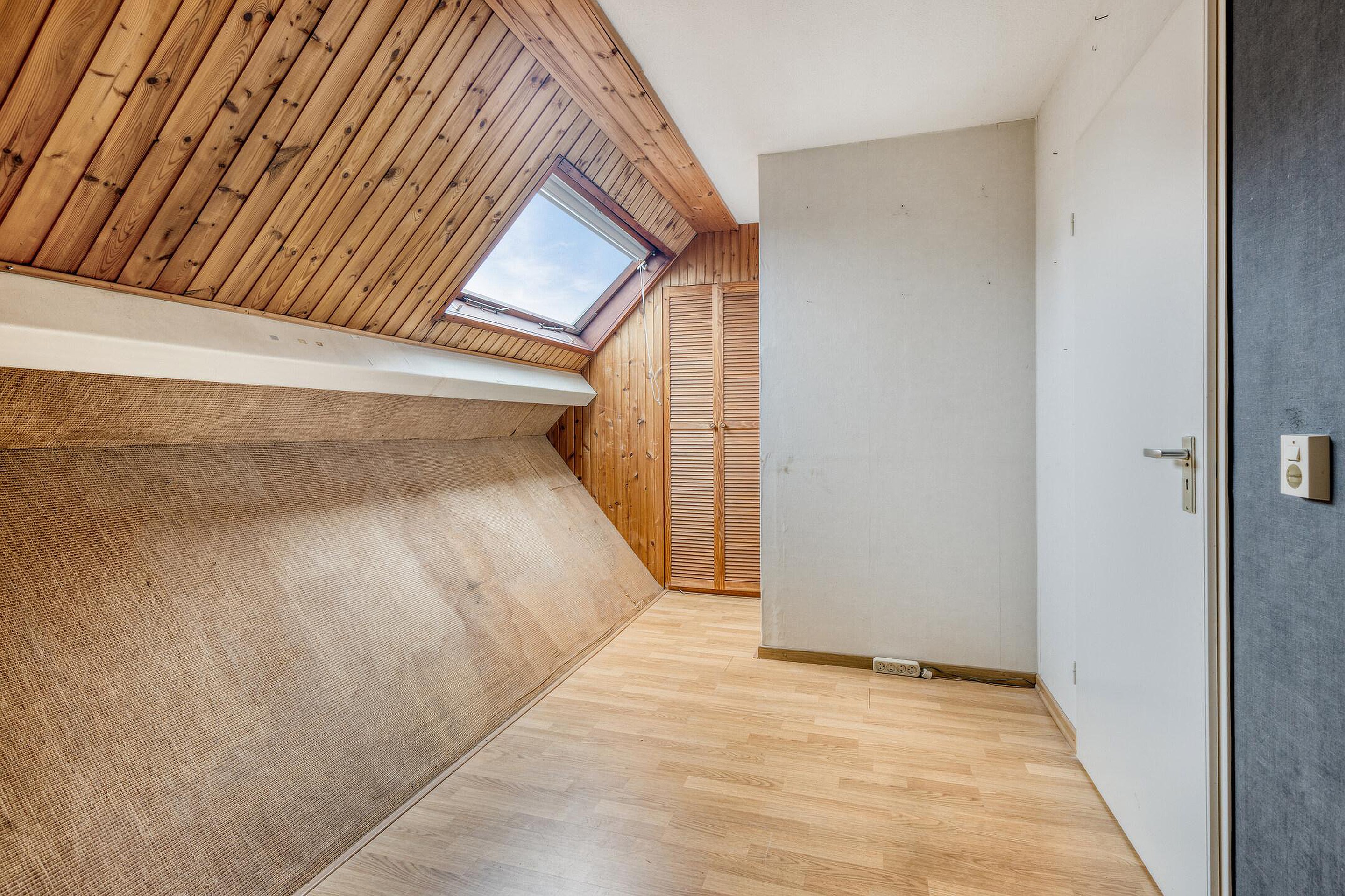Slaapkamer aan de achterzijde van de woning die is voorzien van een vaste kast.