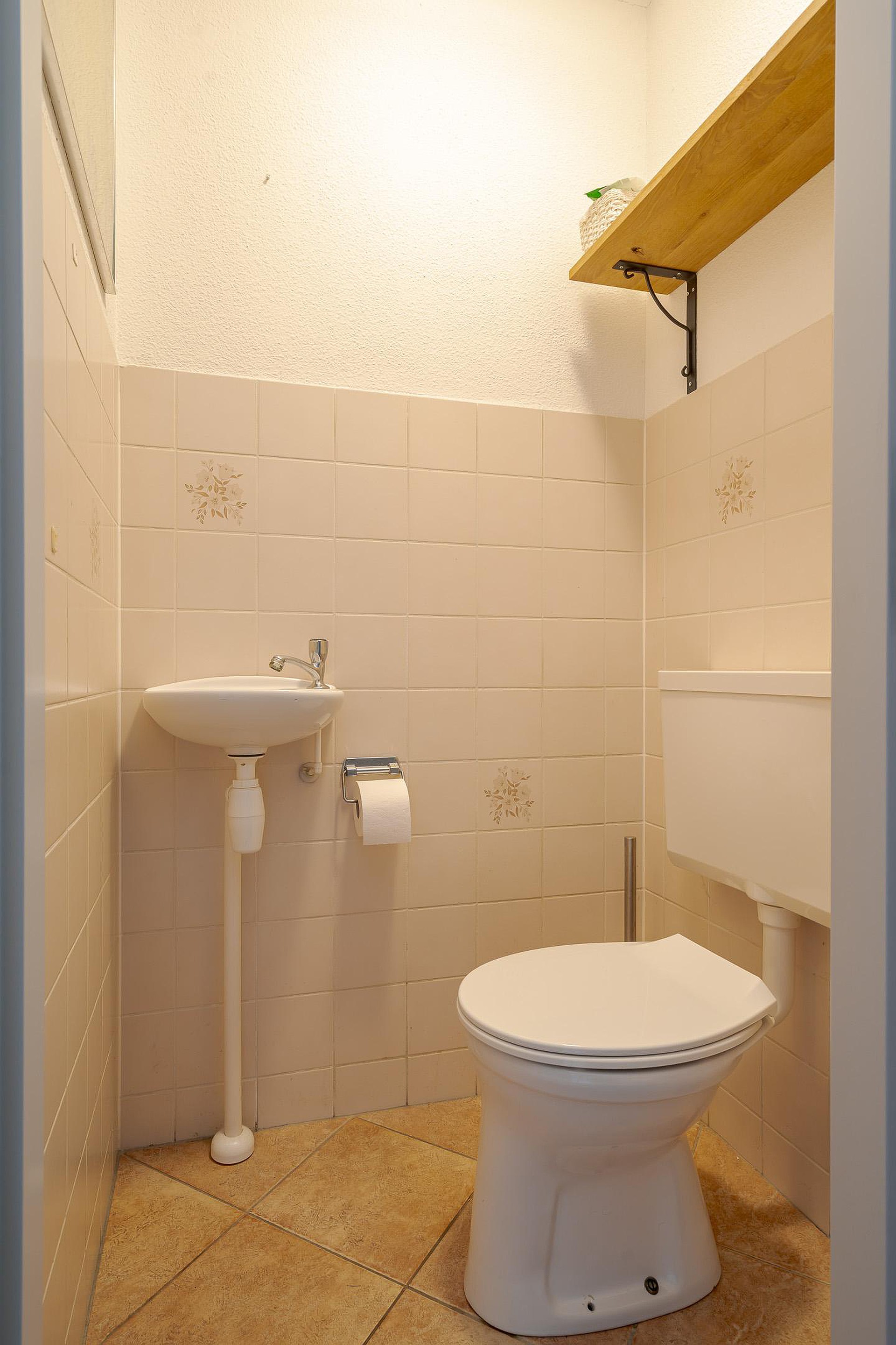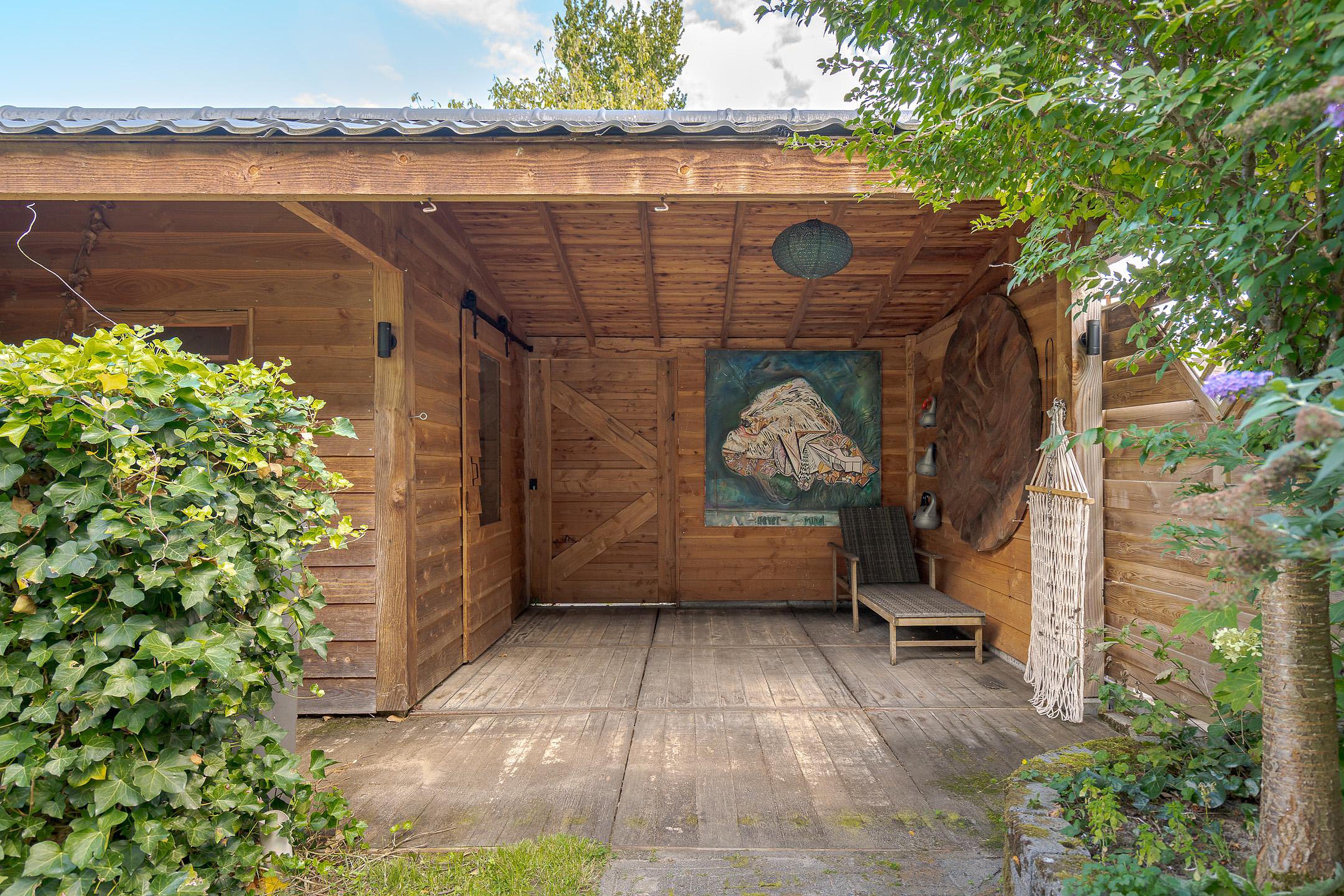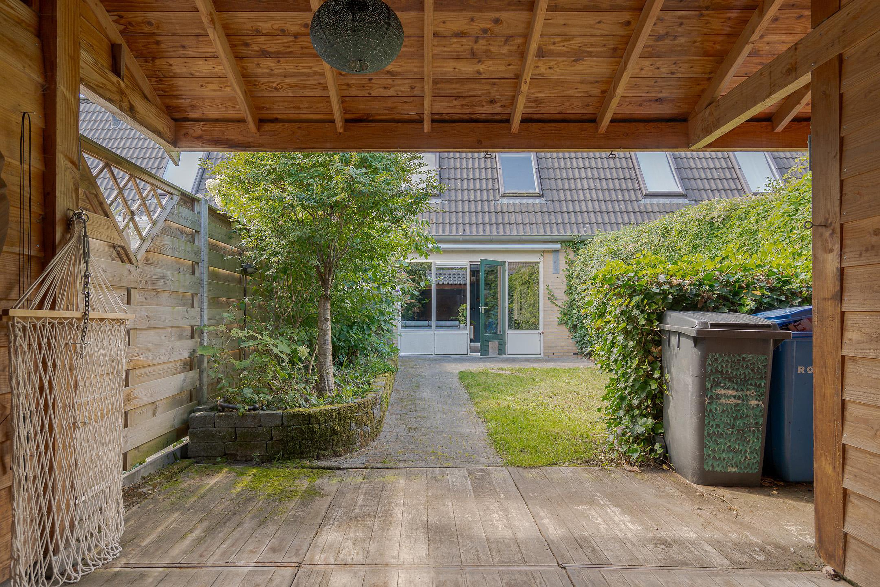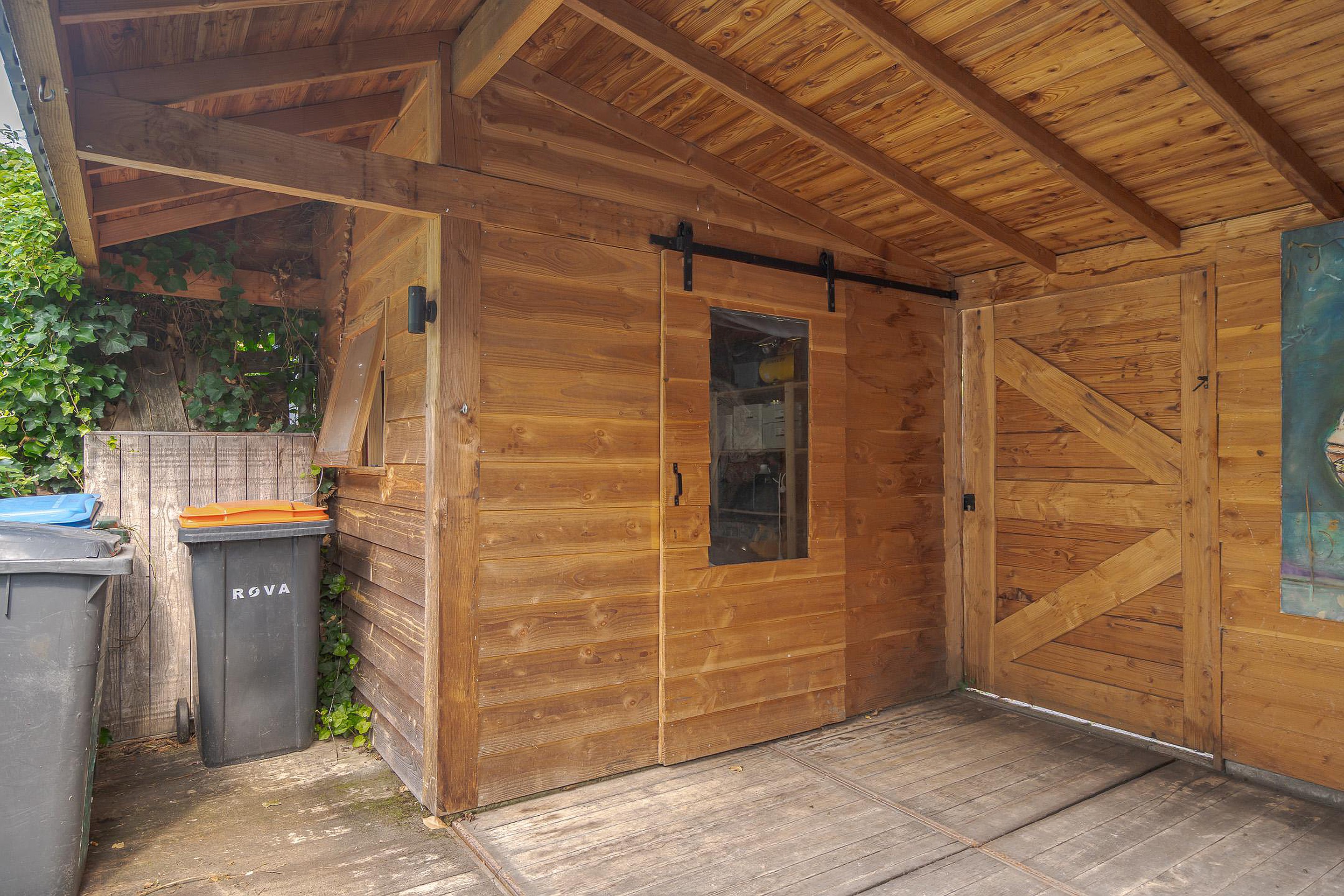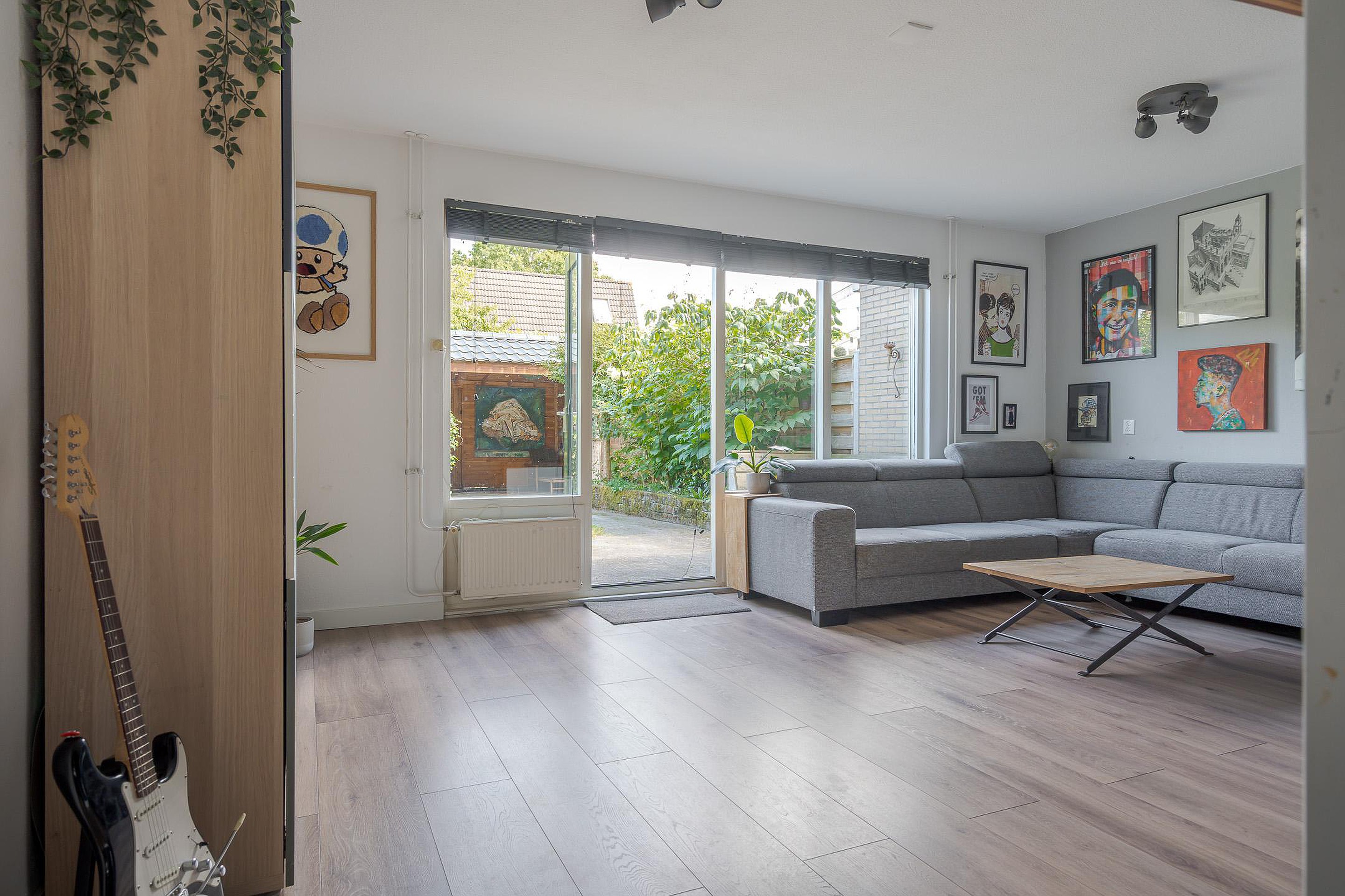 Na binnenkomst kom je (na het passeren van het toilet en de trapopgang) in de ruime, tuin-gerichte woonkamer. Vanuit de kamer heb je via een deur rechtstreeks toegang tot de besloten tuin. Deze is op het Oosten gericht. Dat betekent dat je bijvoorbeeld al vroeg van een ontbijtje in de zon kunt genieten. De tuin is besloten en de woning beschikt over een houten berging en overkapping/veranda.