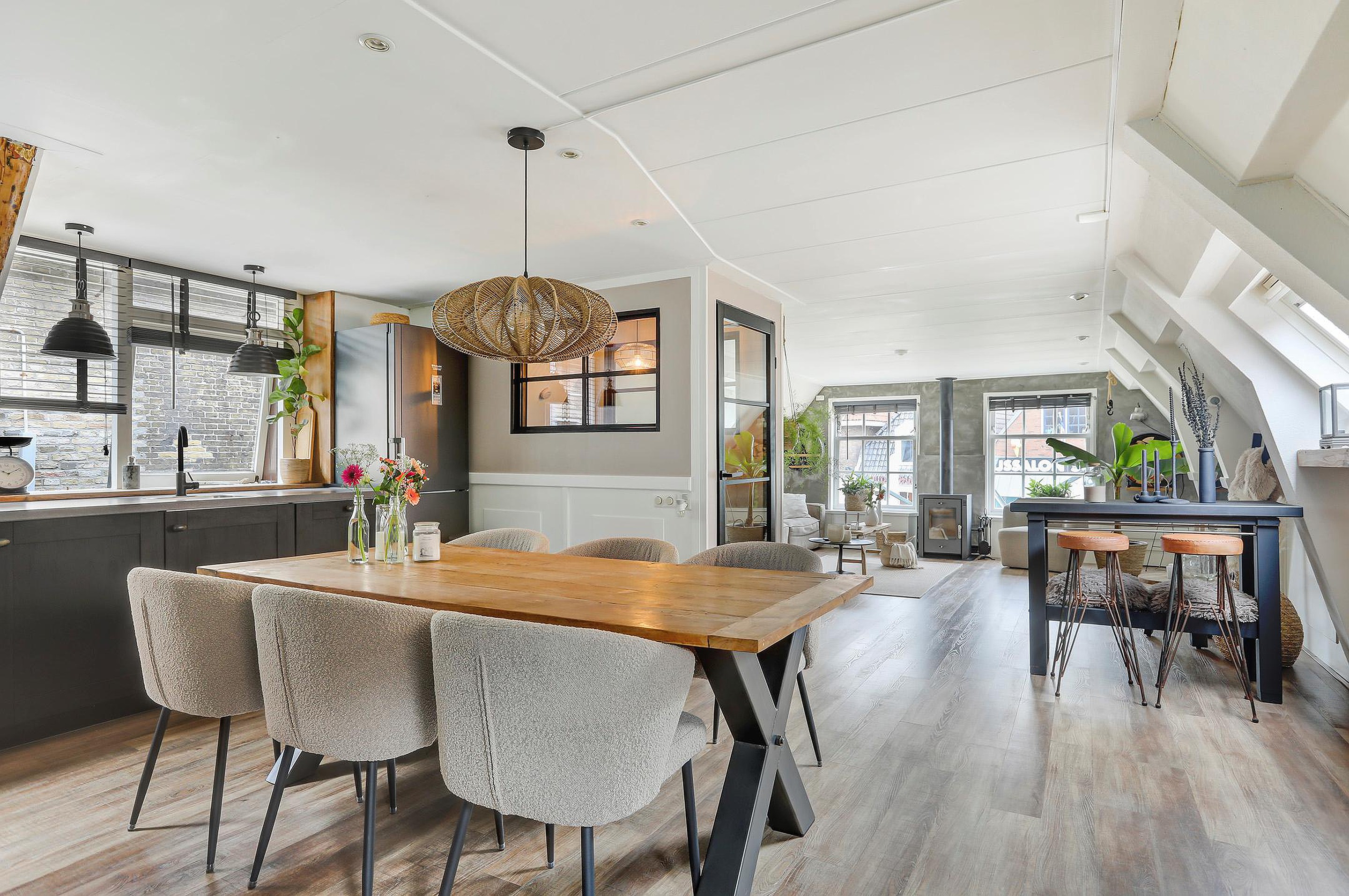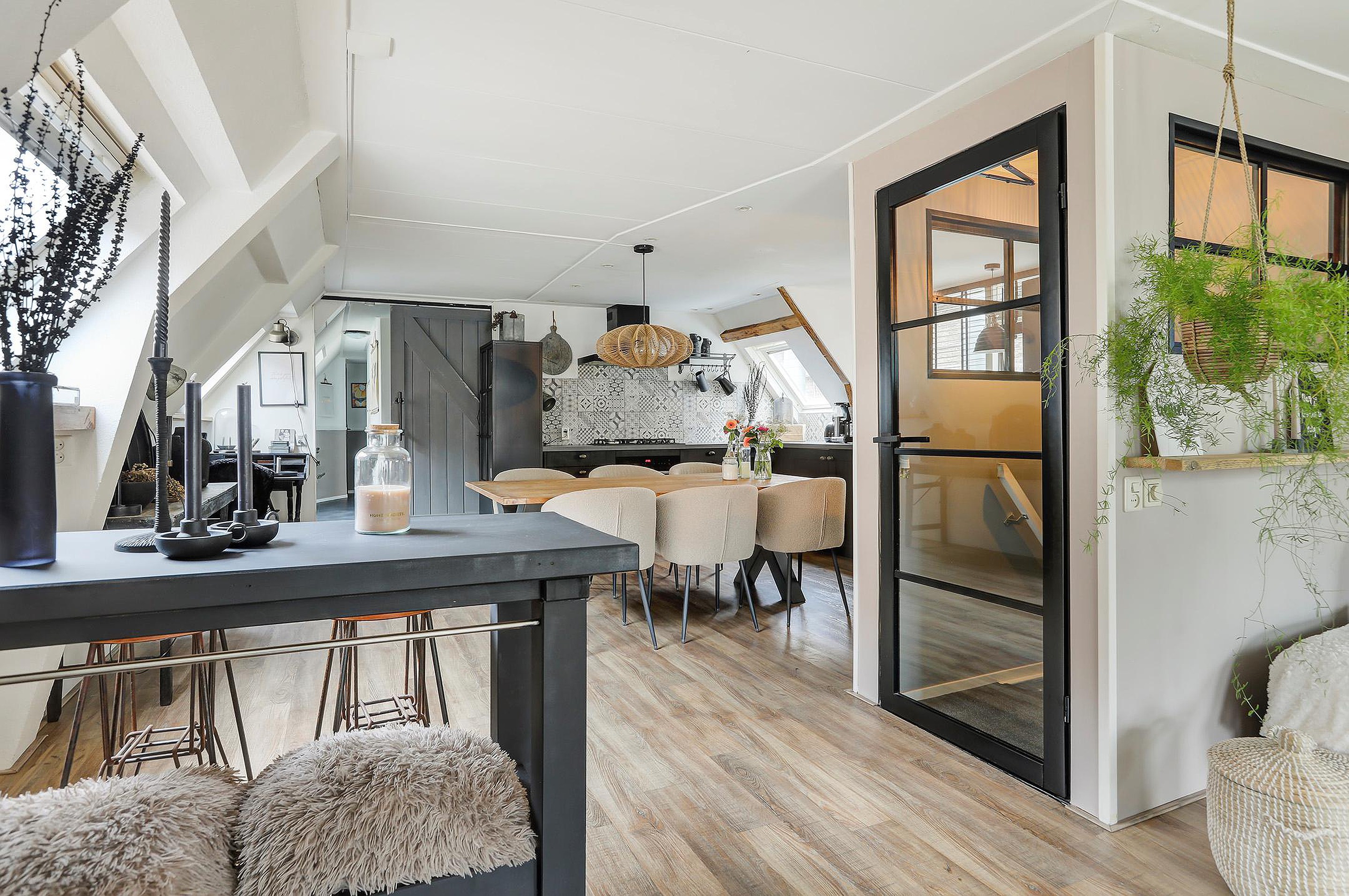 Boven de horecagelegenheid bevindt zich een verrassend ruime woning/ appartement met eigen ingang, die smaakvol is ingericht en van alle gemakken is voorzien. De woonkamer met moderne open keuken biedt een prachtig uitzicht over het Dok en vormt een oase van rust boven de levendige benedenverdieping. De verdieping beschikt daarnaast over drie slaapkamers, een badkamer, een separaat toilet en een royaal dakterras met overkapping.