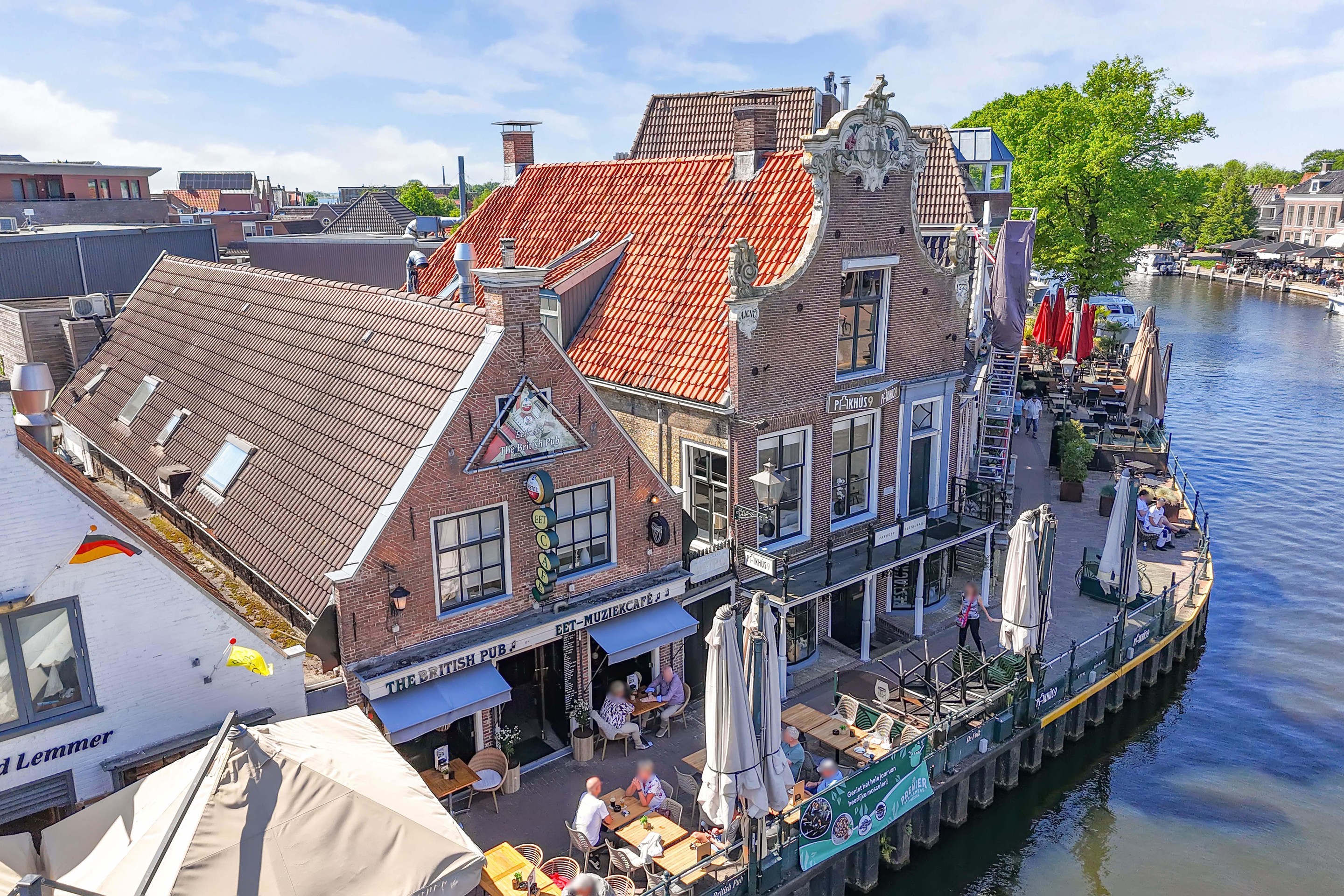 Momenteel is de begane grond in gebruik als een sfeervolle British pub, compleet met twee volwaardige barren, een nieuwe keuken en sanitaire voorzieningen aan zowel de voor- als achterzijde. De pub ademt sfeer, karakter en gezelligheid, een plek waar zowel locals als toeristen graag samenkomen. Dankzij het terras aan het water genieten gasten hier van het levendige uitzicht op passerende boten en het centrum van Lemmer.