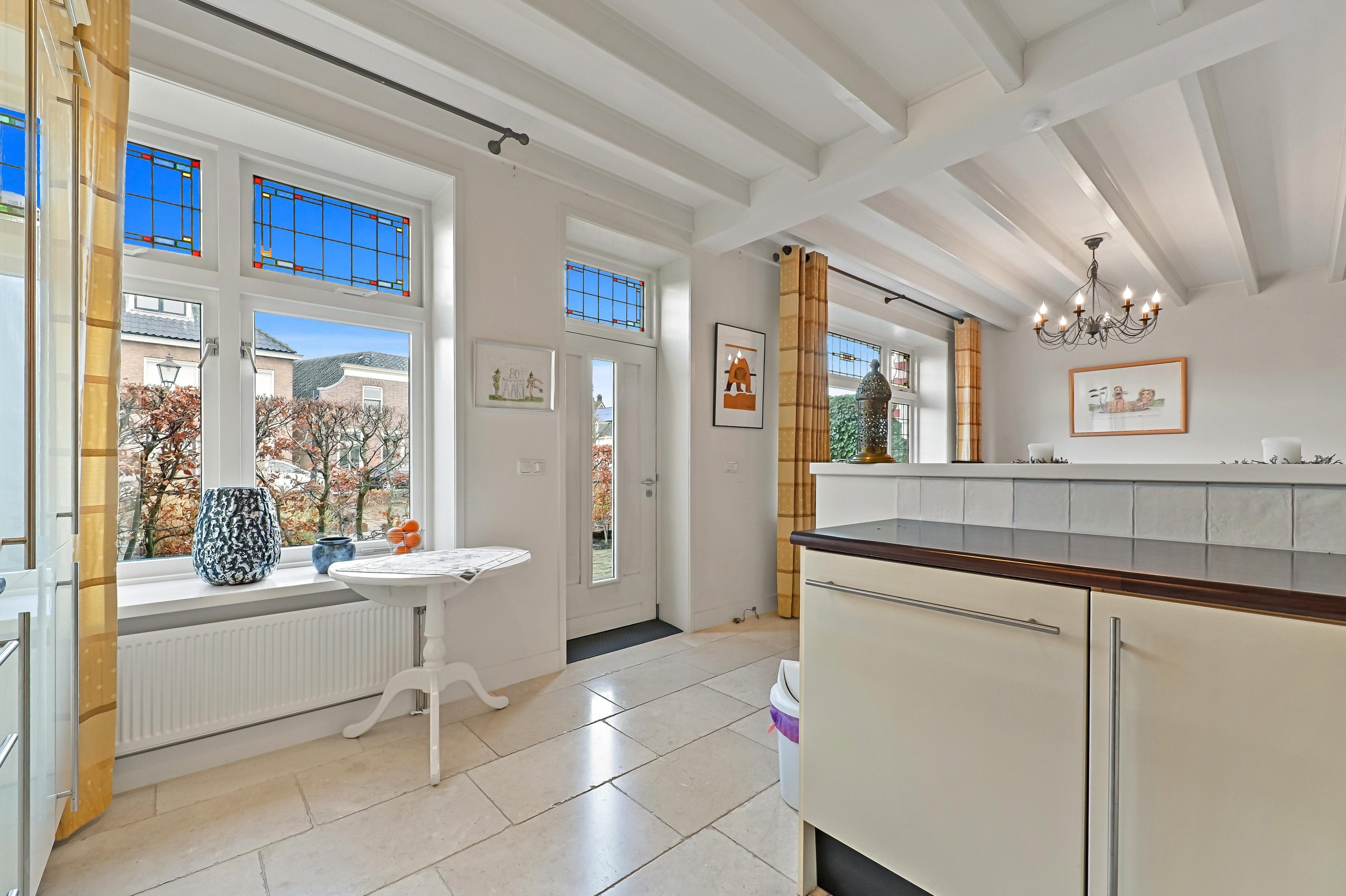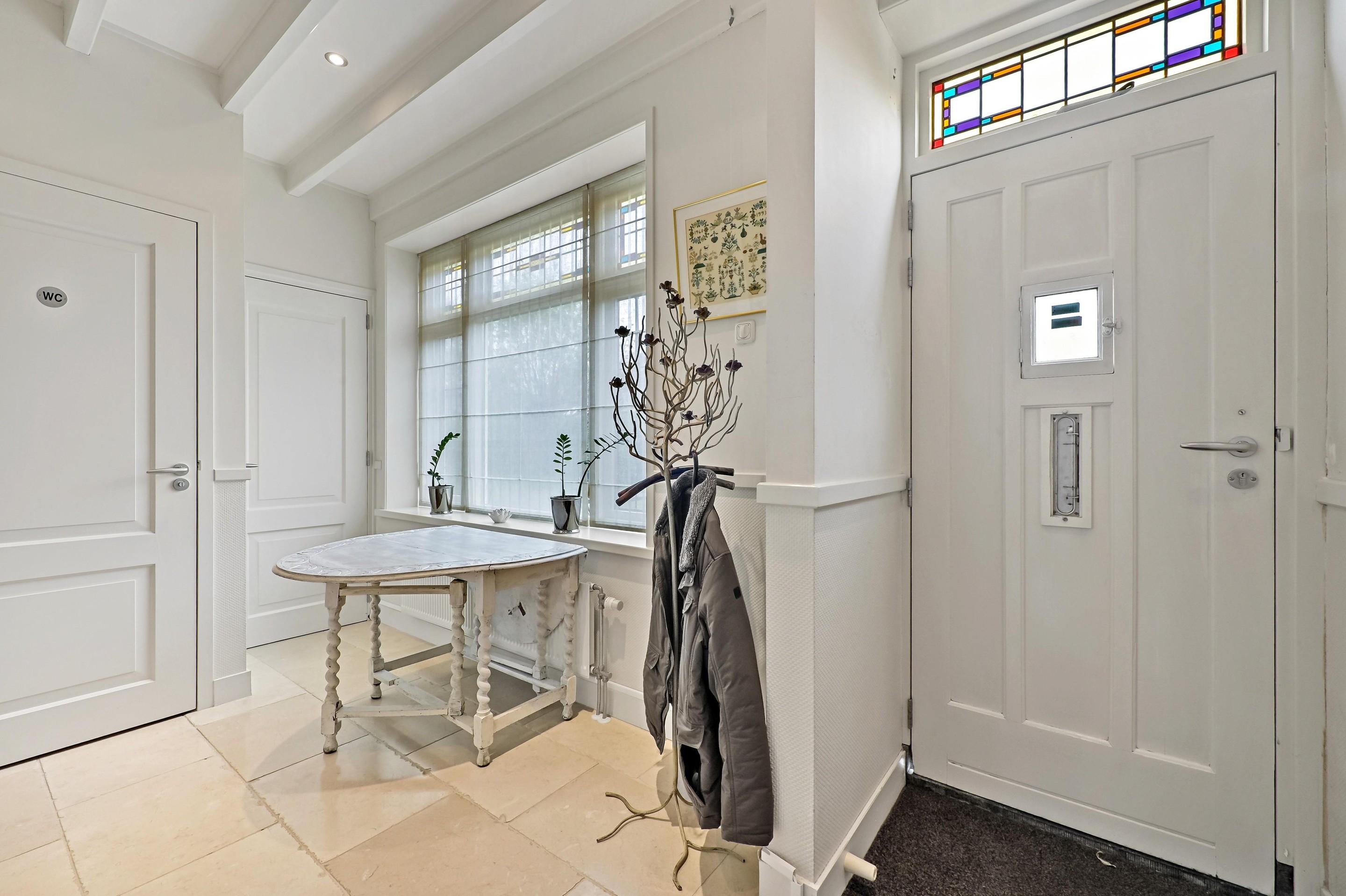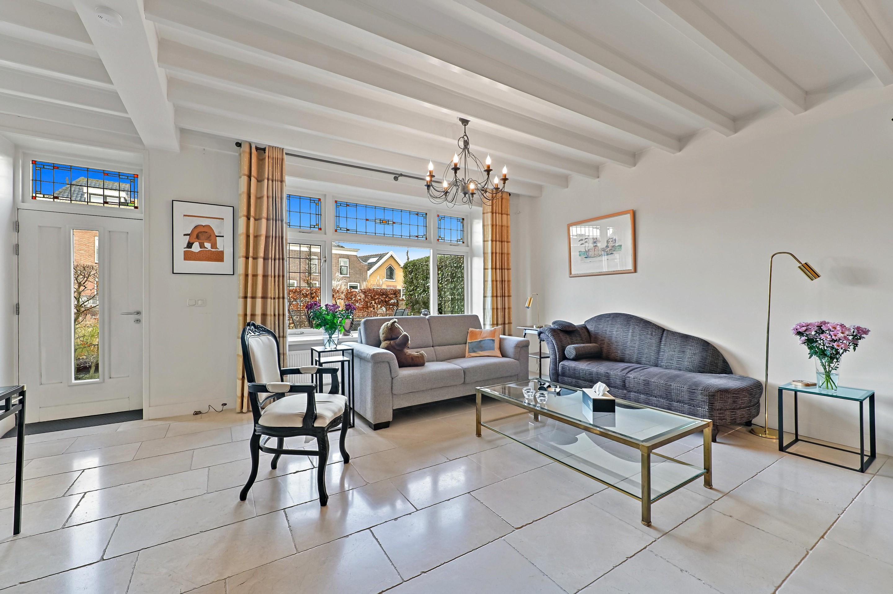 - Karakteristieke glas in lood ramen aanwezig in voor- en achtergevel