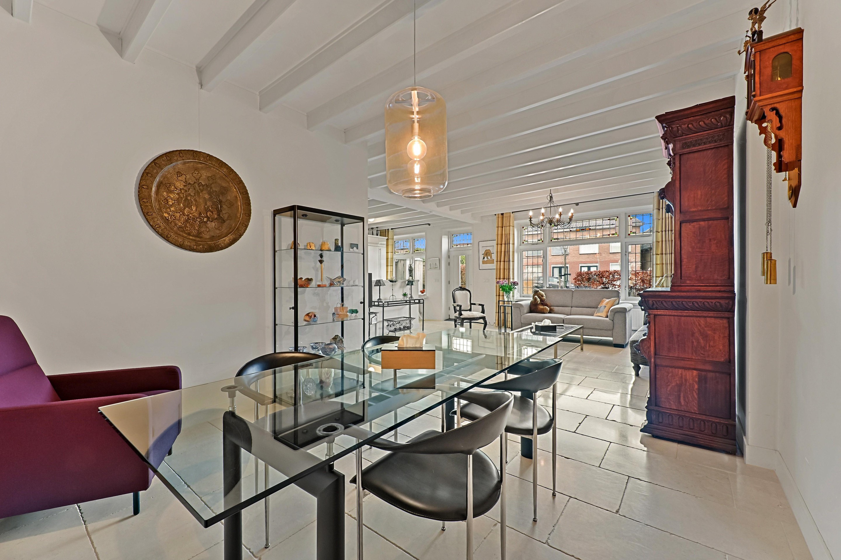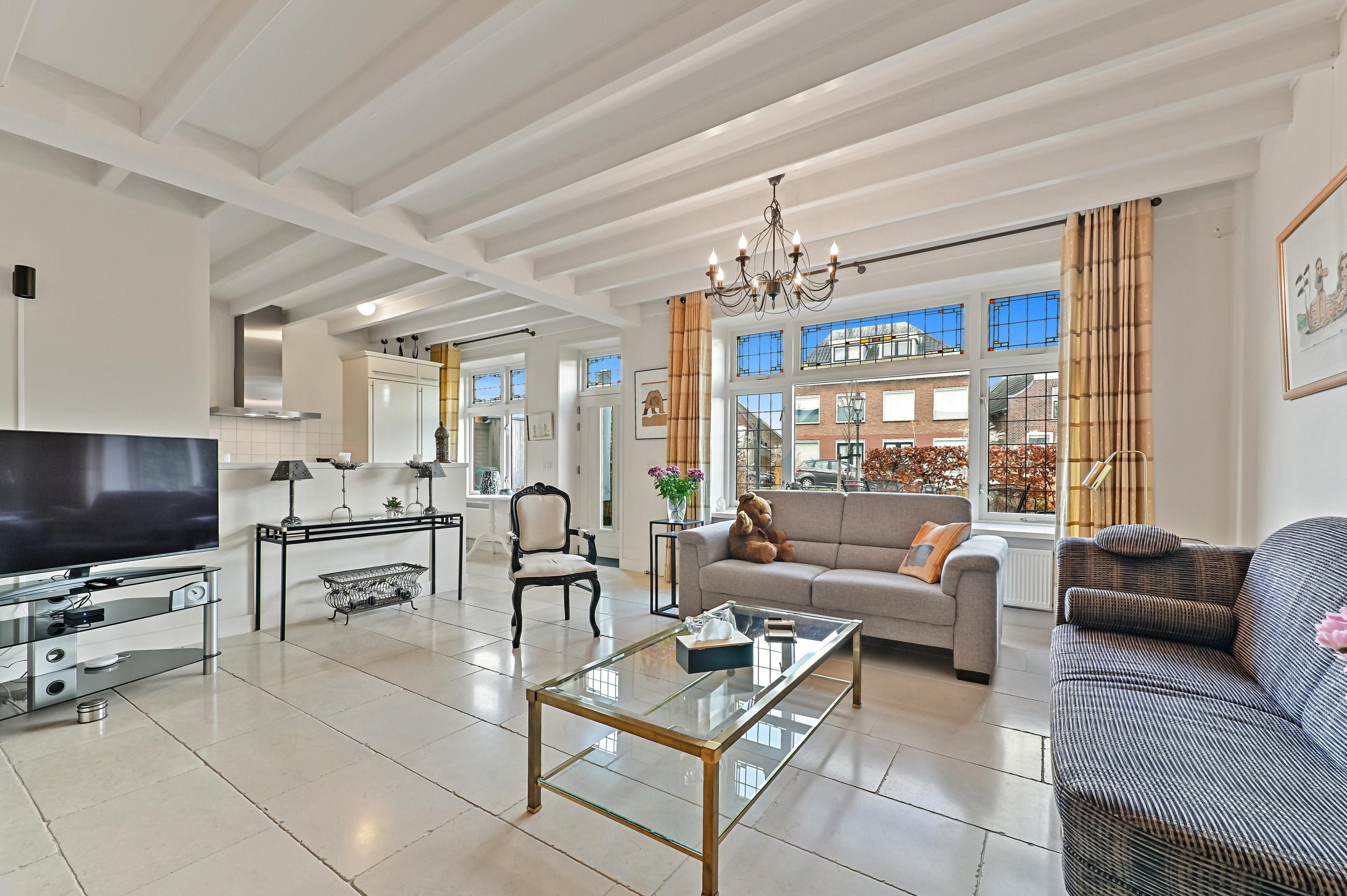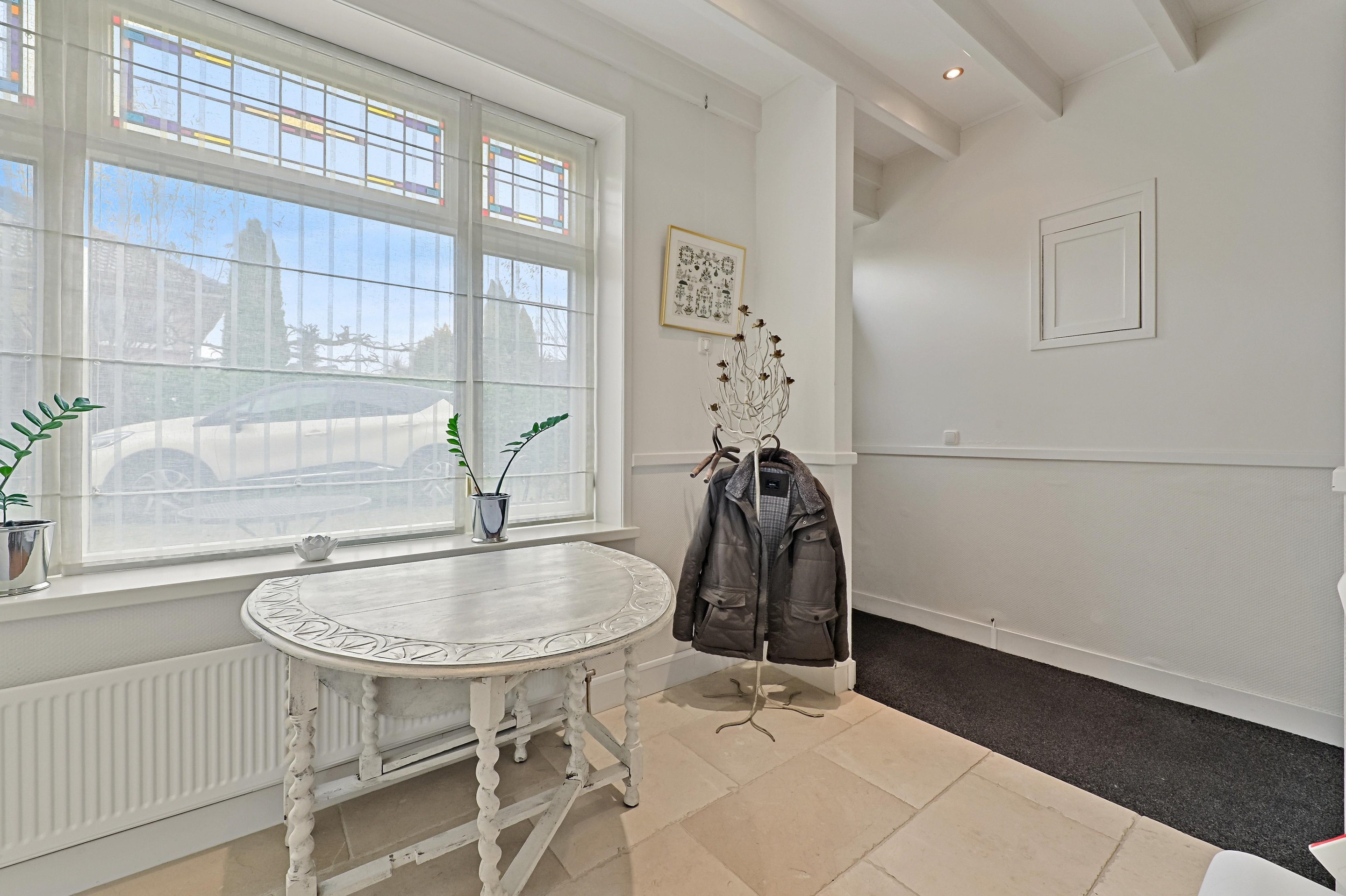 - Karakteristieke glas in lood ramen aanwezig in voor- en achtergevel
