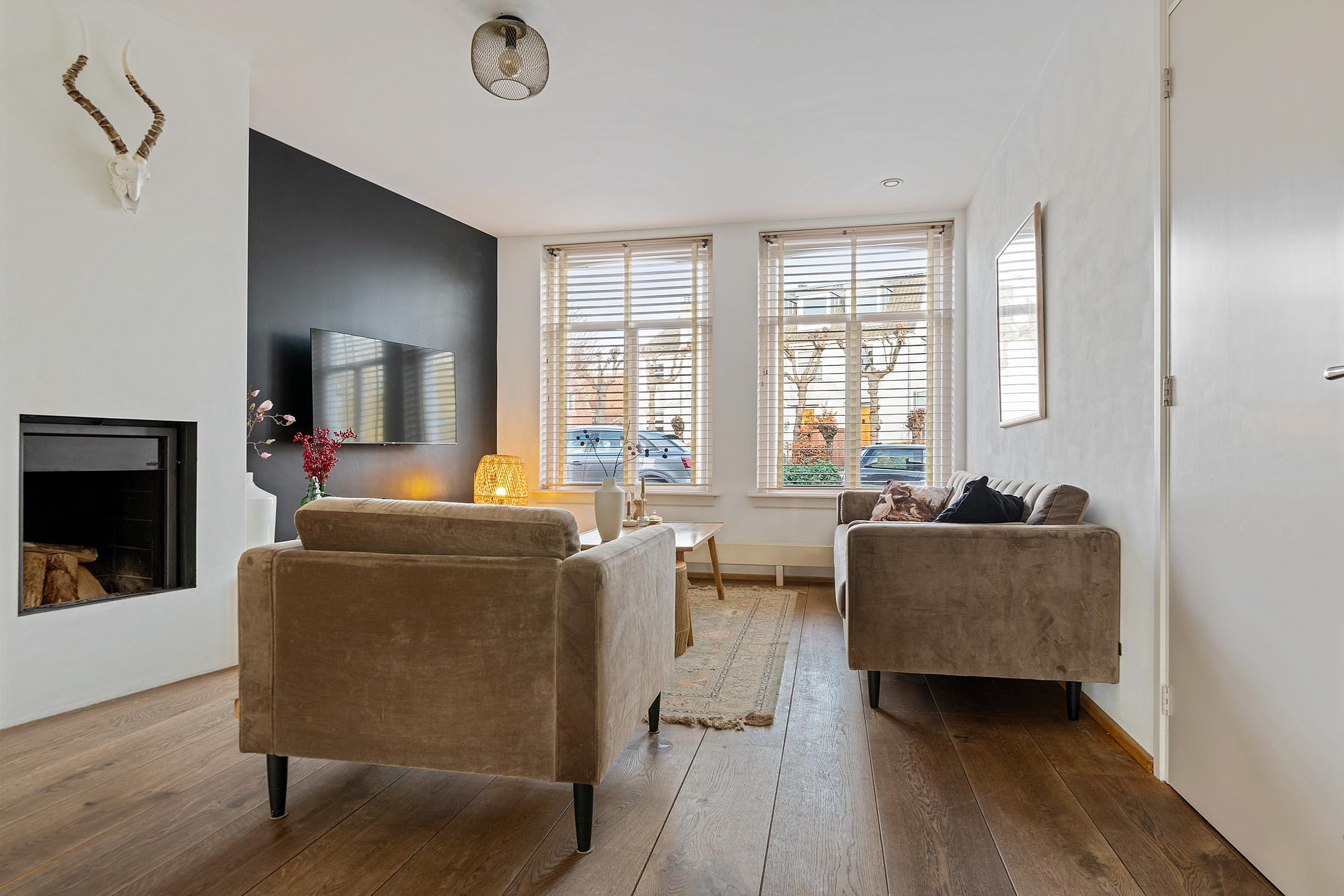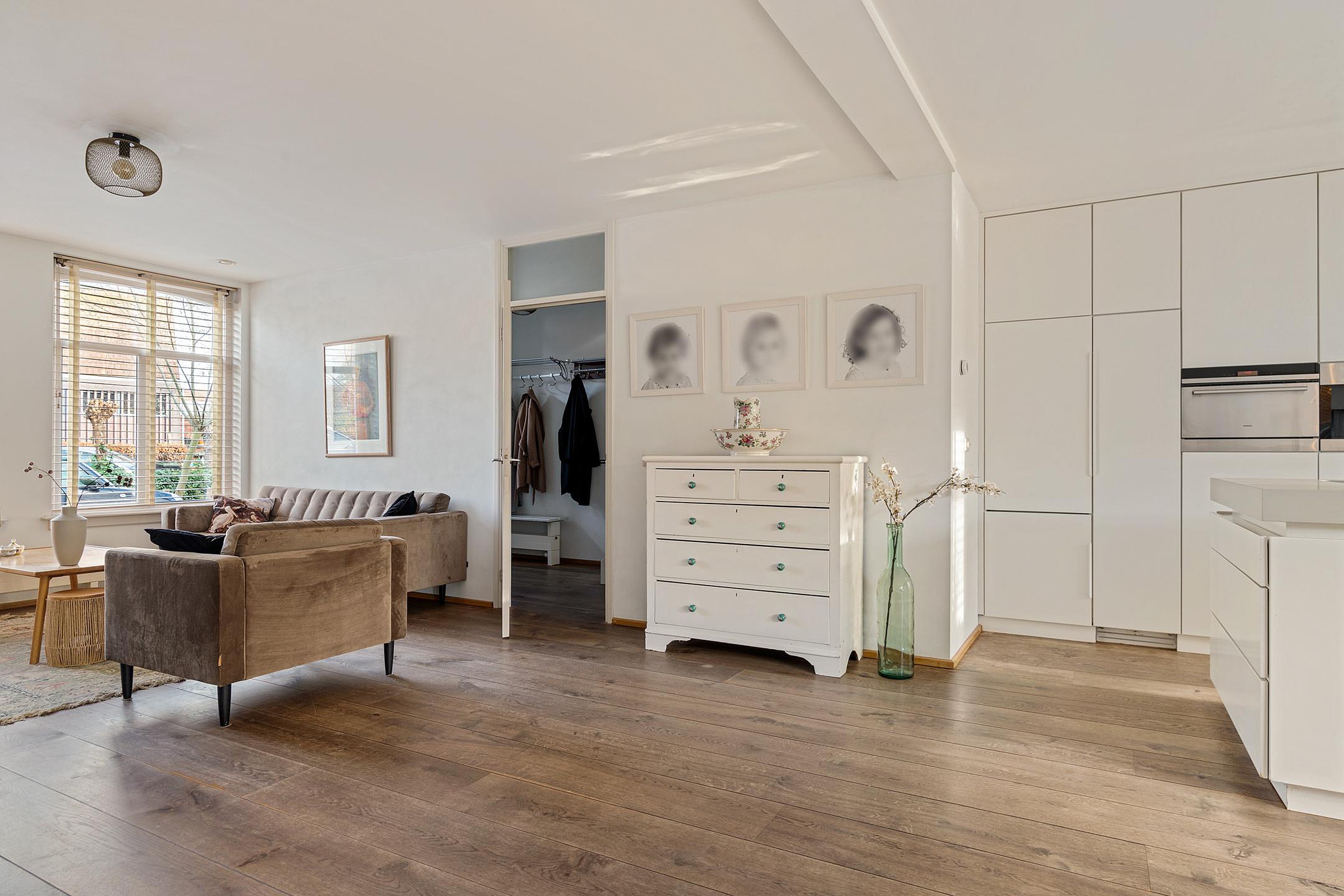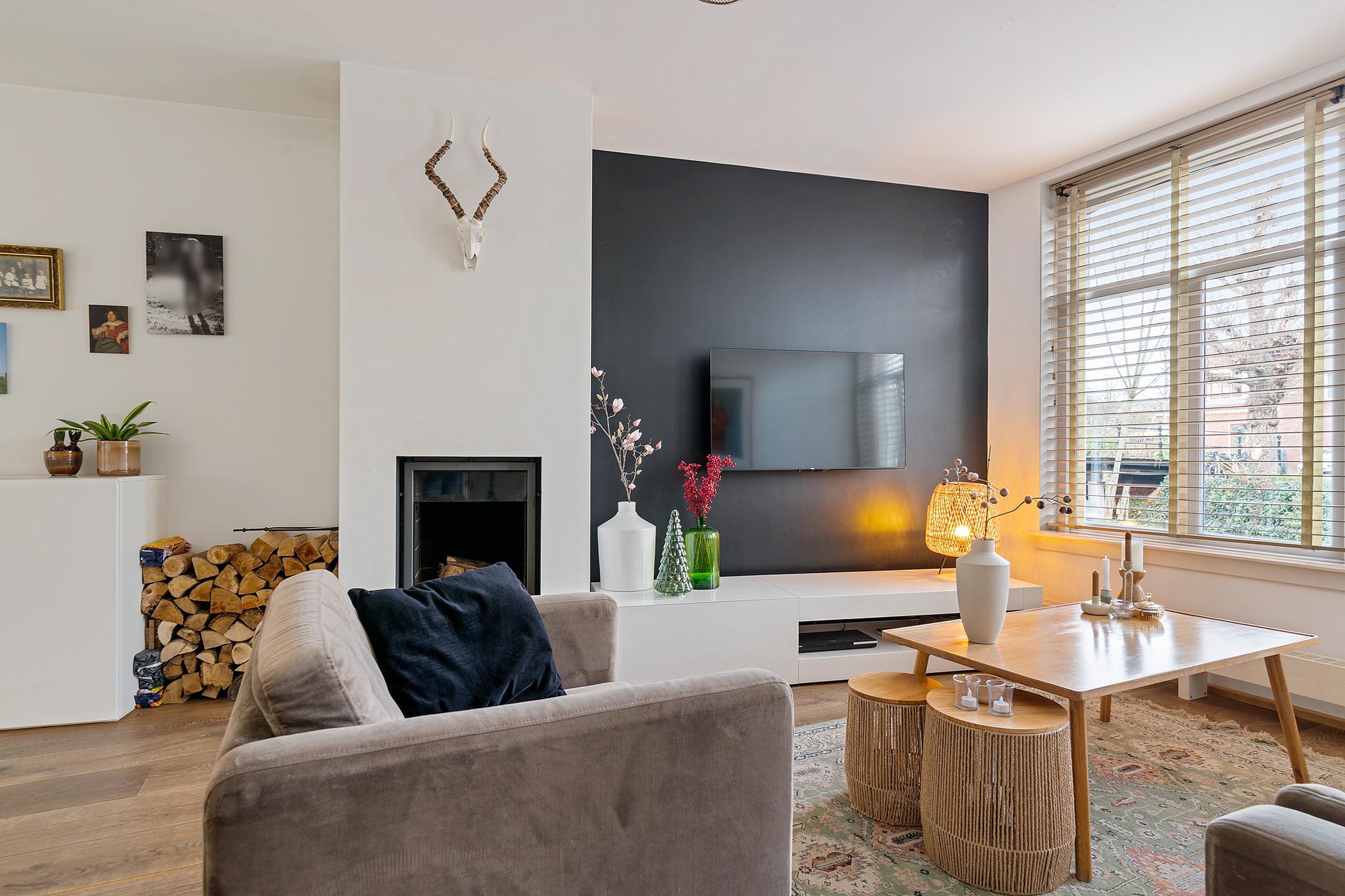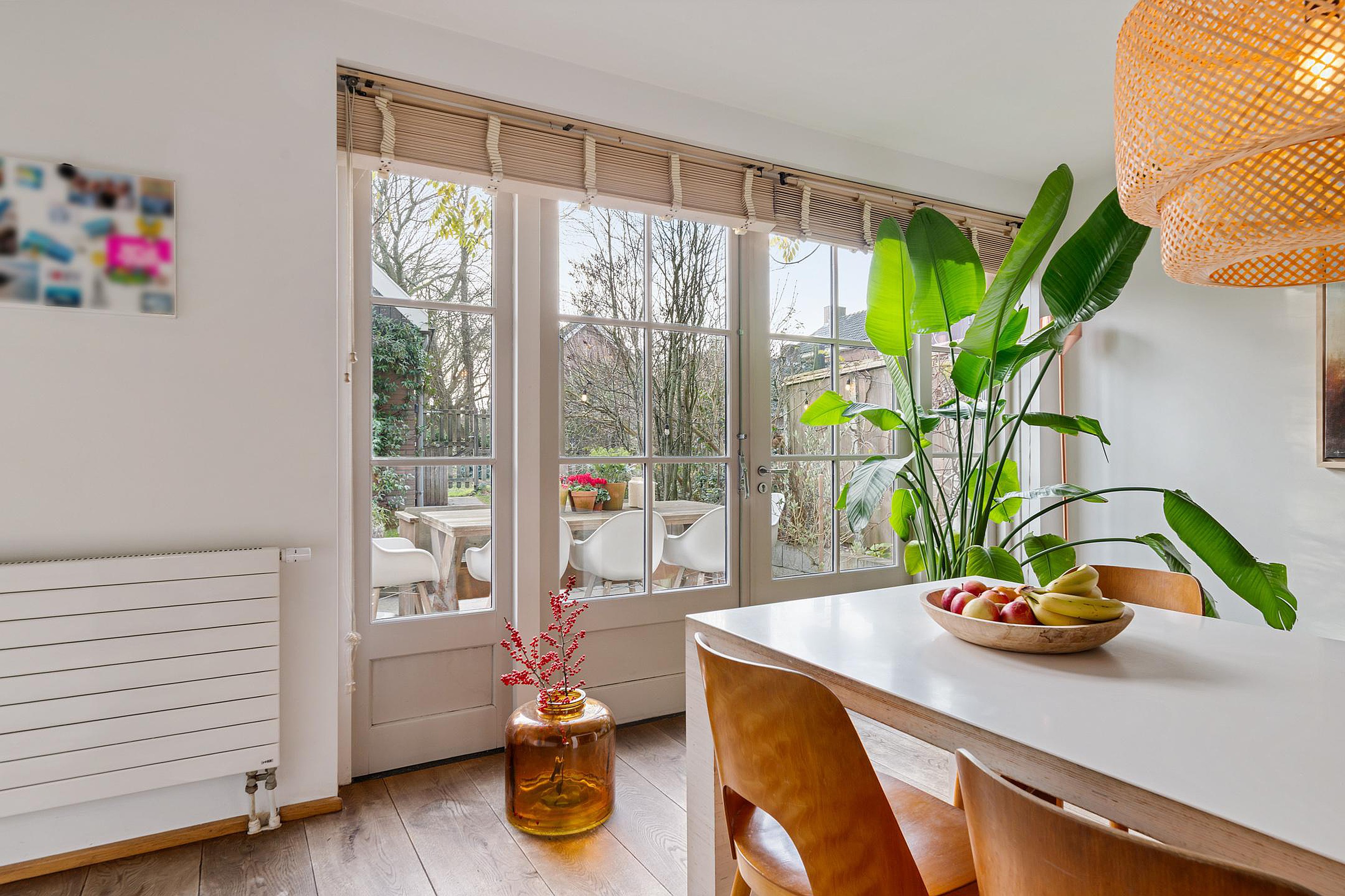 Na de royale entree met meterkast, trapopgang en moderne toiletruimte met fonteintje, stap je de woonkamer in, die naar de achterzijde toe schuin wegloopt. Dit maakt de kamer niet alleen speels, maar ook lekker ruim! Aan de voorzijde is alle ruimte voor een gezellige zithoek bij de openhaard met zicht op de rustige straat en gracht. Aan de achterzijde, bij de openslaande deuren naar de achtertuin, vindt het hele gezin een plekje aan de grote eettafel. Direct daarnaast is de royale open keuken met kook- en spoeleiland. De moderne keuken, in wit uitgevoerd, is voorzien van diverse inbouwapparatuur, waaronder 5-pits gasfornuis, vaatwasser, koelkast, oven en koffiemachine en biedt praktisch veel bergruimte. Extra bergruimte is handig weggewerkt. Via de deur in de keukenwand bereik je je eigen kelder met een stahoogte van 1.92 meter. Altijd al een wijnkelder willen hebben? Dan is dit je kans!