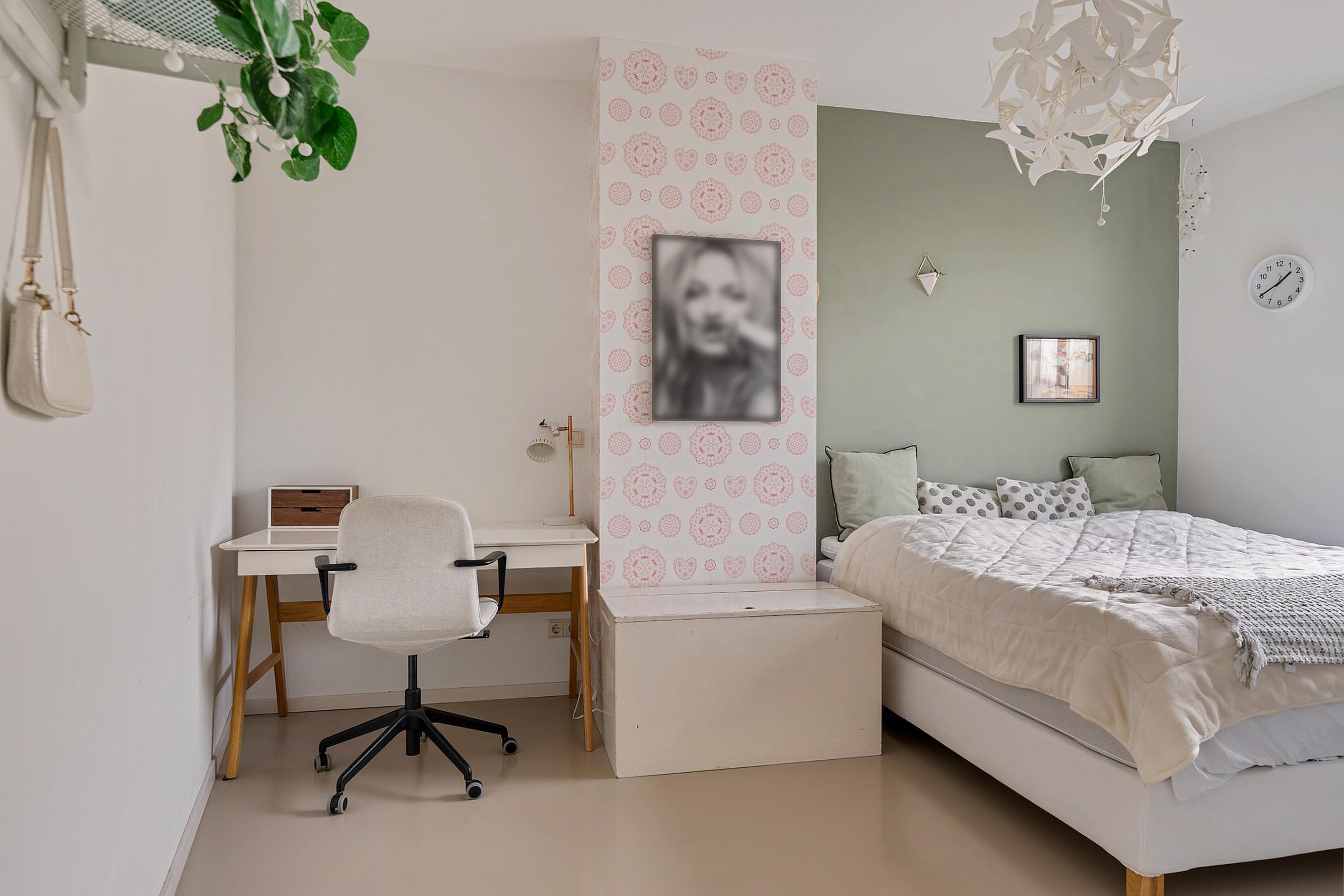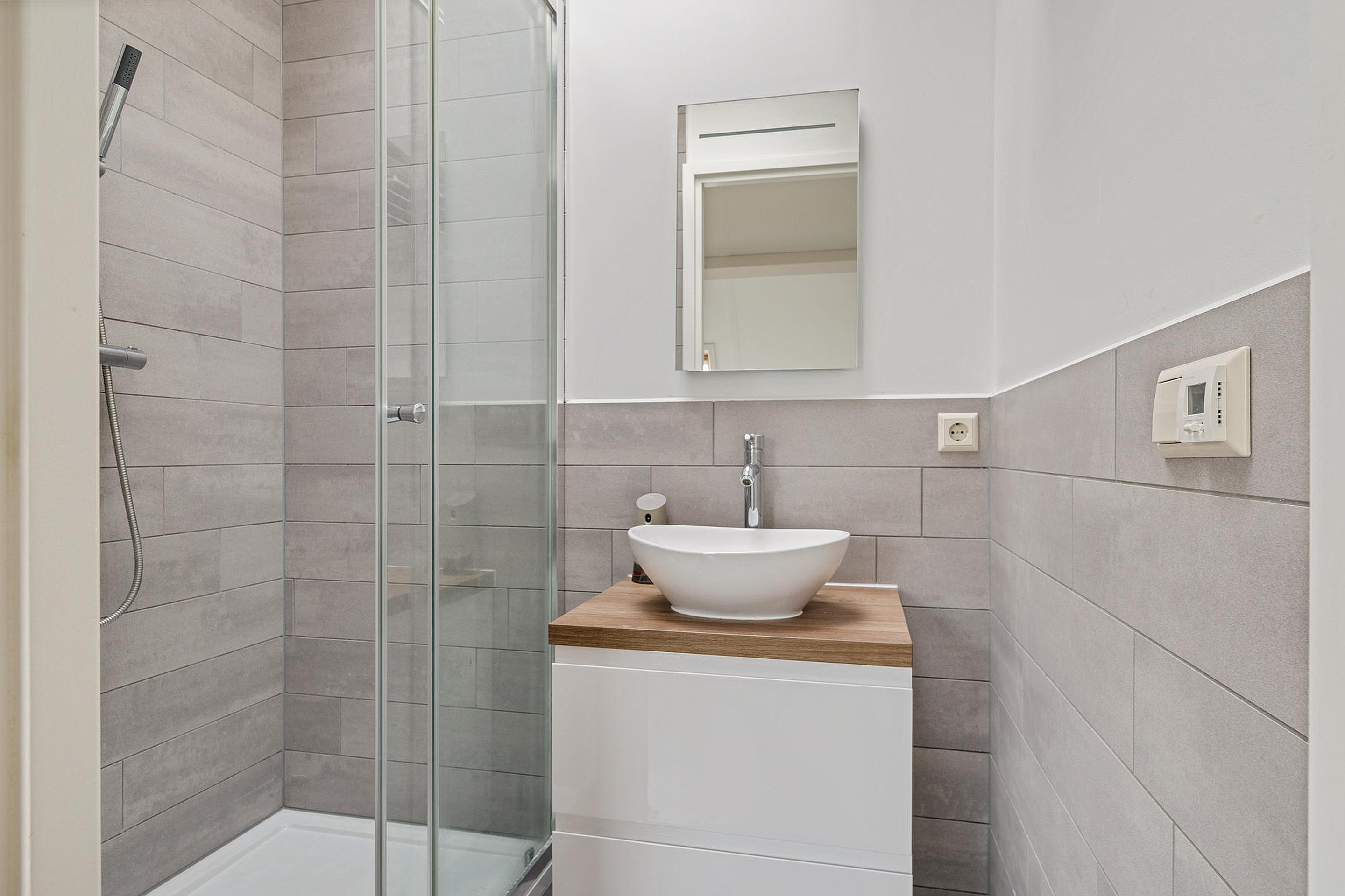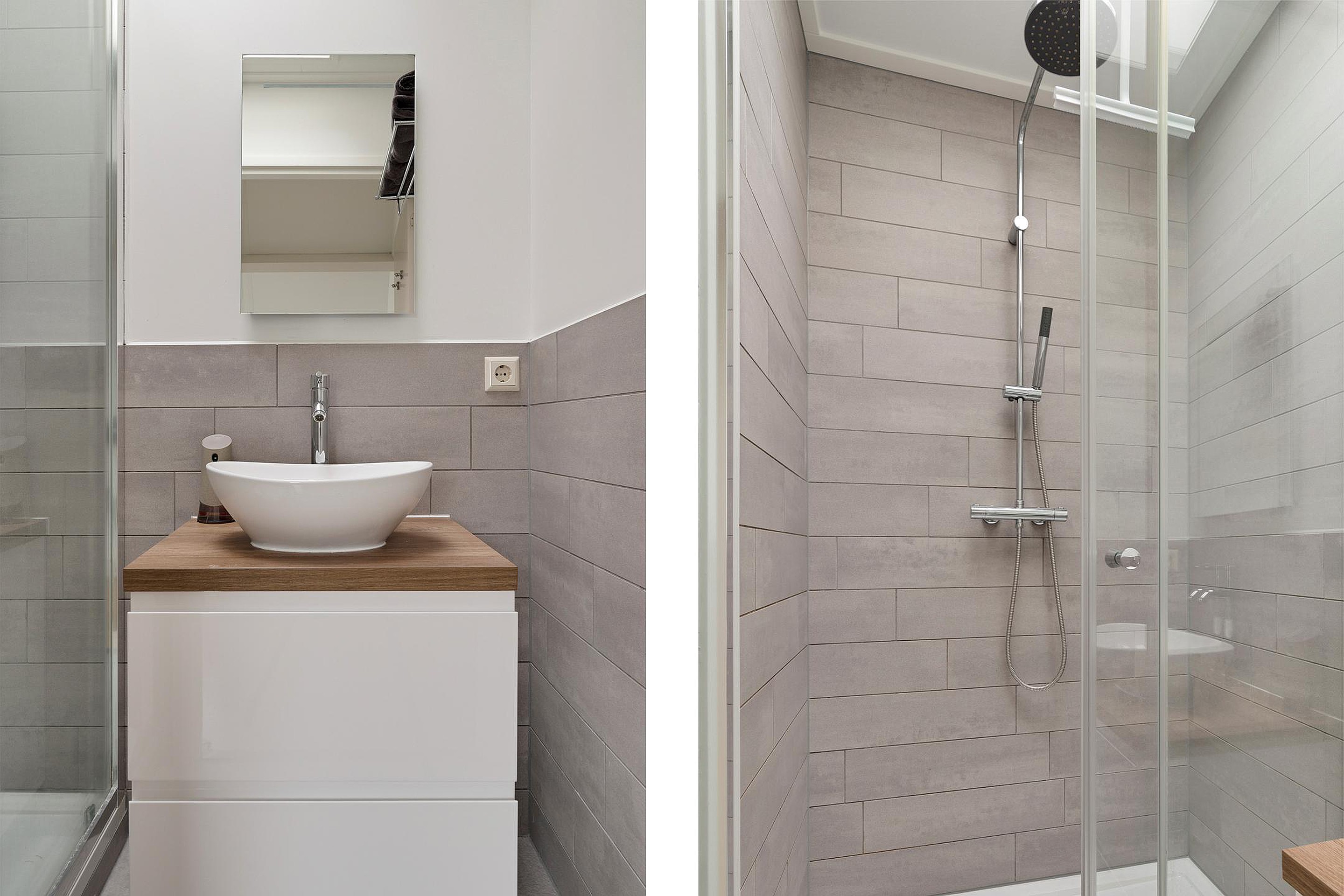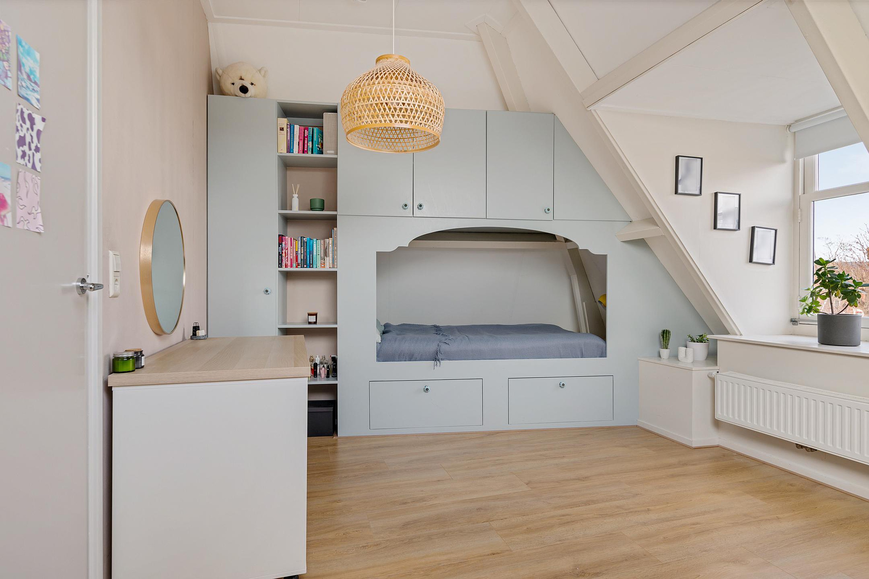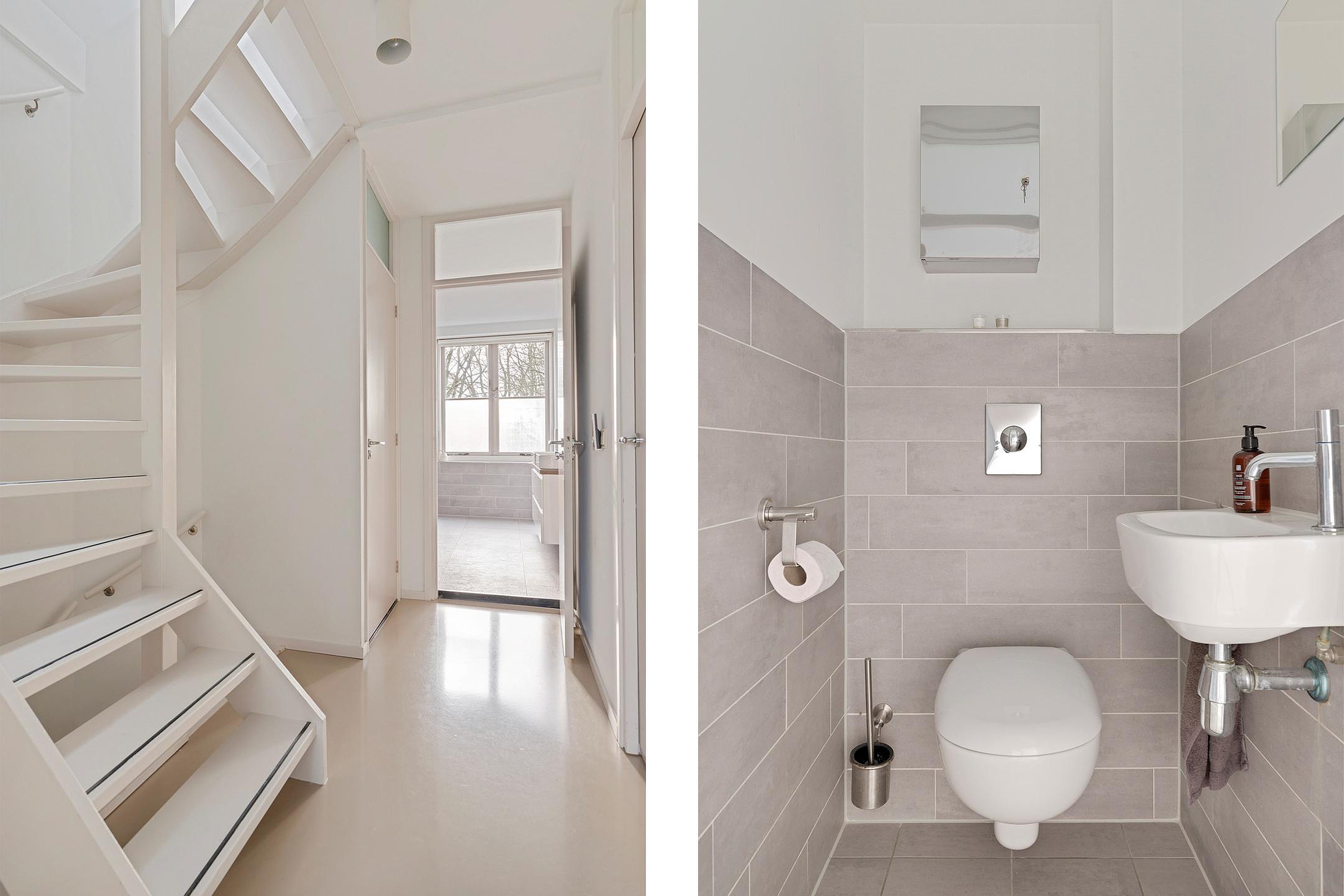 Een vaste open trap, met daglicht door een groot dakraam, brengt je naar de tweede verdieping. Door de gebroken kap is hier prettig veel leefruimte ontstaan. Aan de overloop vind je de moderne badkamer, voorzien van wastafel met meubel, inloopdouche en vloerverwarming. Deze ruimte heeft een dakkoepel voor daglichttoetreding. Aan de overkant van de overloop ligt een separate moderne toiletruimte met fonteintje. Er zijn op deze verdieping nog twee ruime slaapkamers gerealiseerd. De kamer aan de voorzijde is voorzien van een dakraam en een dakkapel, de kamer aan de achterzijde heeft een dubbel dakraam. In de ruimte tussen deze slaapkamers in, is nog een berging gerealiseerd. Handig voor alle spullen die een gezin verzameld. In deze berging hangt ook de Cv-ketel (huur) en is er plek voor wasmachine en droger.