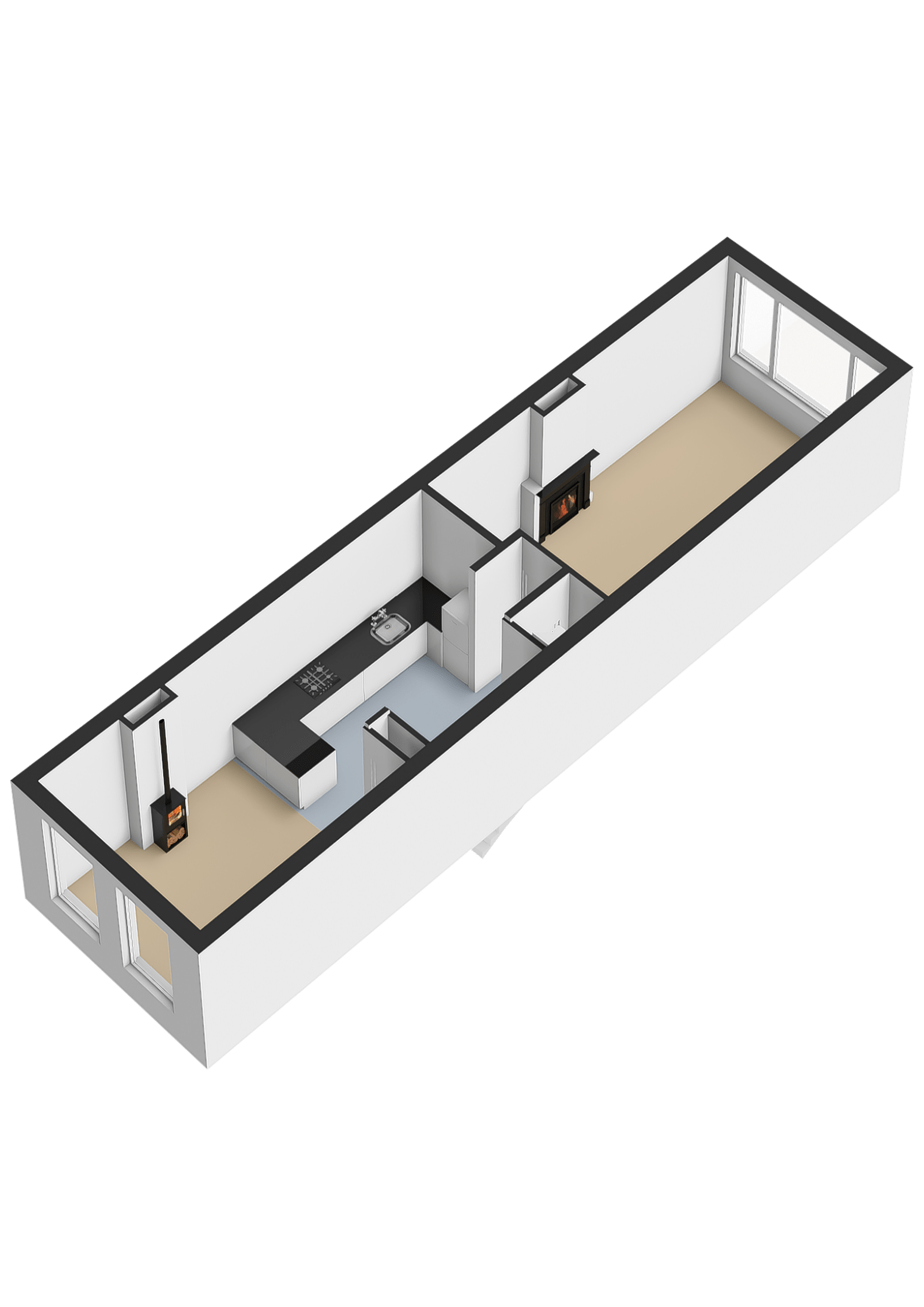 Gaat u deze ruimte gebruiken als woonverdieping, werkkamer met slaapkamer aan de achterzijde of kiest u ervoor om boven te wonen en beneden te werken? Meerdere indelingsopties zijn hier mogelijk!