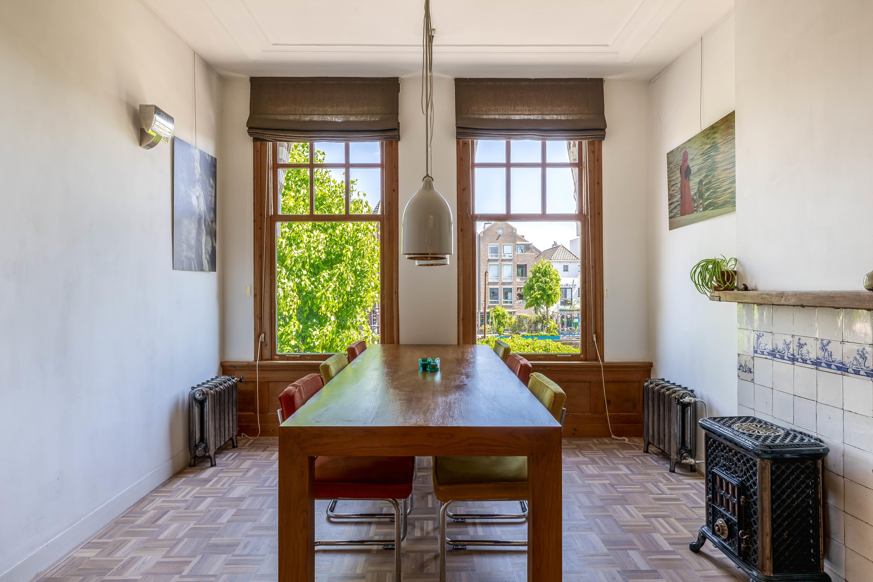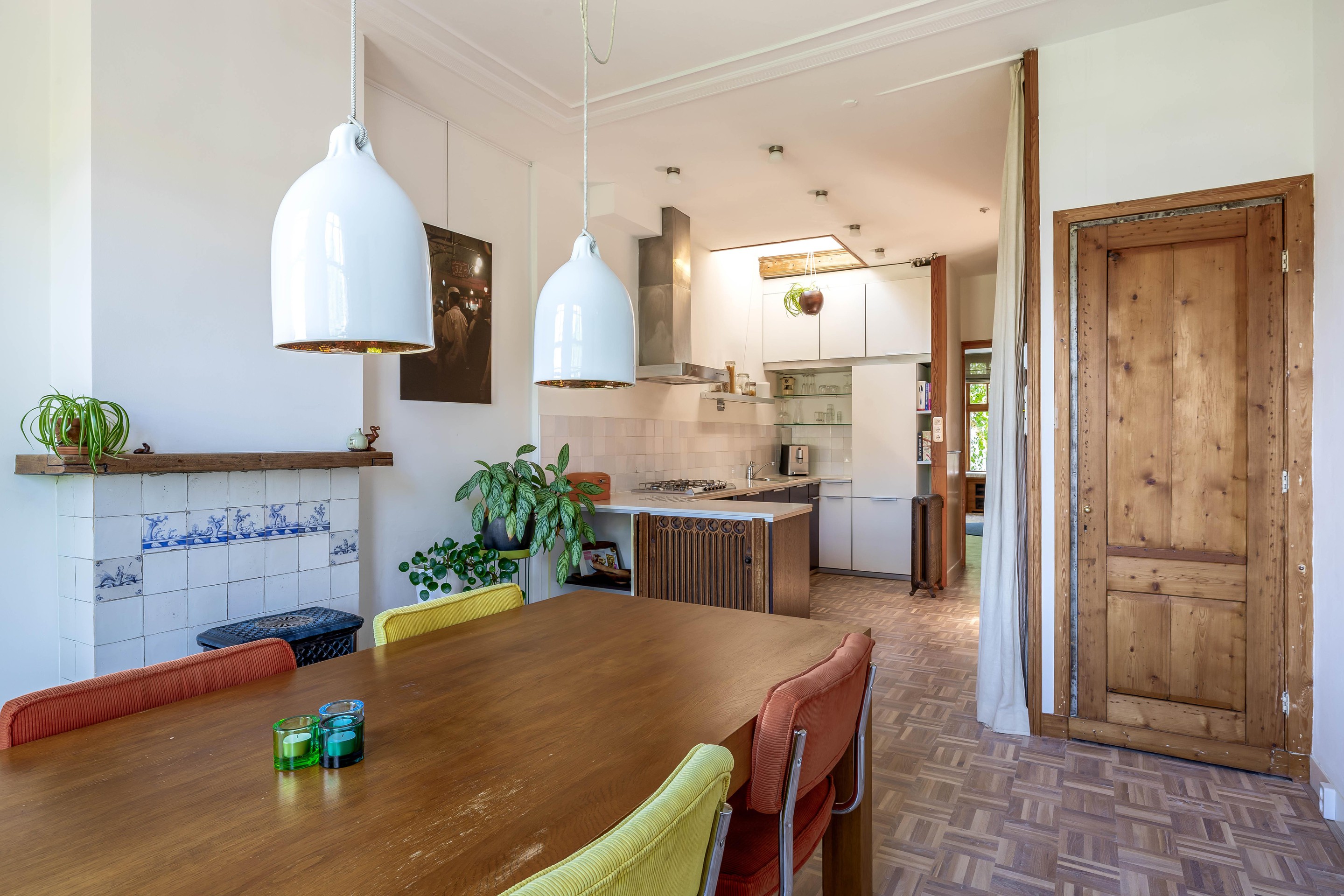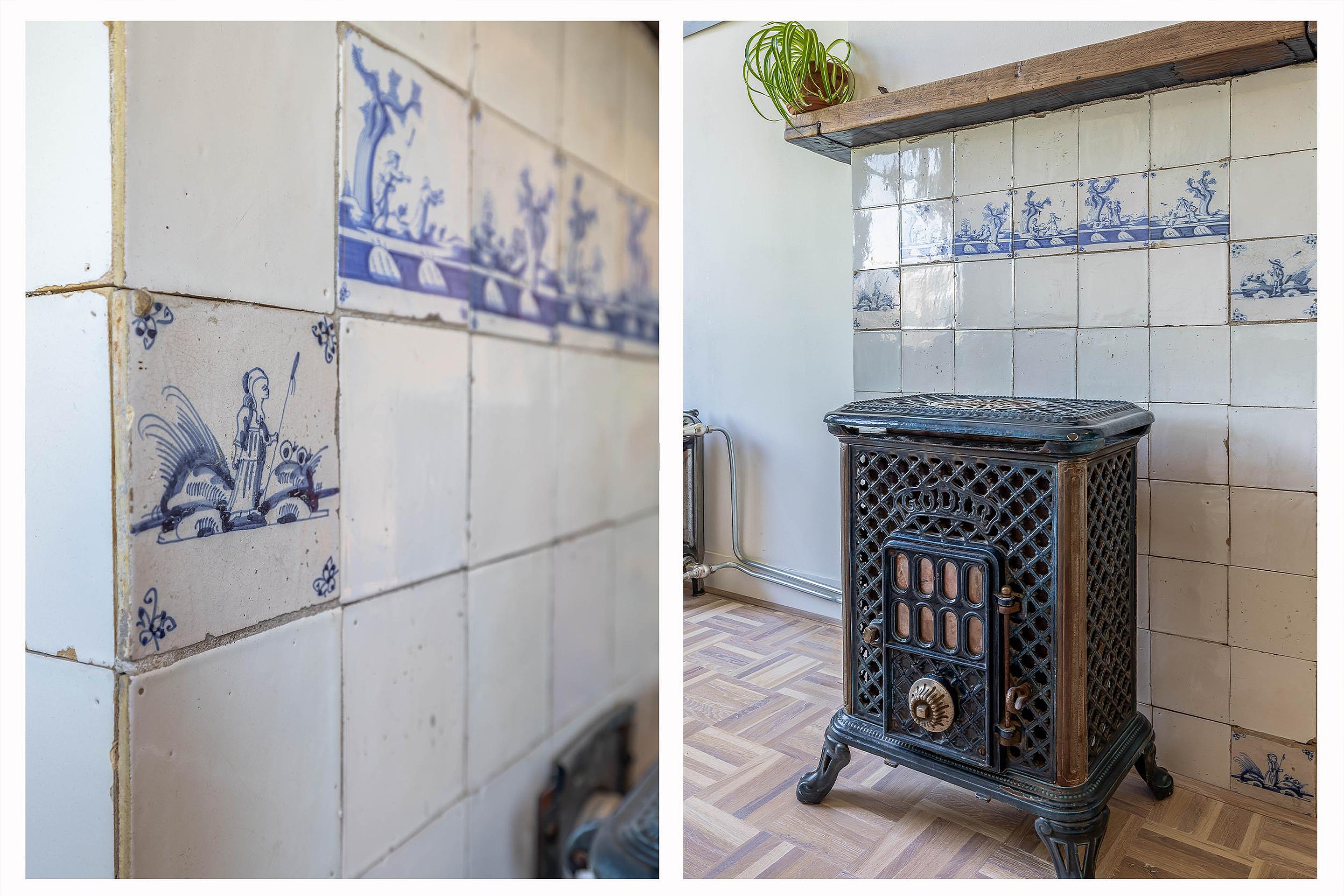 Hoge plafonds, paneeldeuren, gietijzeren radiatoren, plafondlijsten, authentieke kachel , Delfsblauwe tegels. Het is er allemaal!