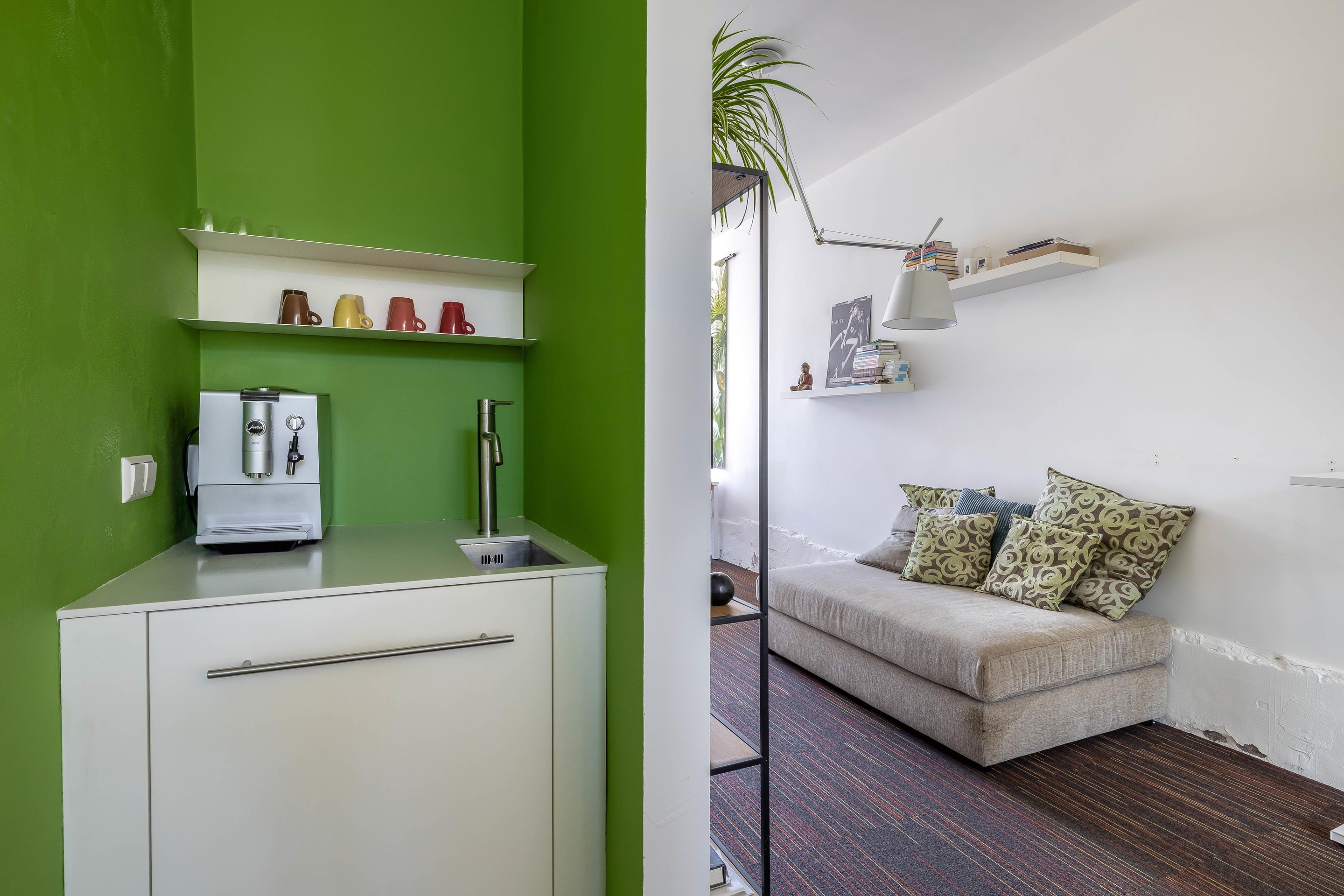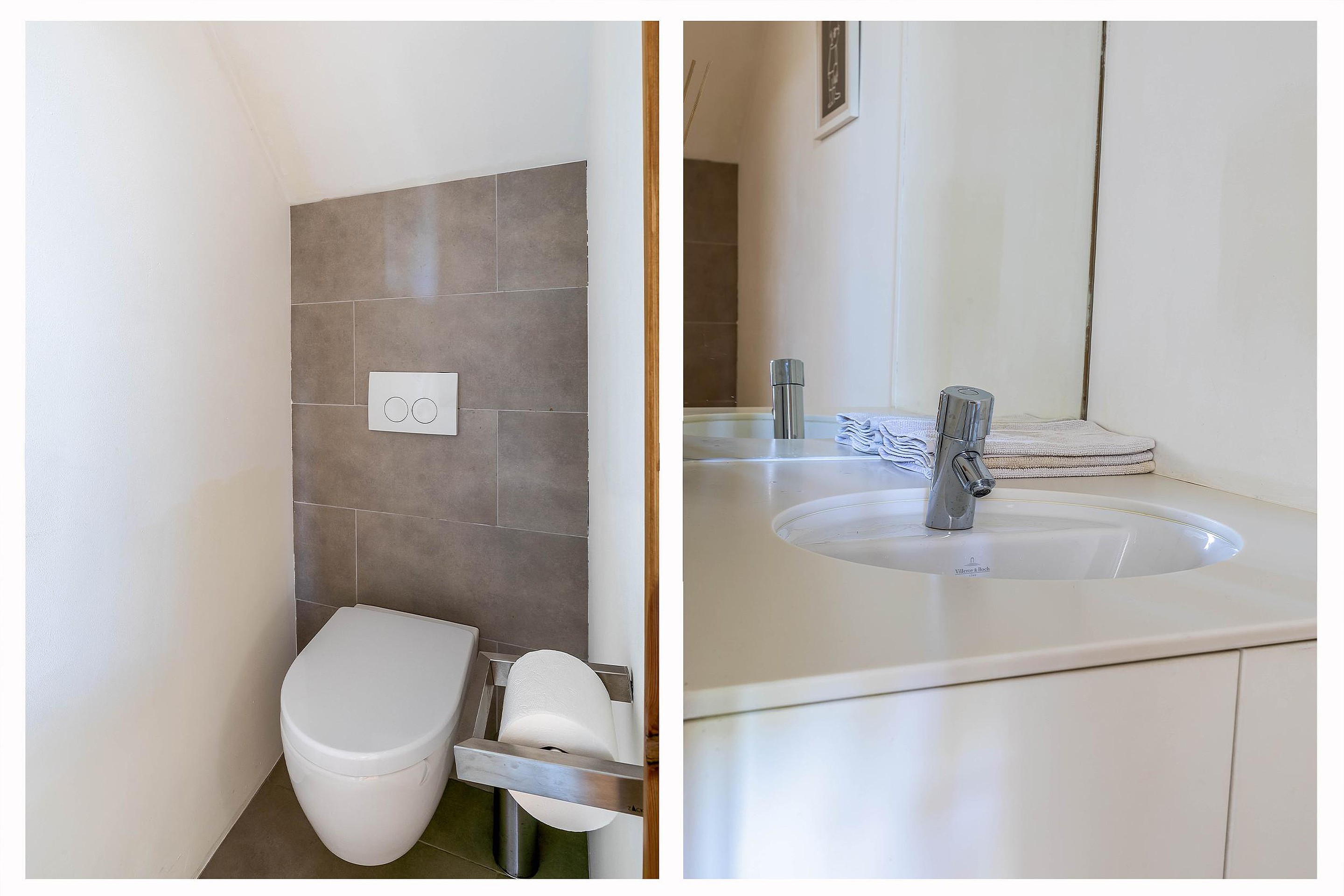 De ruimte beschikt over een pantry met keukenkast en kleine wasbak en een keurig verzorgd toilet.