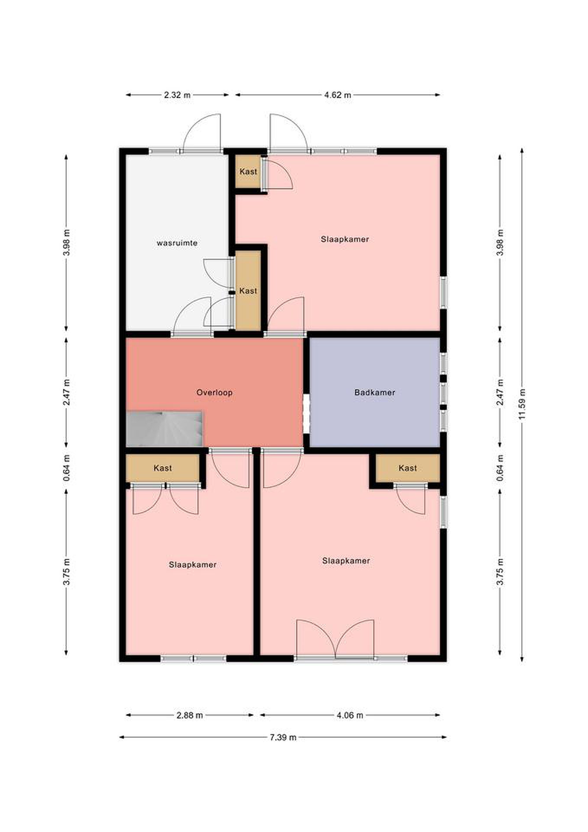 Tweede verdieping De trap leidt verder naar de tweede verdieping waar een zee aan ruimte op u wacht. Deze verdieping is naar wens in te richten; denk aan een extra slaapkamer, een creatieve werkruimte of een luxe hobbykamer. De flexibiliteit maakt dit herenhuis niet alleen stijlvol, maar ook toekomstbestendig.