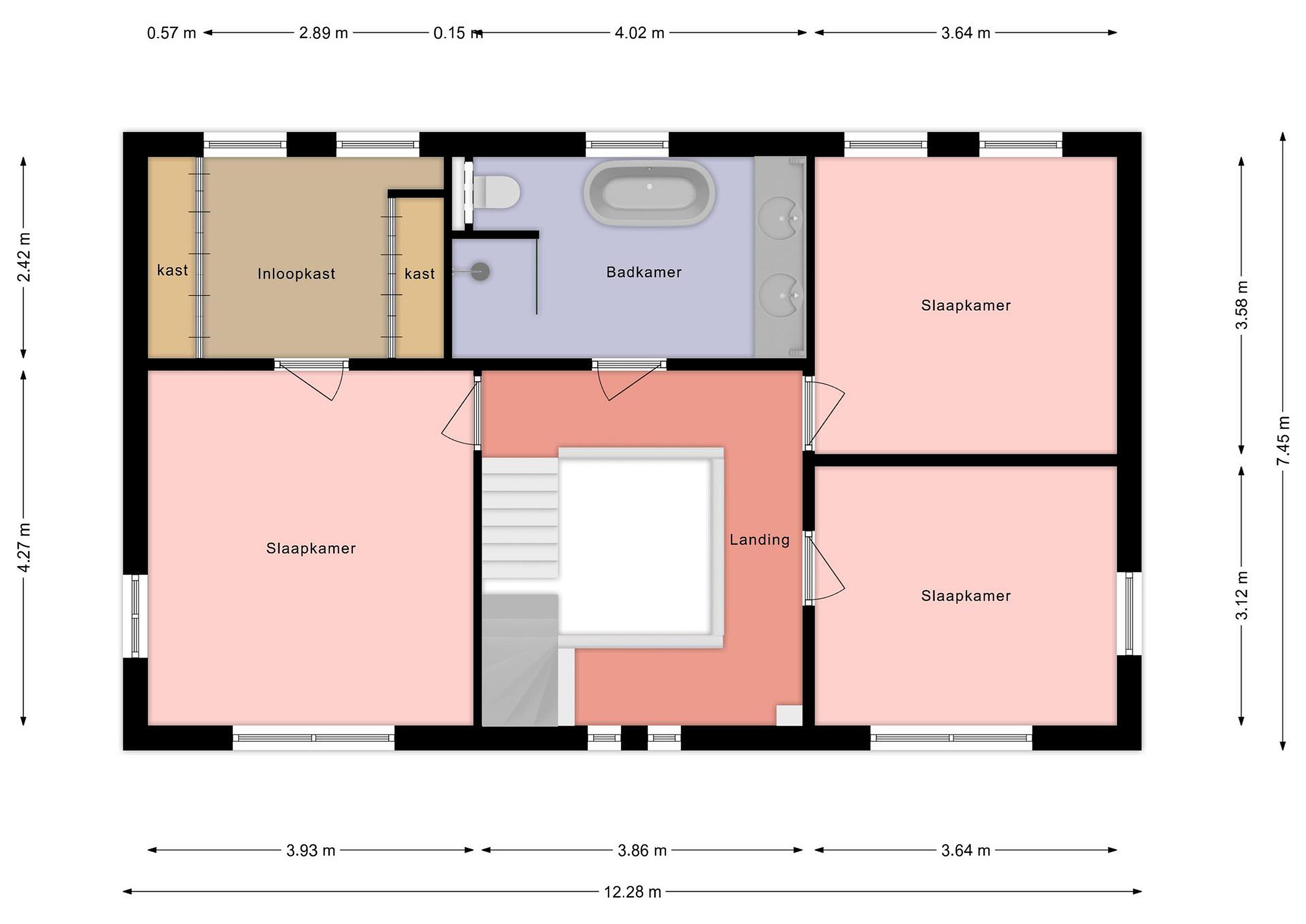 Tweede verdieping Via vaste trap naar de royale zolderverdieping met de opstelplaats voor de CV-ketel en de wasmachine- en drogeraansluitingen. Mogelijkheid om een 4e slaapkamer te creëren.