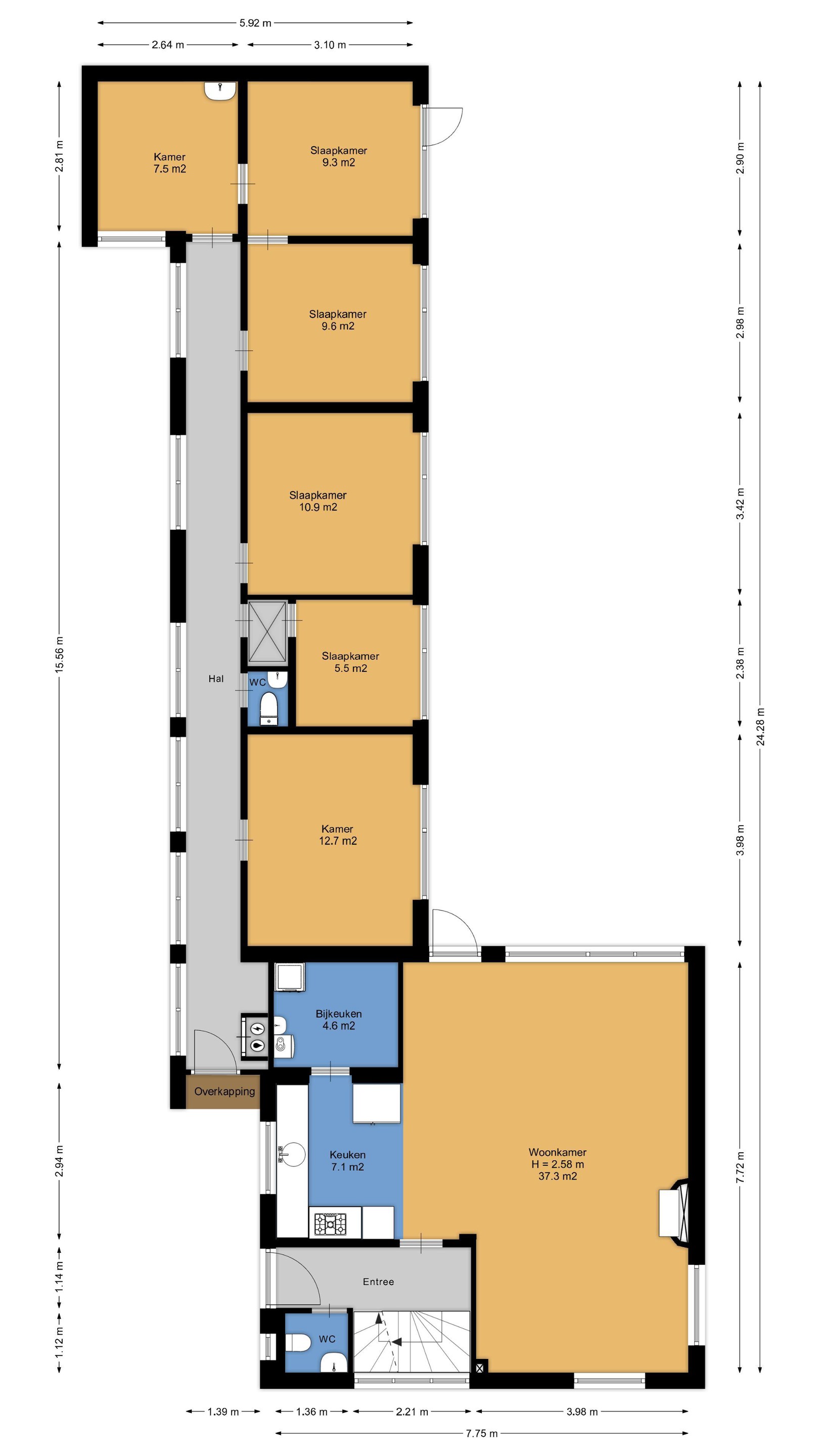 (Door de hoogte van ca. 1,90 m telt dit officieel niet mee als woonoppervlak, maar de ruimte is praktisch en veelzijdig in gebruik.)