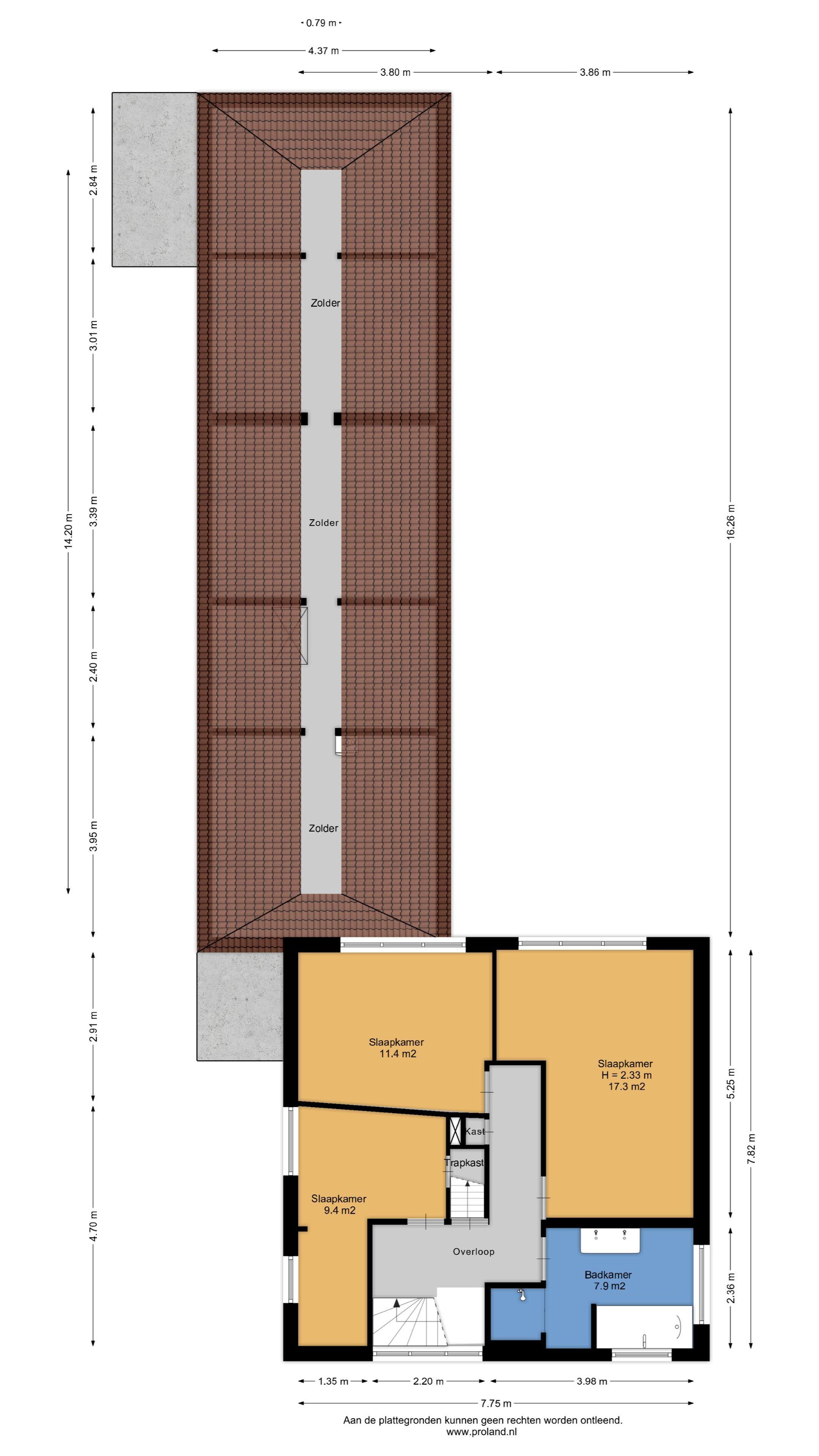 Bergzolder over de gehele lengte met cv-ketel (Remeha 2017).