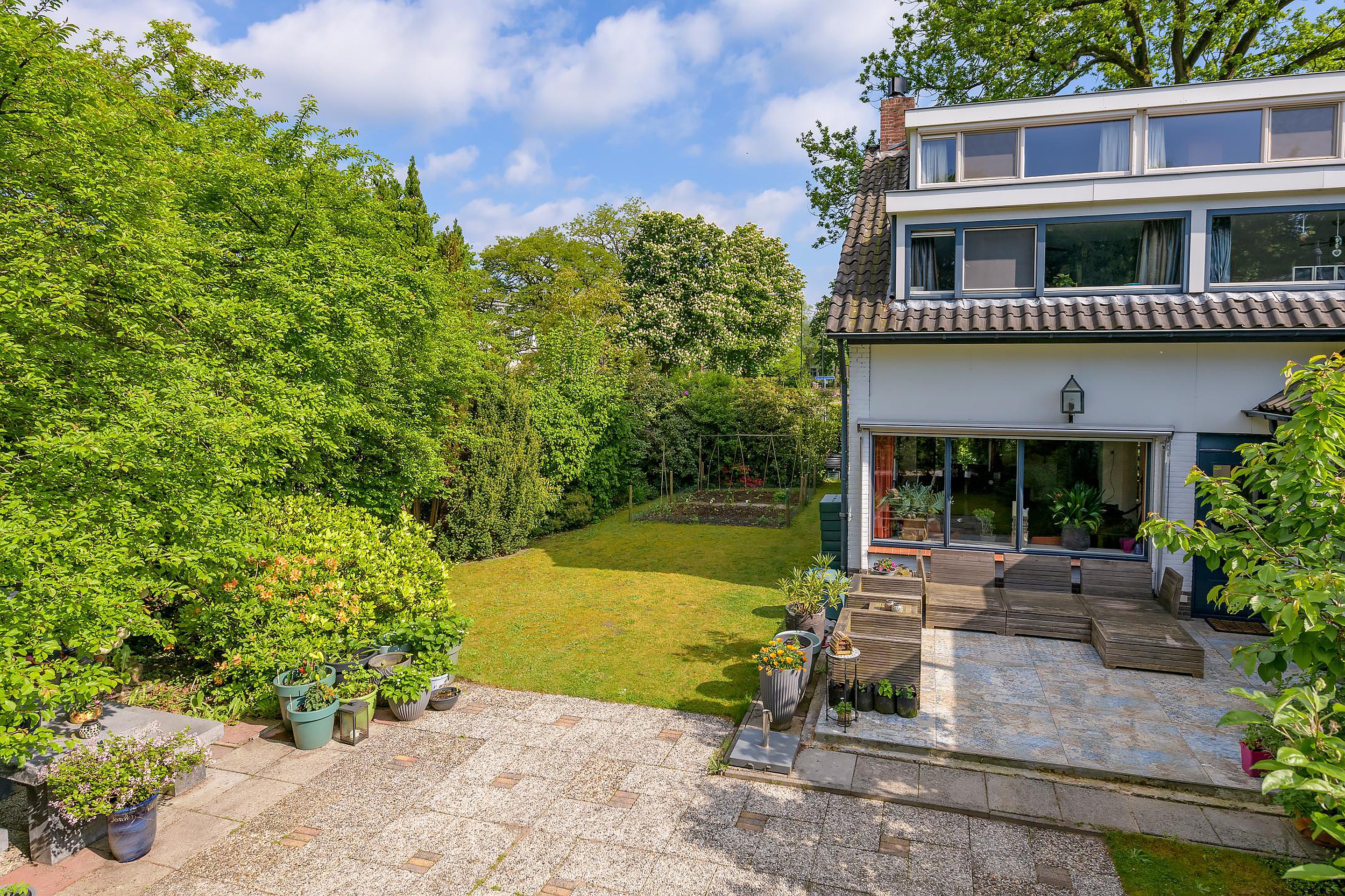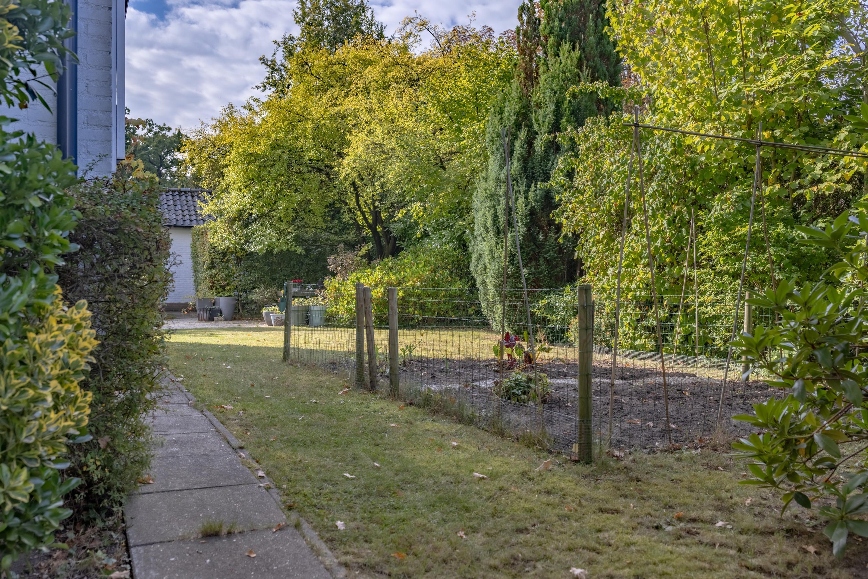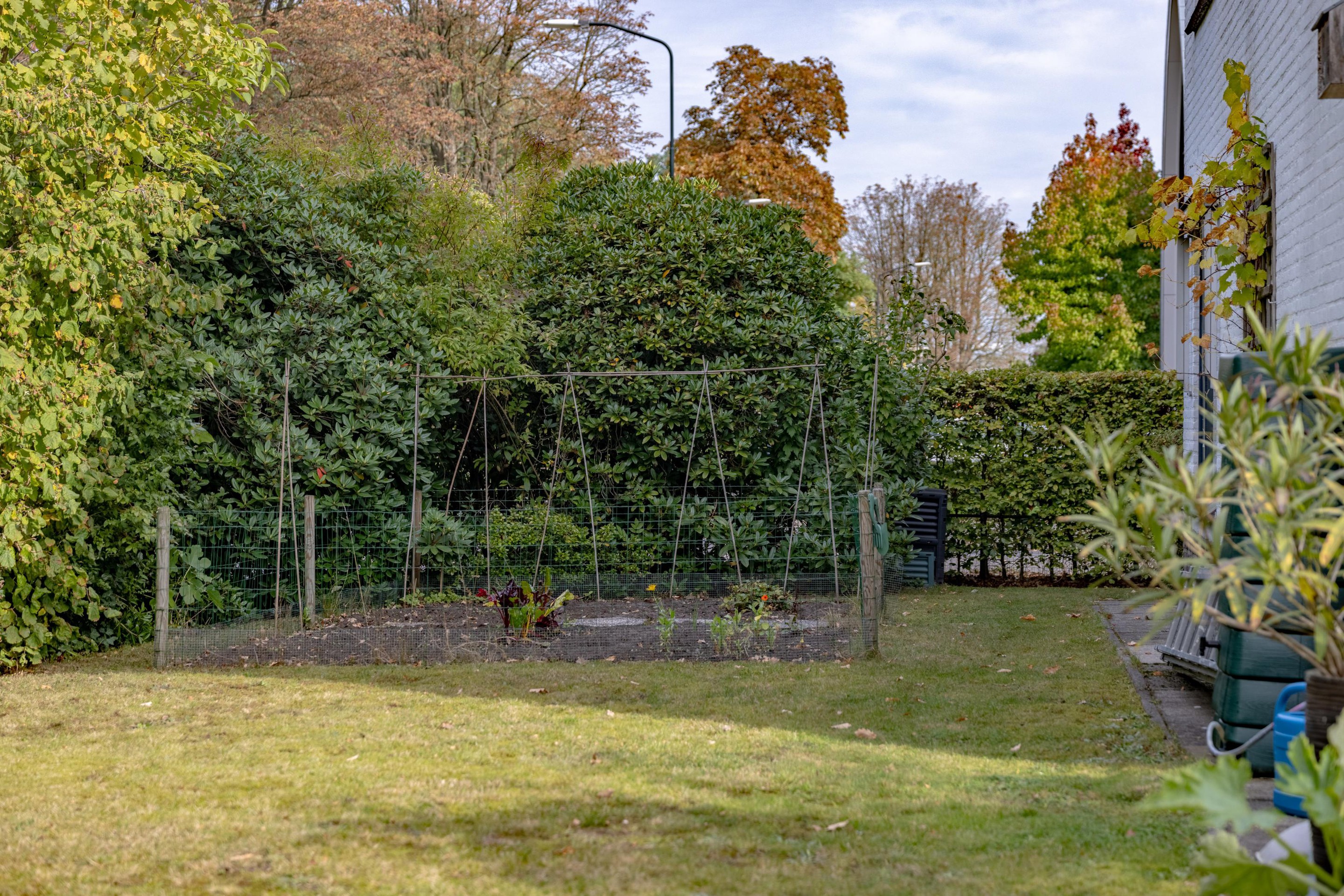 De besloten achtertuin op het zuiden biedt veel privacy en is ingericht met terrassen, een moestuin en diverse fruit- en notenbomen. Via de Meester van Hasseltlaan bereikt u de garage met bergzolder en de oprit met ruimte voor meerdere auto’s.