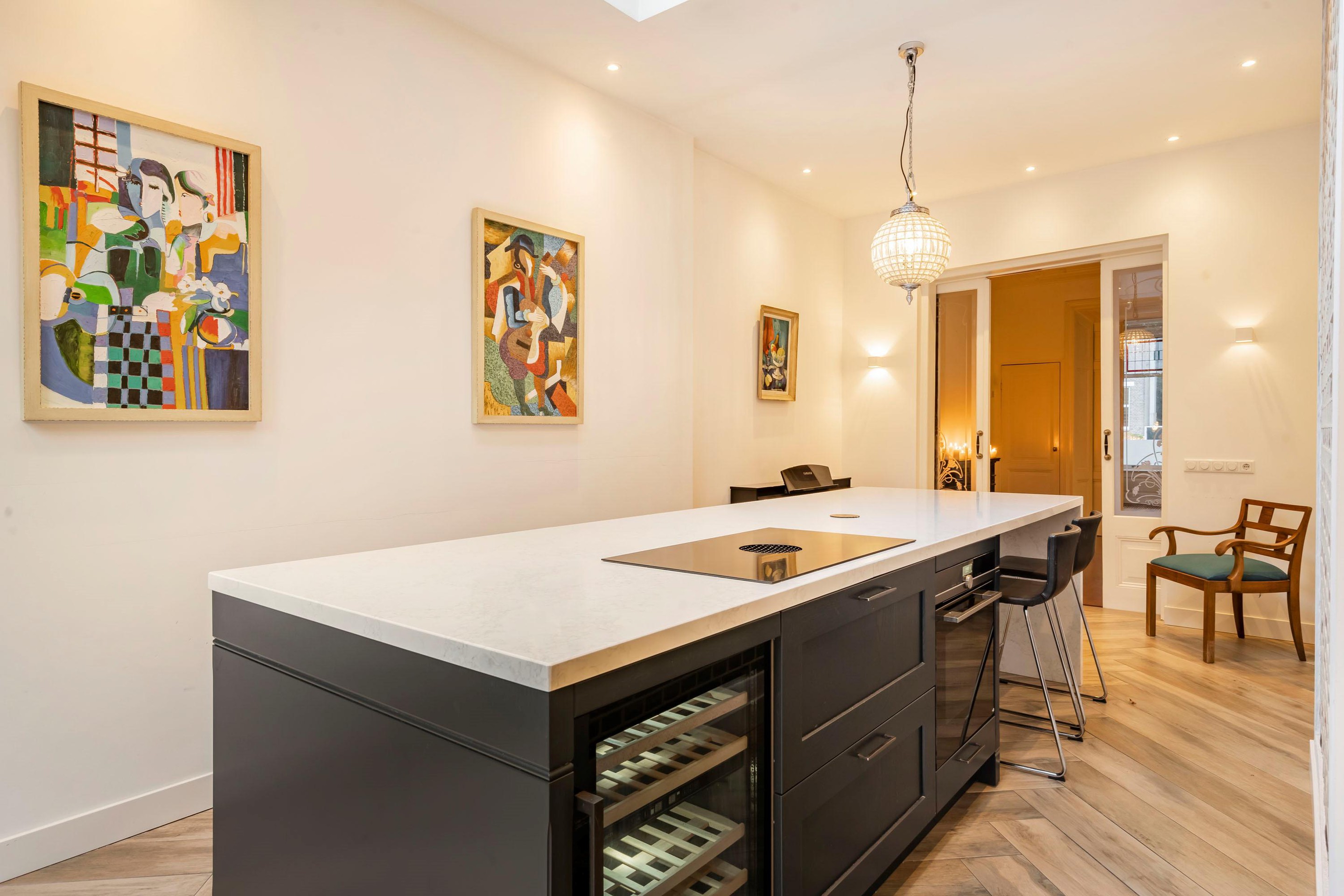 - Zeer royale keuken met kookeiland, bar, Bora inductie, Quooker, stoomoven, reguliere oven, koffiemachine en gekoelde wijnkast