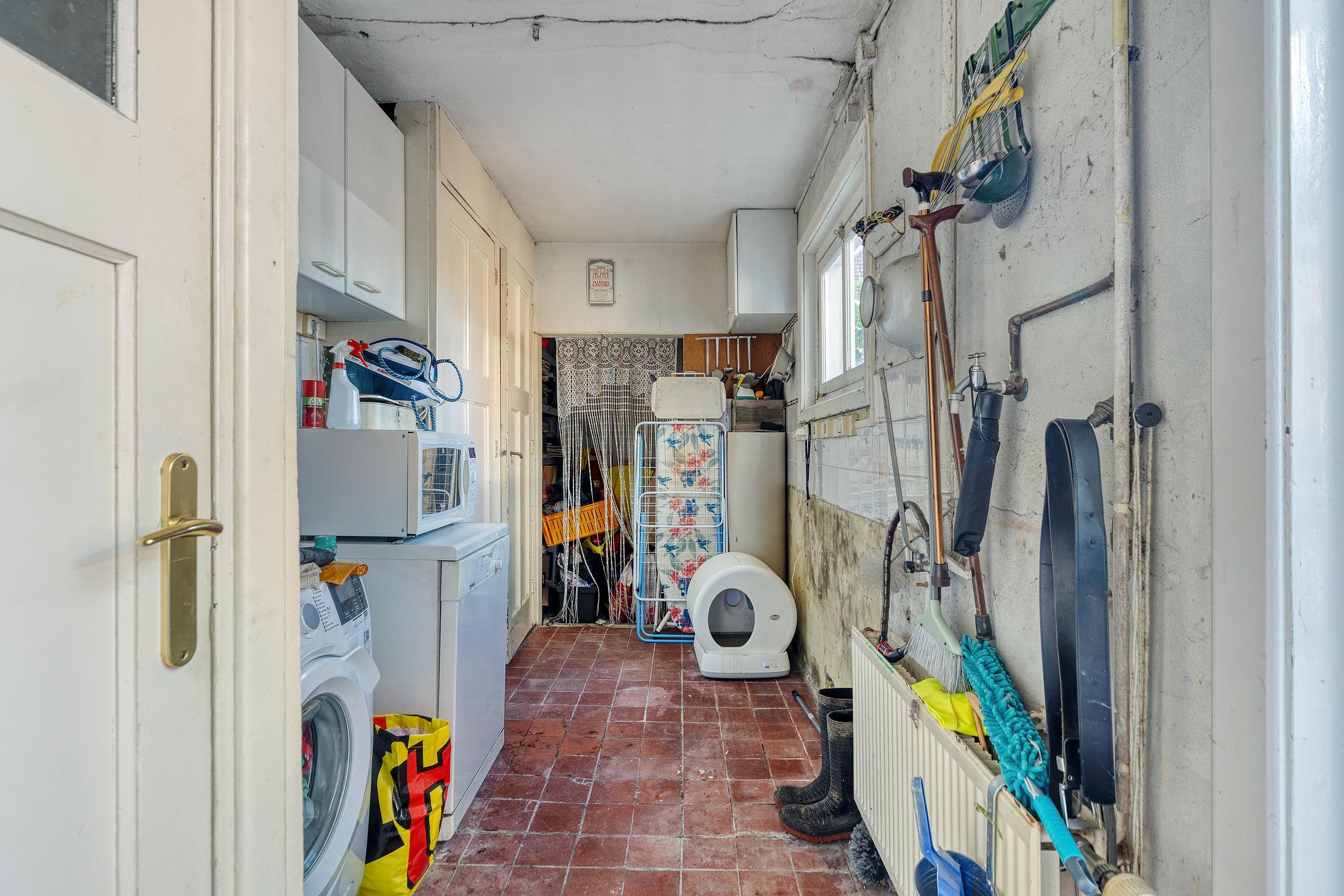 Praktisch een bijkeuken in de woning. Hier plaats je de wasmachine en droger en heb je meer dan voldoende ruimte om het nodige op te bergen. Laat de boodschappen maar komen! Via de bijkeuken is er toegang tot de kelder en de tuin.