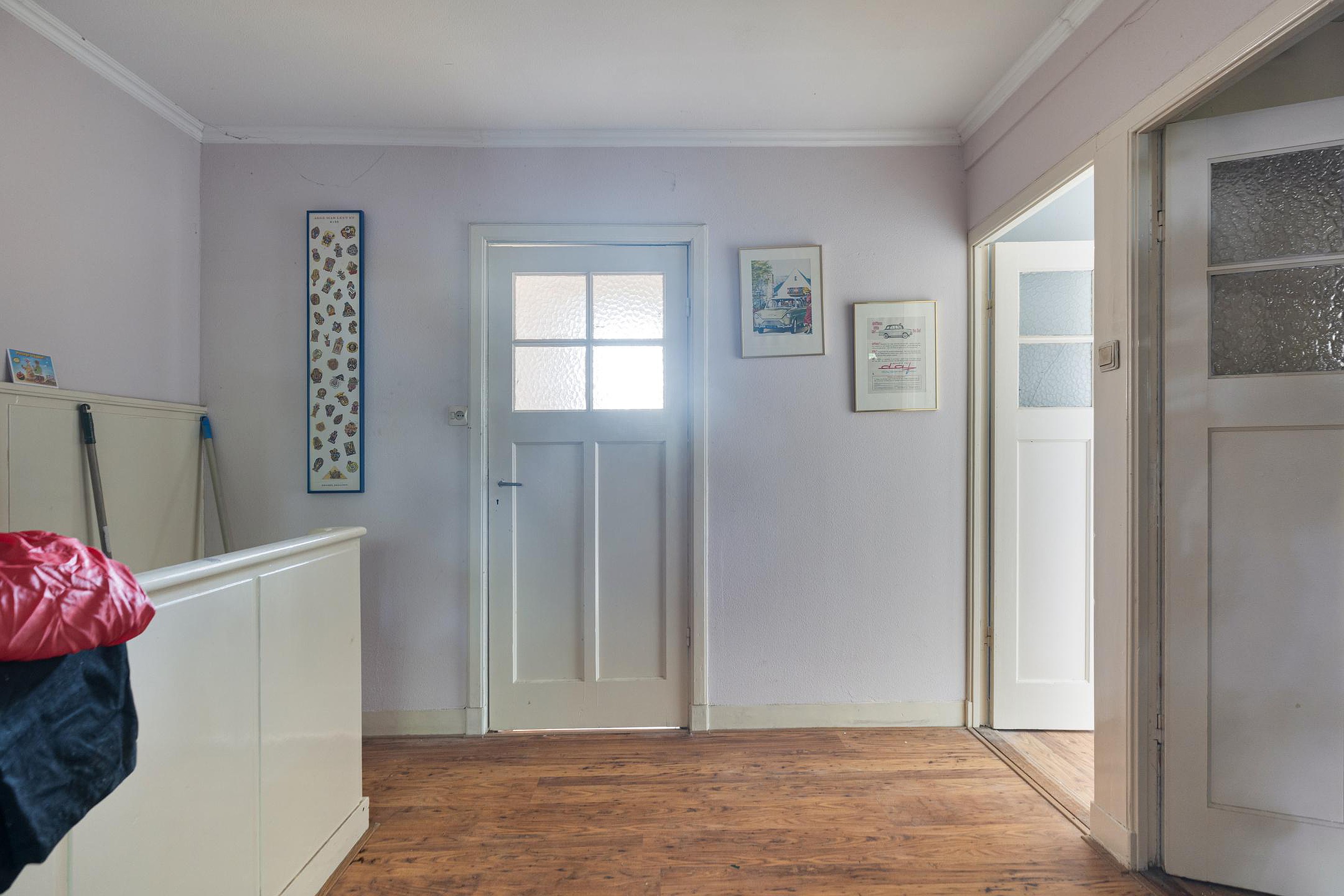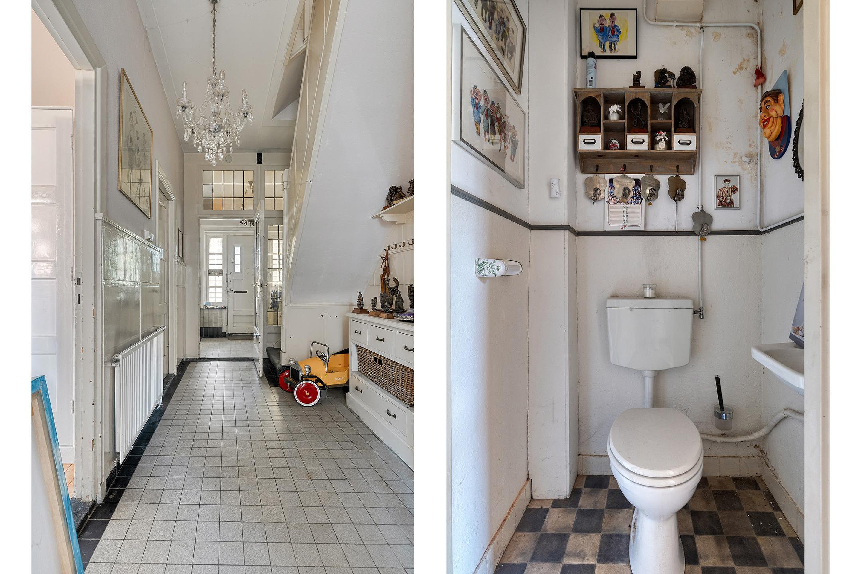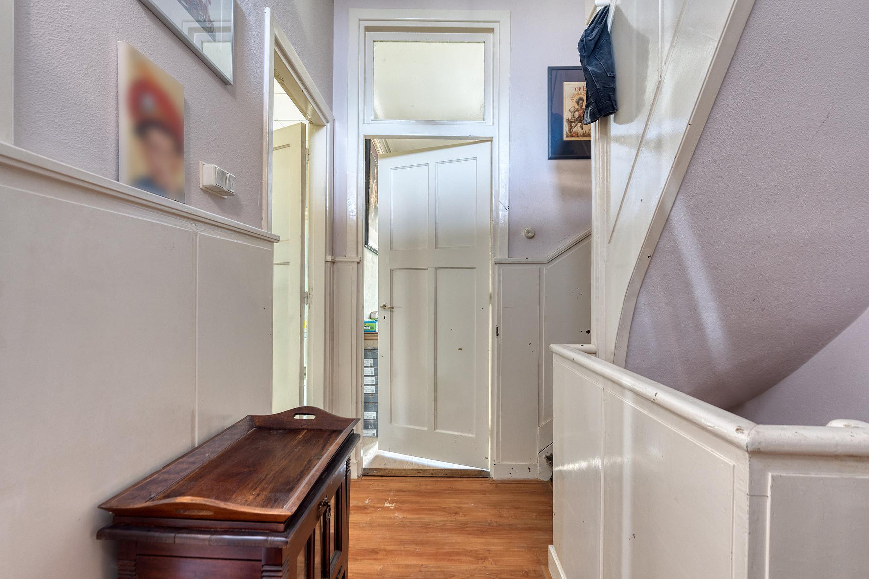 Ruim opgezette hal waar een mooie dressoirkast kan worden geplaatst. De lambrisering en het hoge plafond maken de hal nog ruimtelijker. Er is toegang tot de woonkamer, eetkamer, keuken, het toilet en de trapopgang naar de verdiepingen.