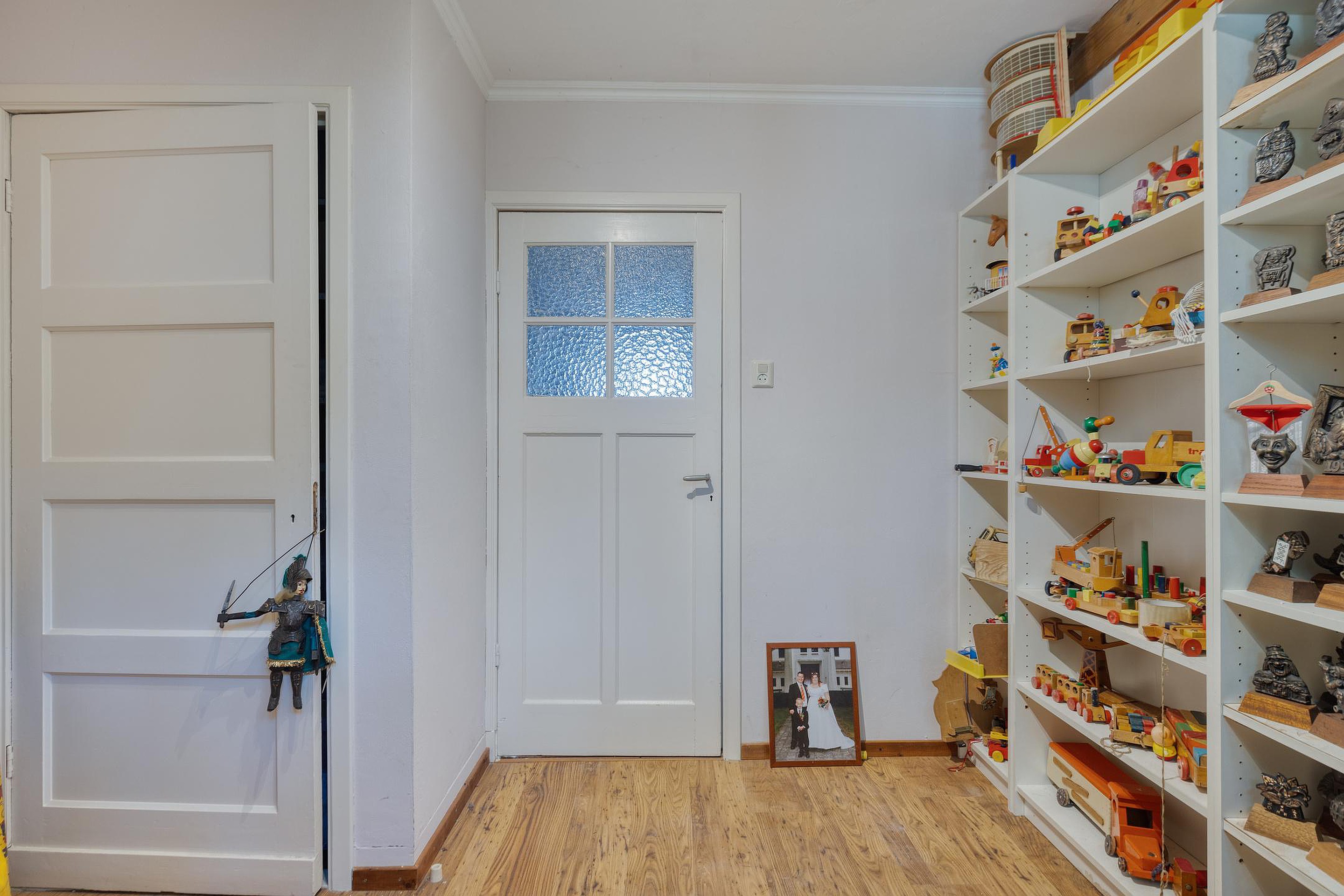 Weer zo’n leuke kinderkamer aan die aan de voorzijde van de woning is gelegen. De kamer heeft een diepe vaste kast en het karakter van de woning is ook hier goed terug te vinden met de mooie paneeldeuren.
