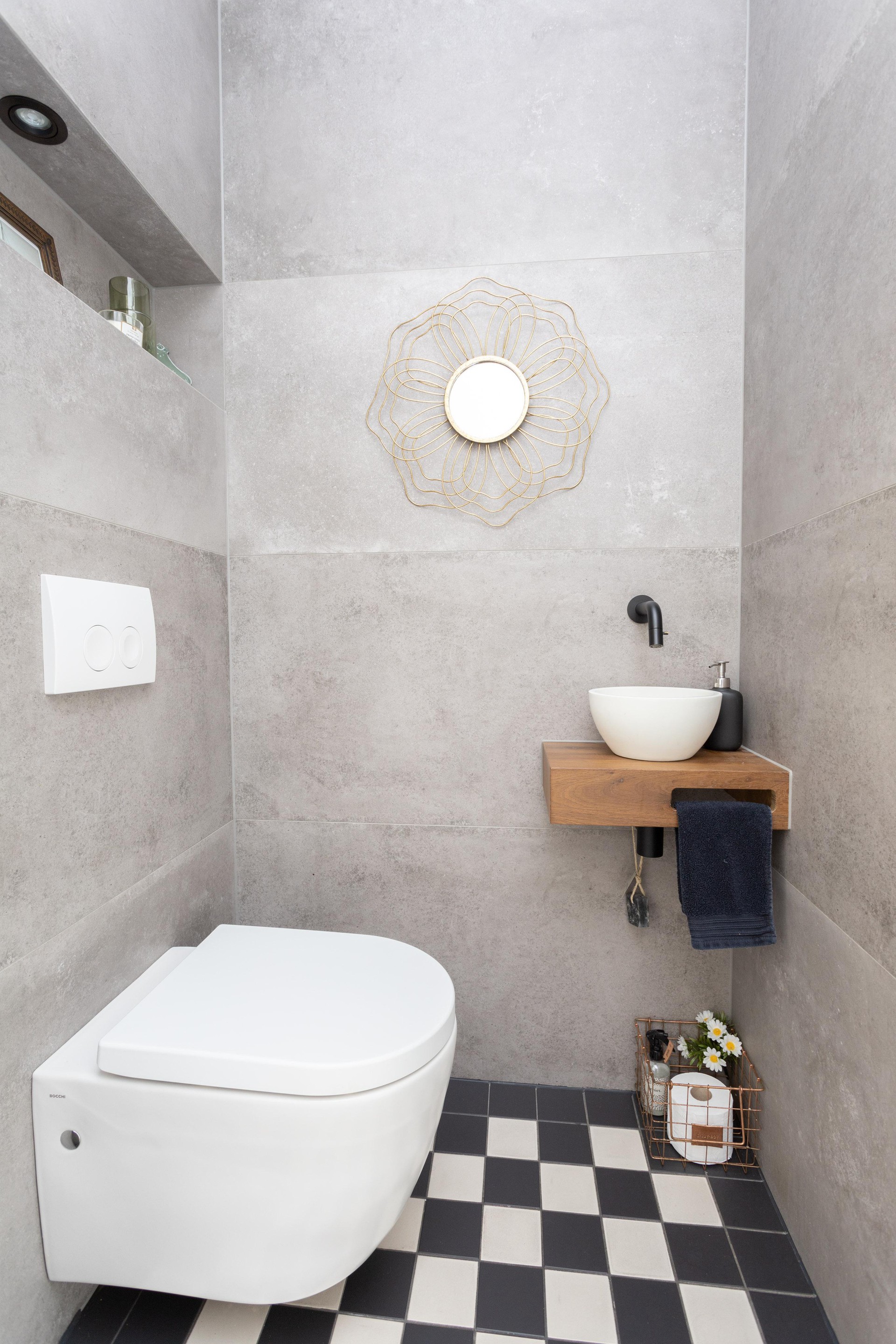 Entrance hall with meter cupboard, toilet with hand basin, and access to the spacious living room. The living room features a beautiful herringbone parquet floor and a built-in electric fireplace – pure luxury! Black steel-look doors lead to the hallway and the storage cupboard under the stairs. Note also the walls and ceiling – perfectly plastered!