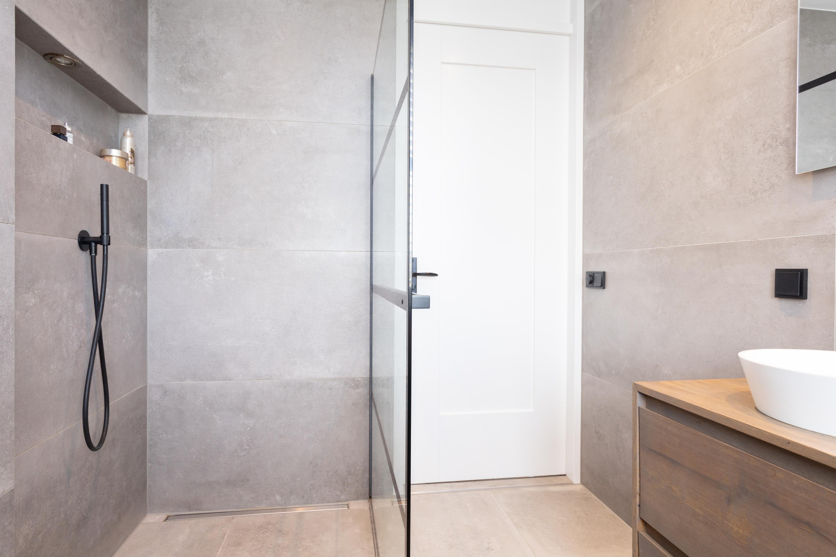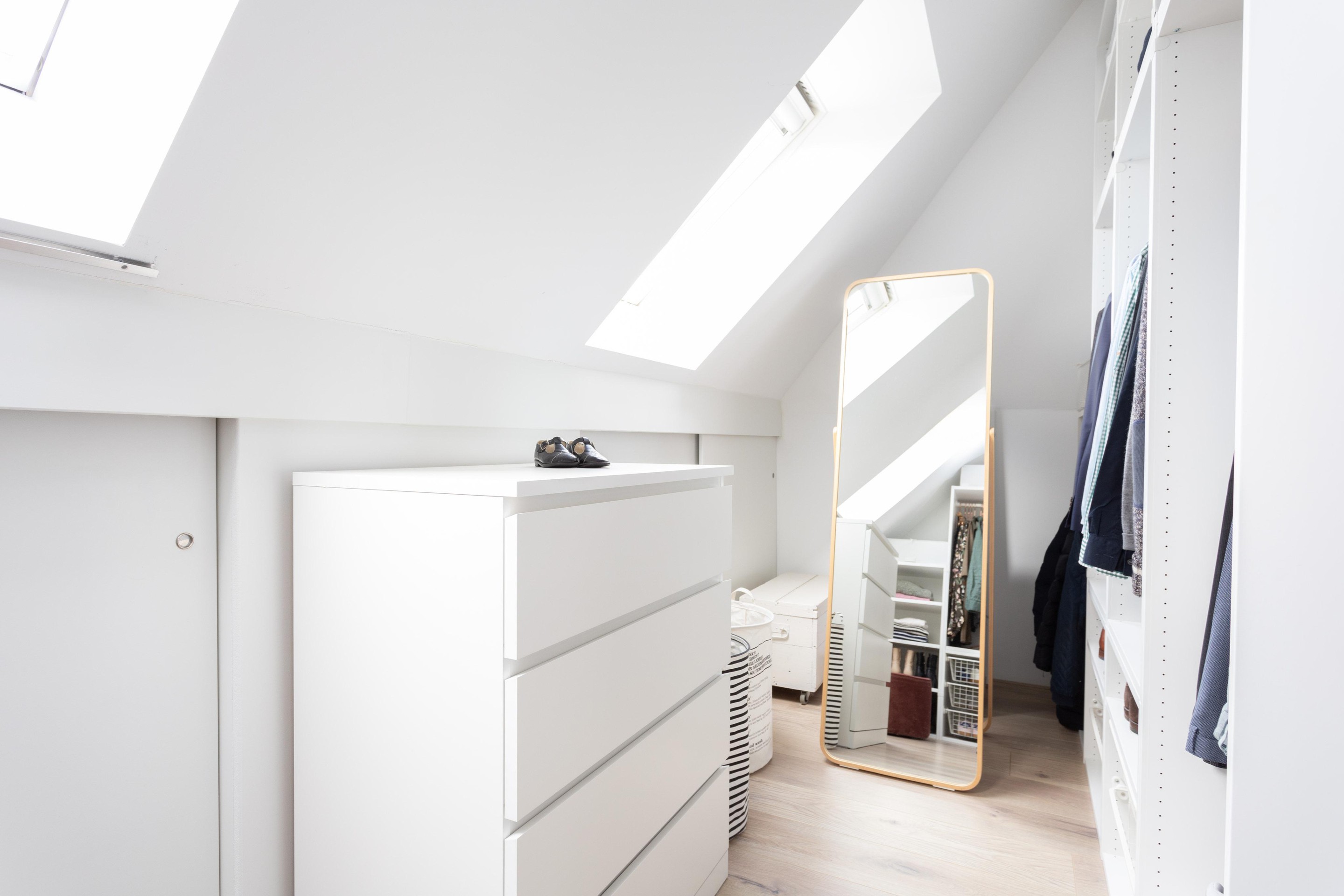Here you will find a spacious fourth bedroom (22 m2) with dormer window and a large walk-in wardrobe with two skylights. At both the front and rear there is ample storage space behind the knee walls with sliding doors. Finally, there is a separate laundry/technical room with sink, washing machine and dryer connections, and the hybrid heat pump. On warm summer days, the heat pump can be reversed to provide underfloor cooling throughout the house.