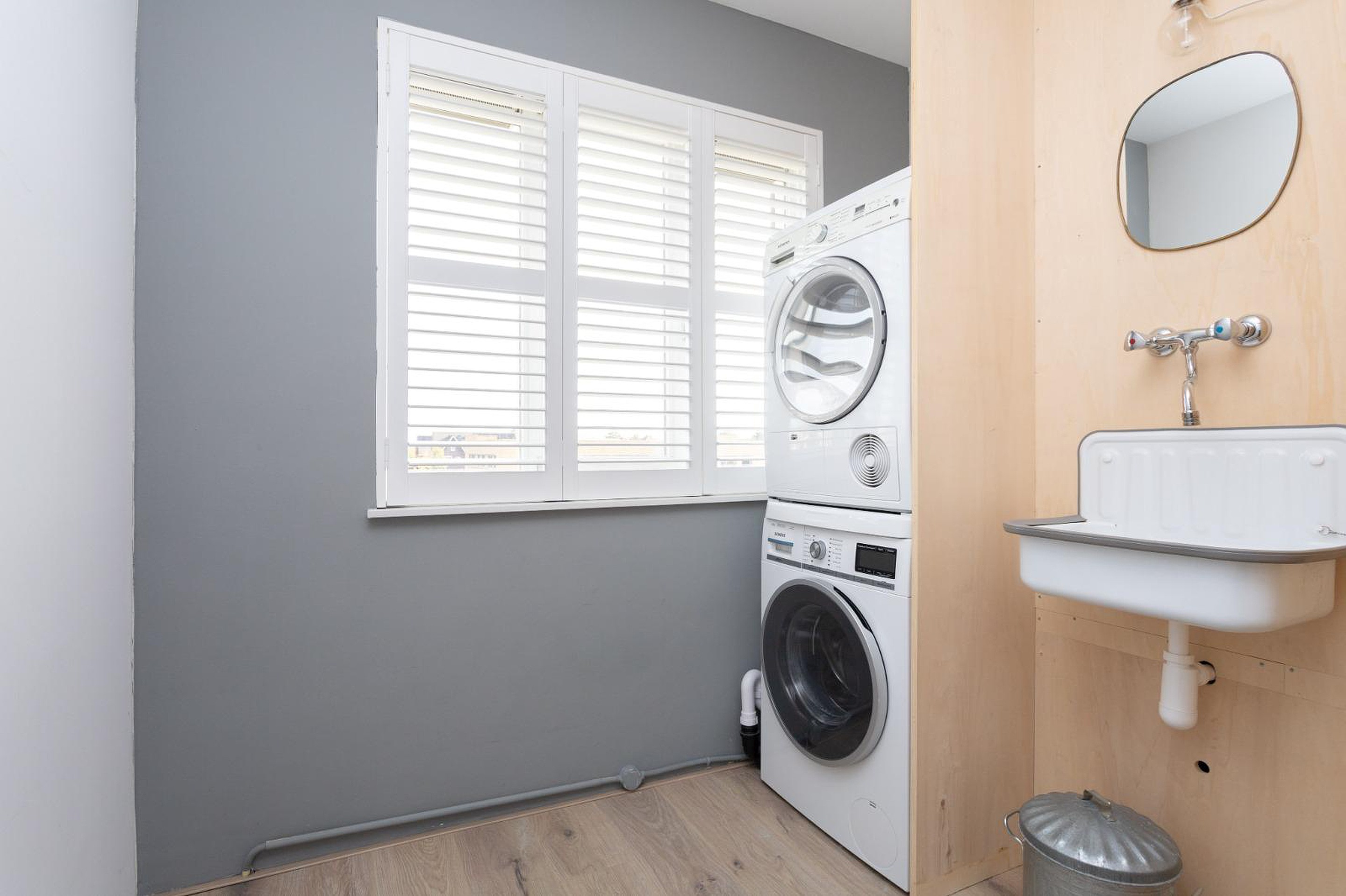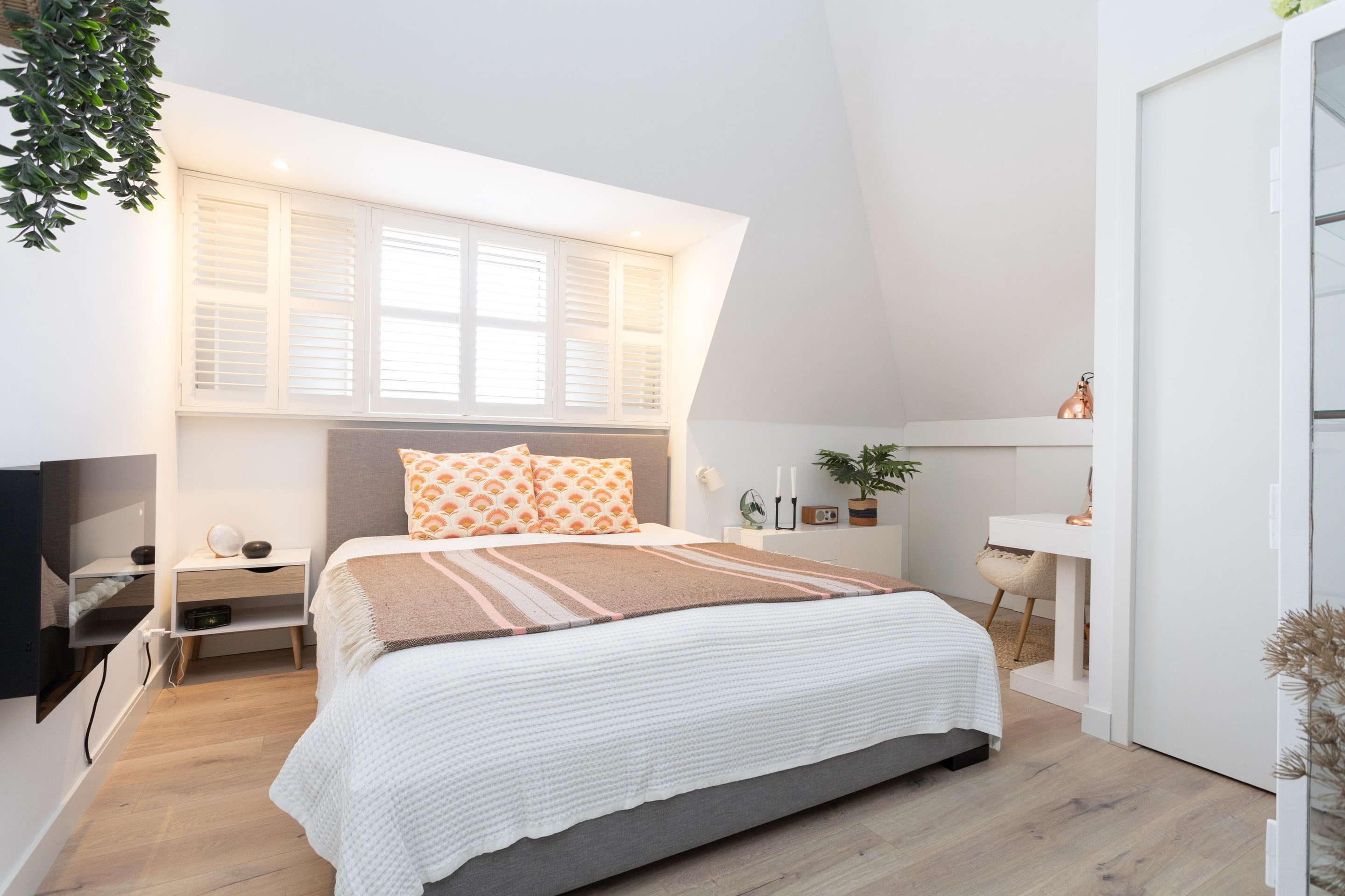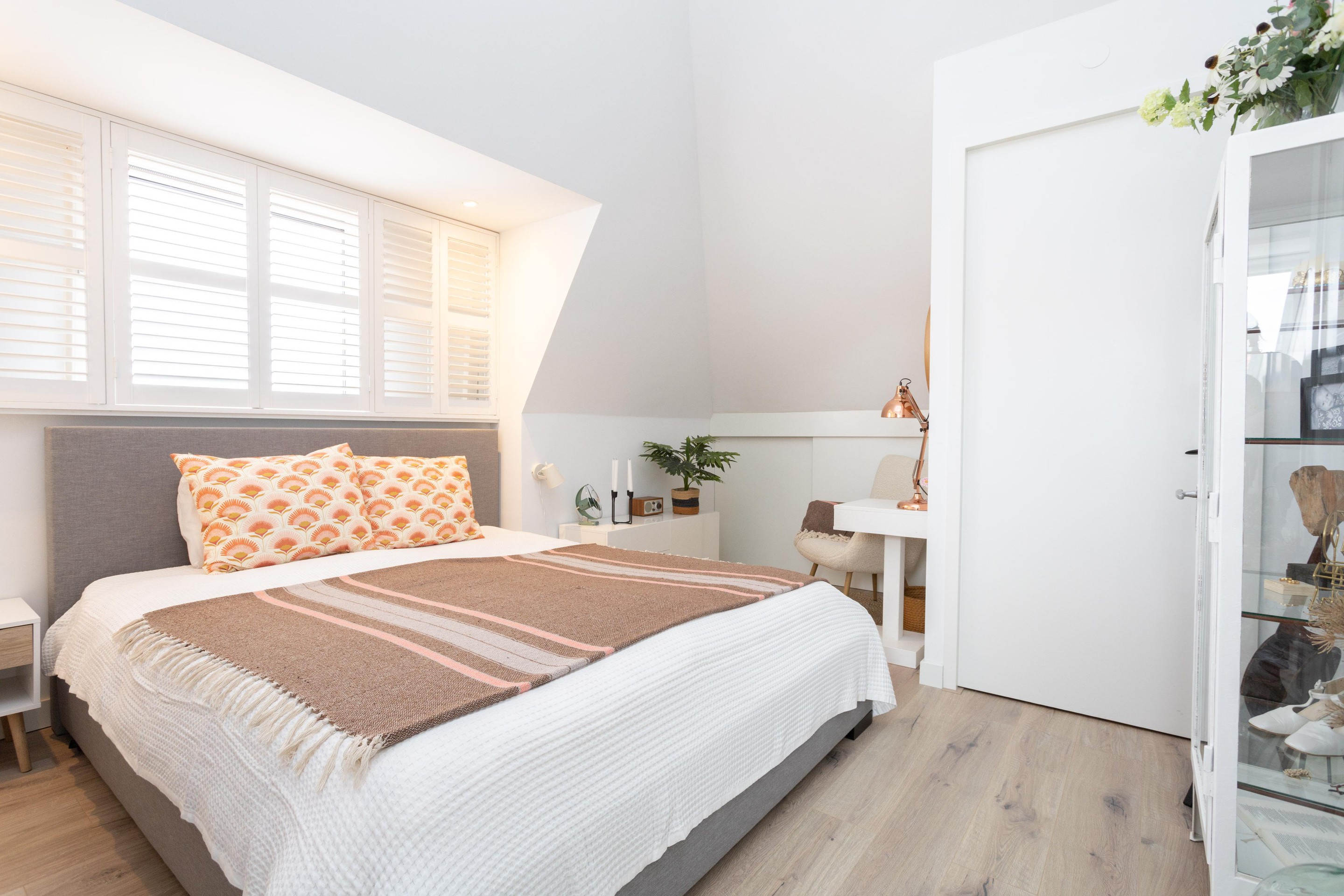 Op deze verdieping een ruime vierde slaapkamer (22 m2) met dakkapel en grote inloopkast met twee dakramen. Zowel aan de voor- als achterzijde veel bergruimte achter de knieschotten met schuifdeuren. Tot slot een aparte was- / technische ruimte met gootsteen, opstelling van wasmachine en wasdroger en hybride warmtepomp. Op warme zomerdagen kan de warmtepomp omgekeerd werken en door het hele huis zorgen voor vloerkoeling.