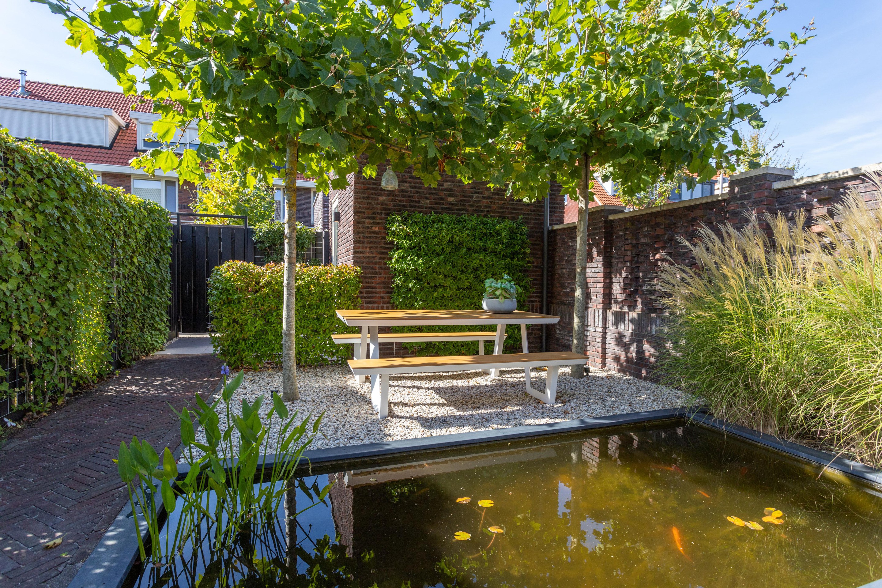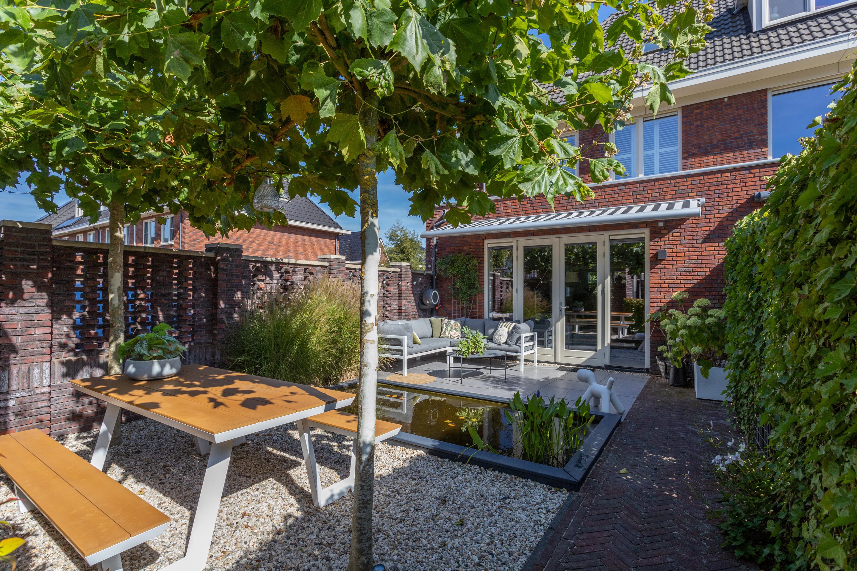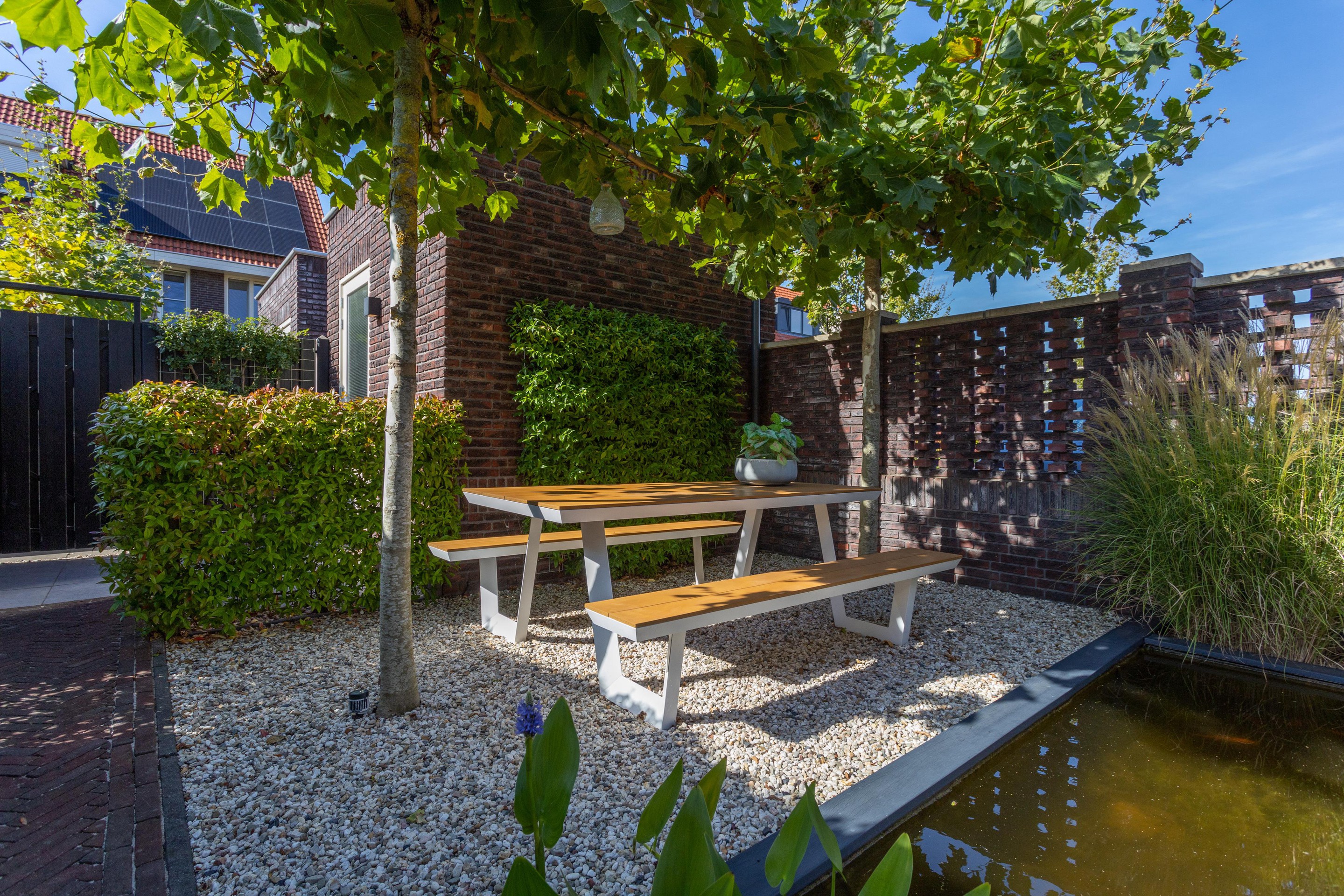 De voor- en achtertuin zijn onder architectuur aangelegd en ingericht. De achtertuin is gelegen op het zonnige westen. De ruime stenen berging (7,5 m2) is geïsoleerd en voorzien van elektriciteit.
