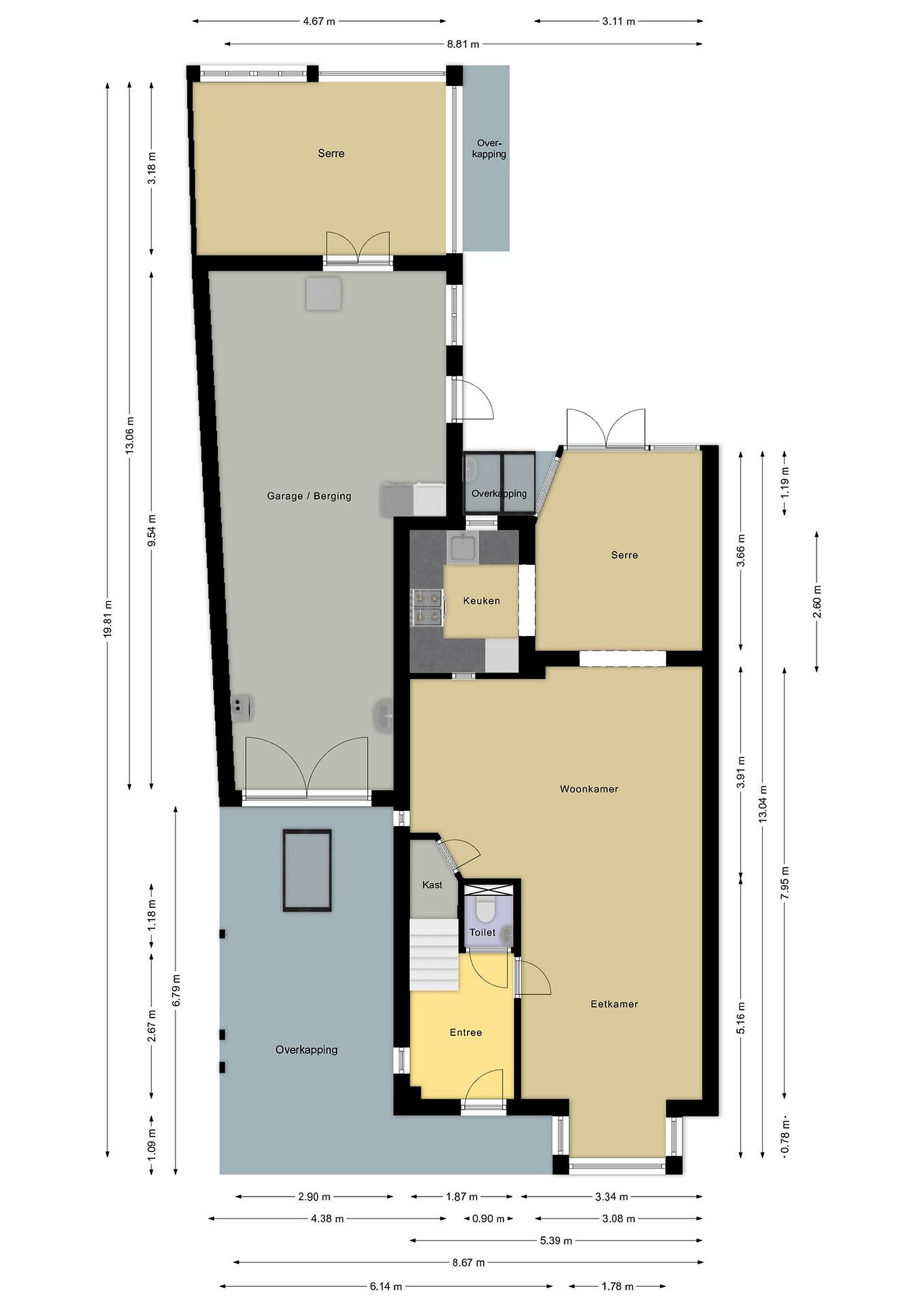 De aan de voorzijde gelegen carport is voorzien van een grote lichtkoepel.