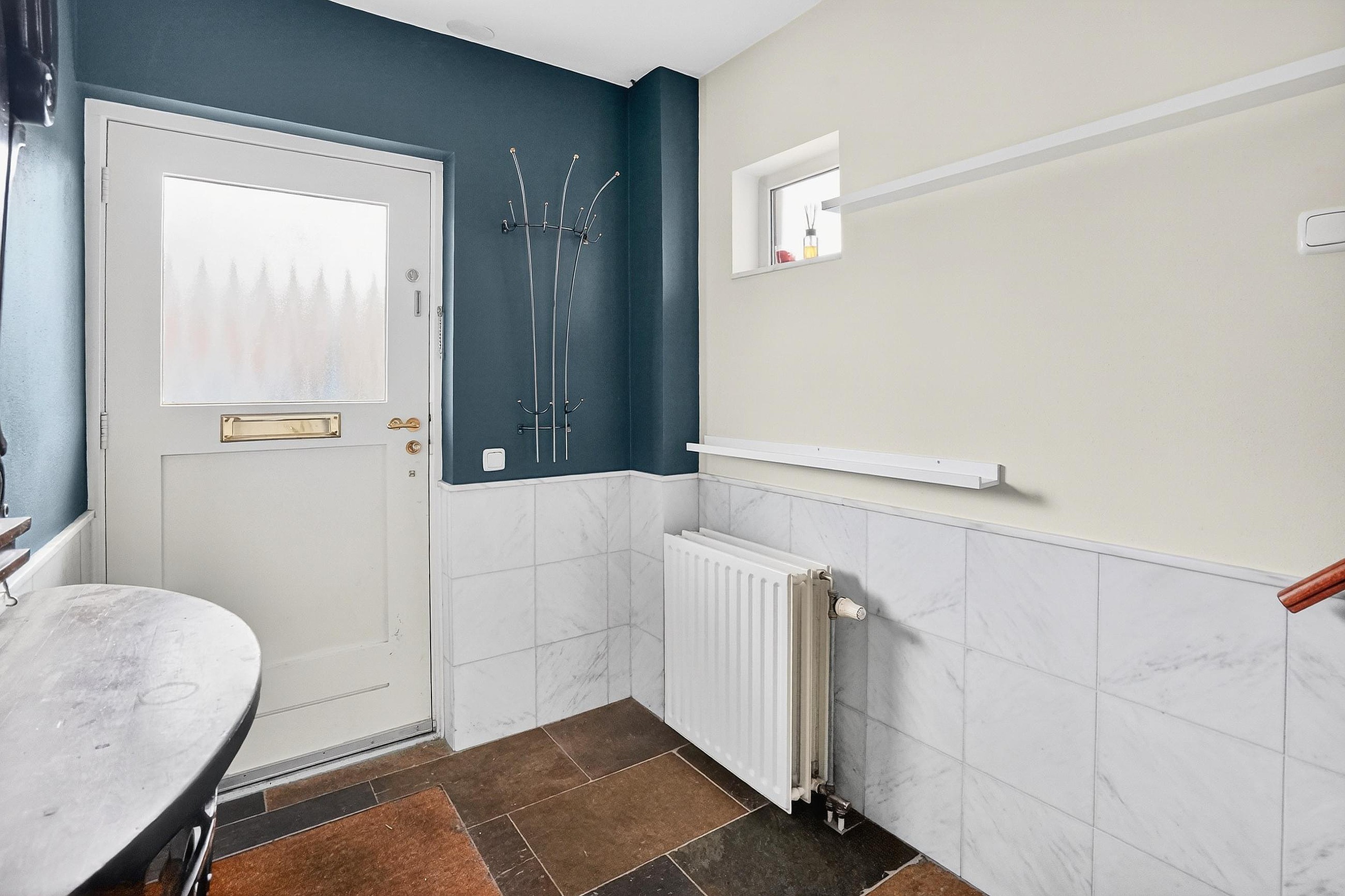 De uitnodigende, ruime hal is voorzien van een leistenen vloer met vloerverwarming. Vanuit de hal zijn de trapopgang naar de 1e verdieping, het gastentoilet en de woonkamer bereikbaar.