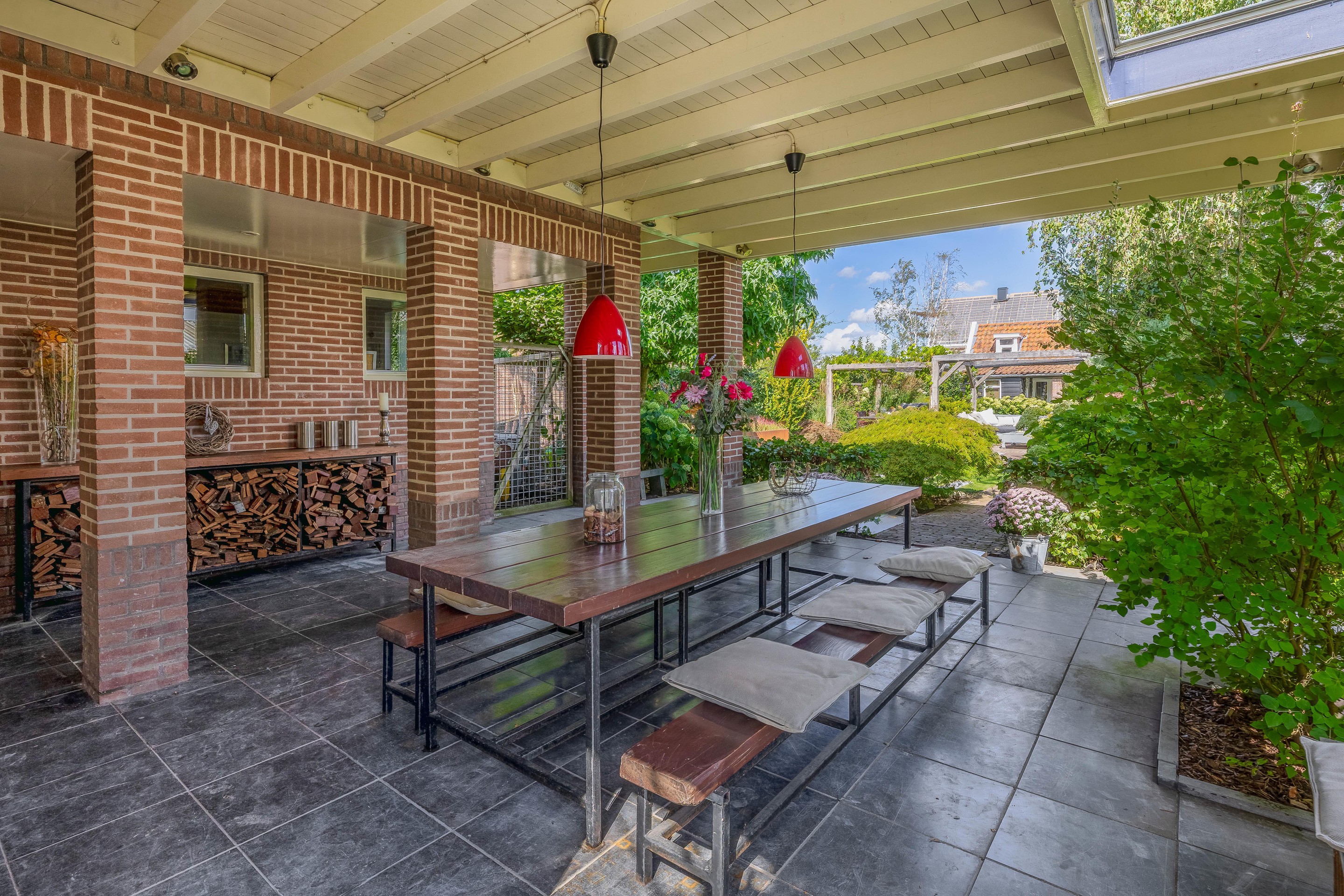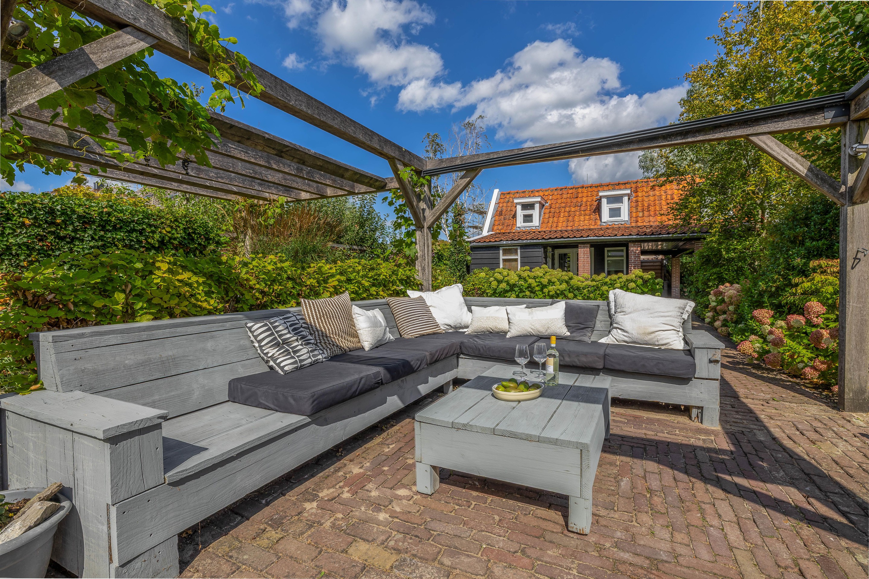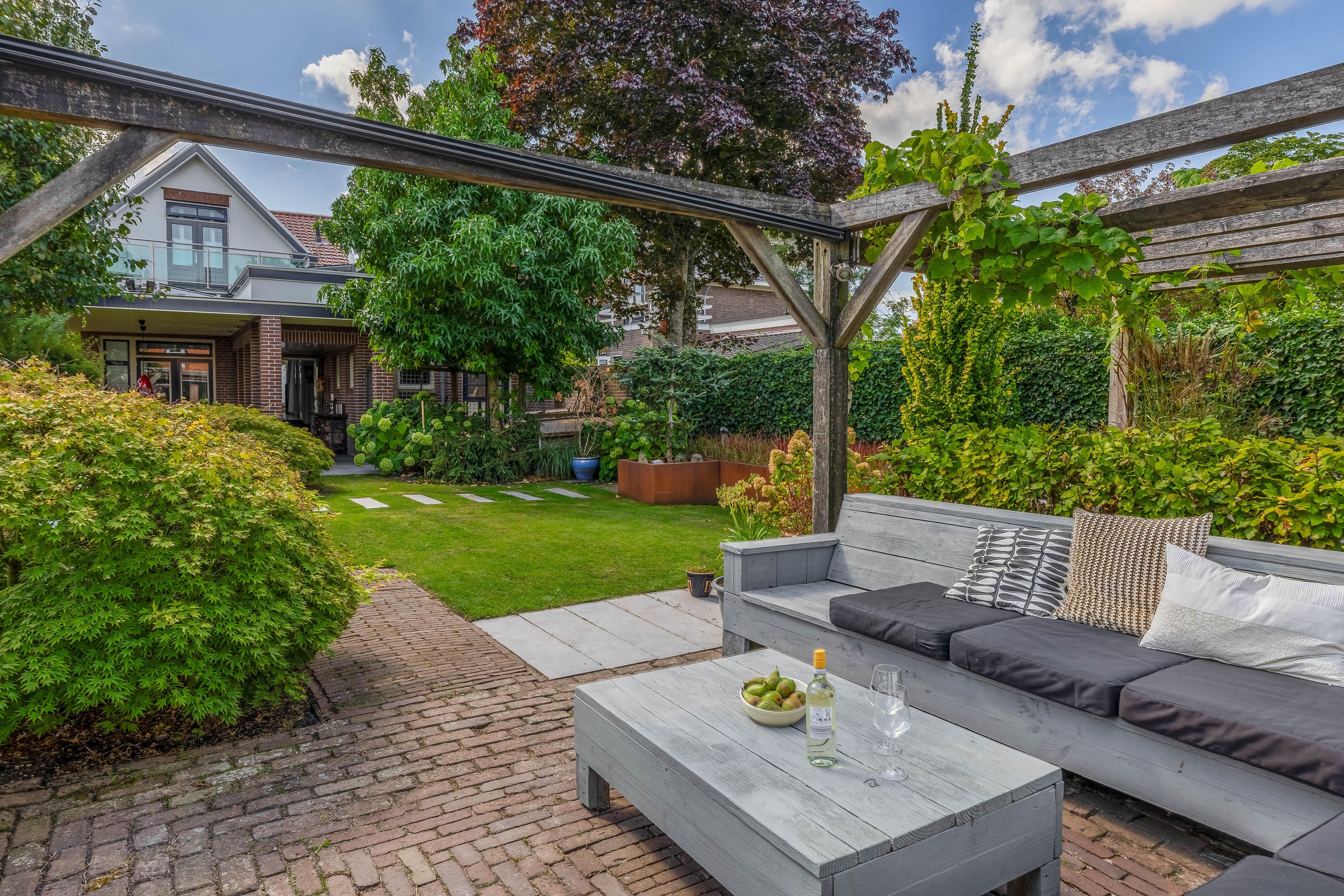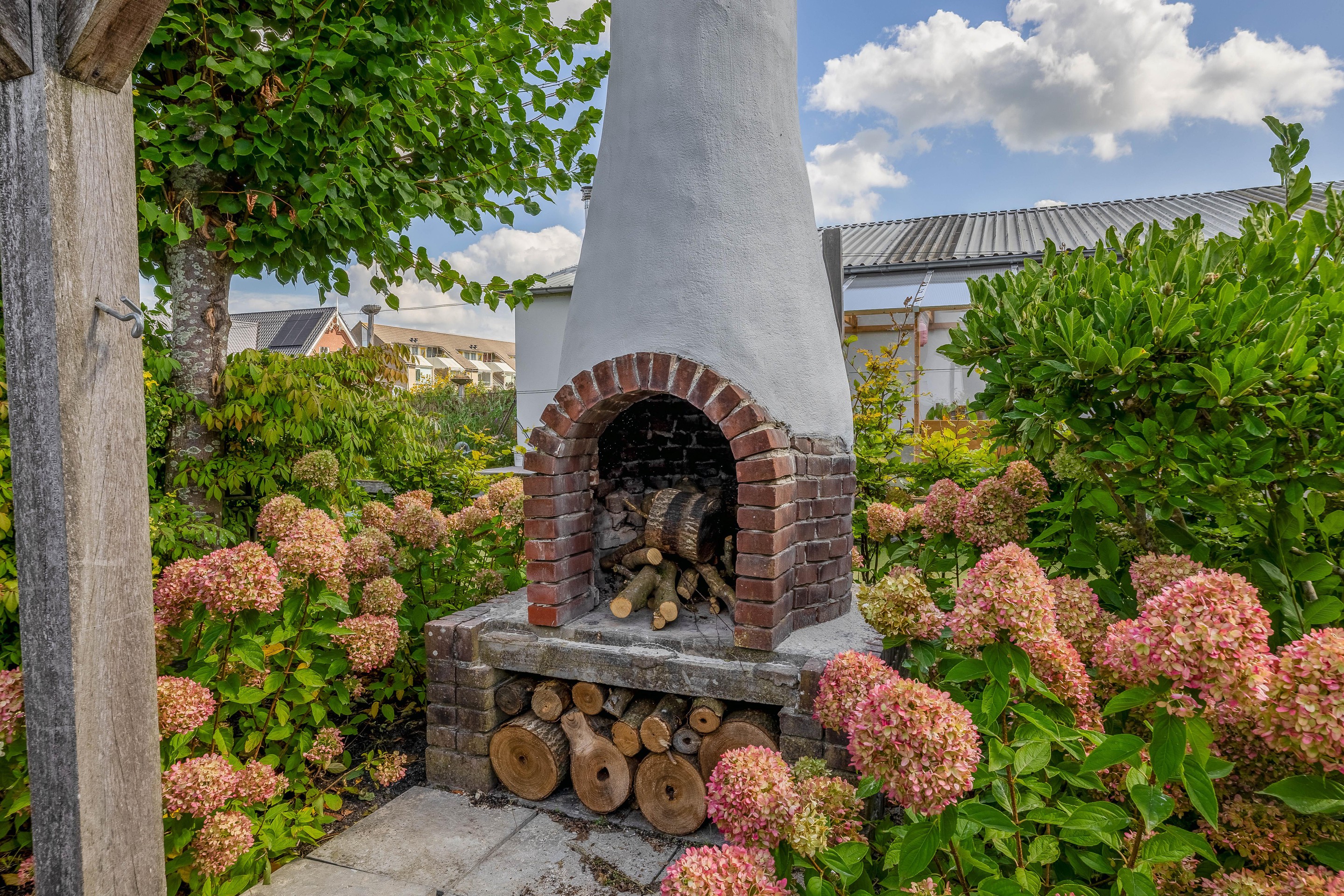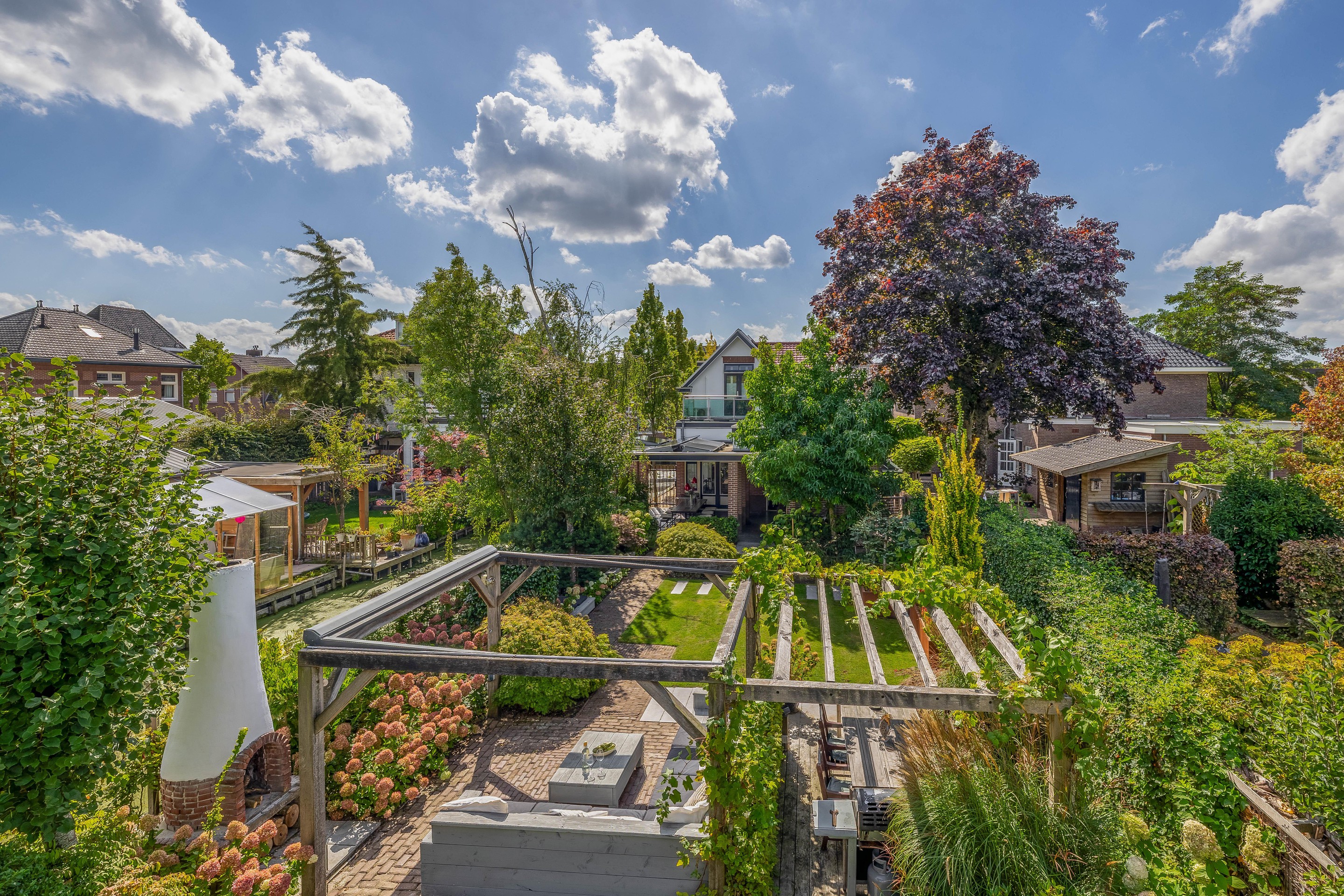 De achtertuin is bereikbaar via de bijkeuken, het kantoor en via de afgesloten tuin aan de rechterzijde. Direct achter het huis is een robuuste gemetselde overkapping gebouwd: een fantastische plek om lange avonden te tafelen of gewoon te genieten van het buitenleven. In het midden van de tuin kun je volop van de zon genieten: ideaal om te barbecueën of een plek waar kinderen lekker kunnen ravotten.