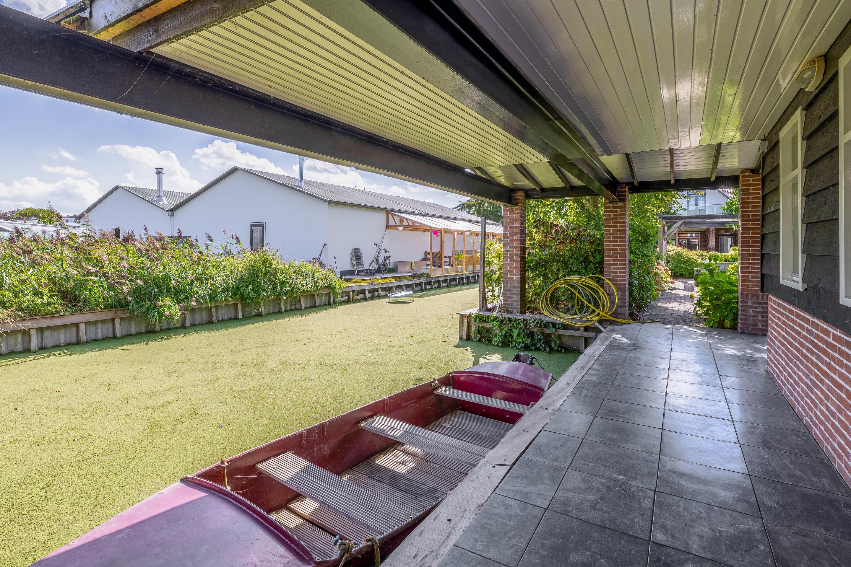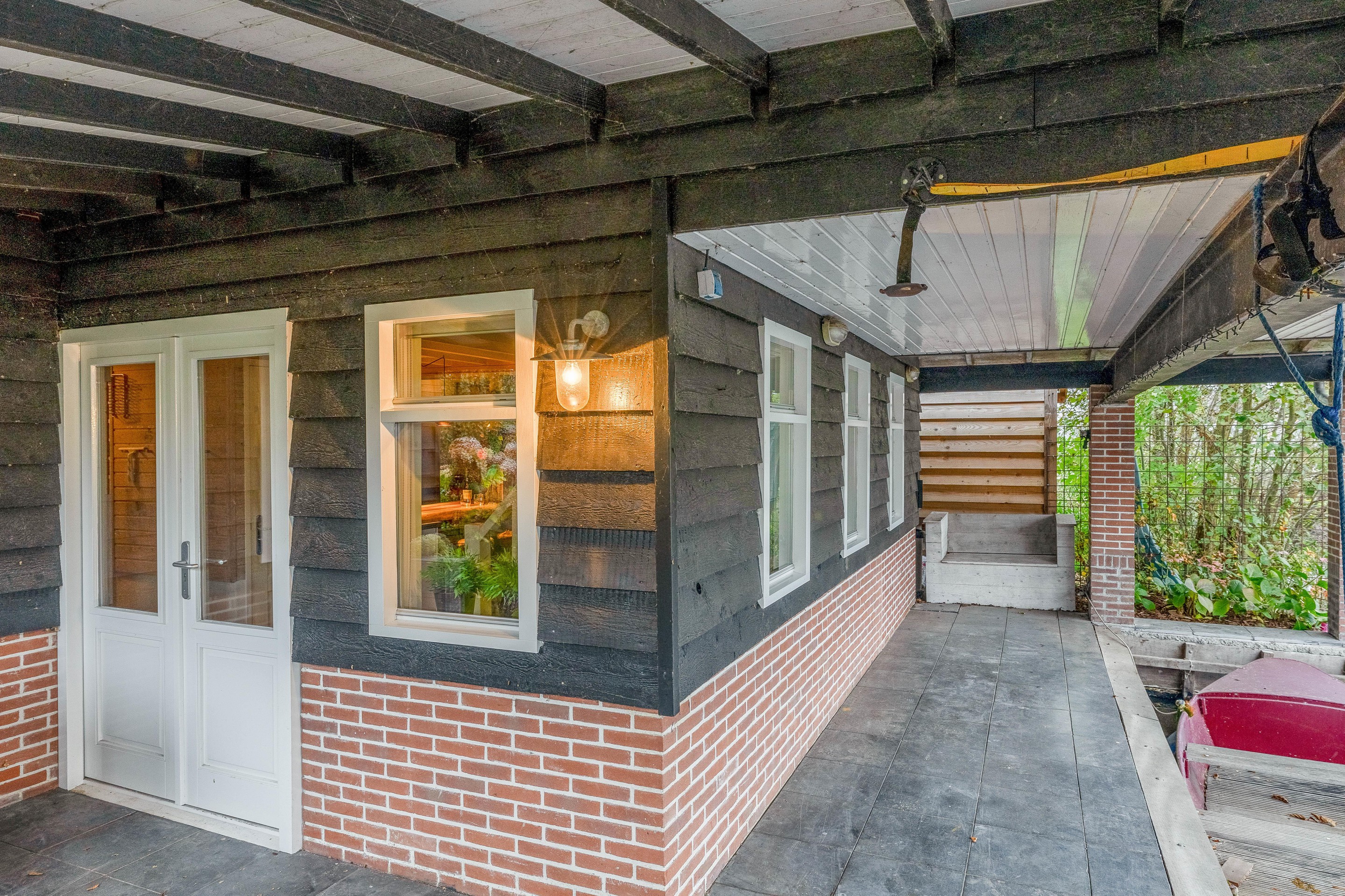 De zelfstandige woning achterop het perceel heeft een bruto vloeroppervlakte van ca. 41 m2. Dit fraaie pand is voorzien van een grote overkapping en een aanlegplaats voor de boot. Op het dak zijn drie kleine dakkapellen geplaatst. Binnen vinden we een gezellige woonkamer, een compleet ingerichte keuken met eetbar, een sauna, douche en toilet. De zolder, bereikbaar via een vaste trap, is ingericht als logeer- en studeerkamer.
