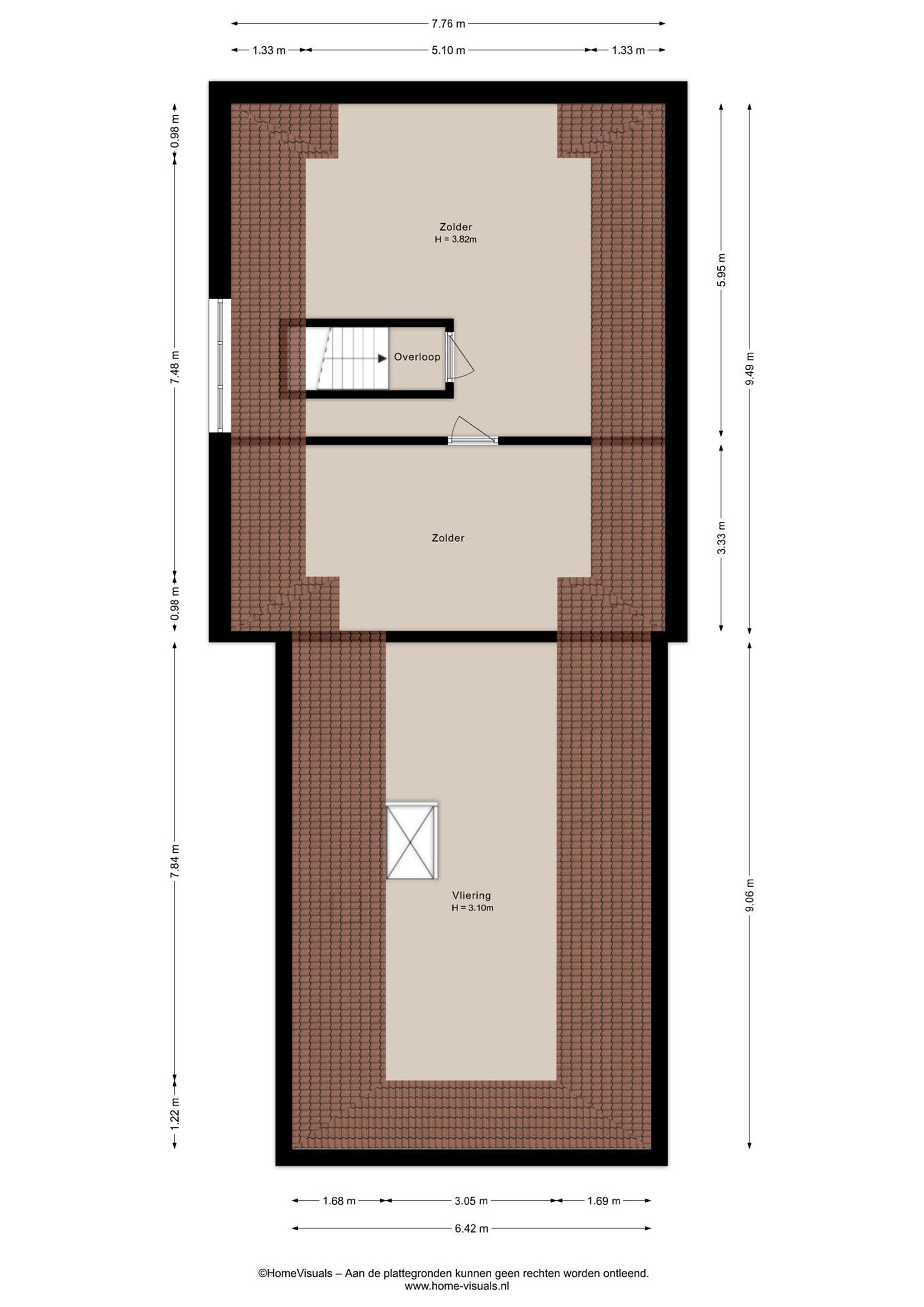 Middels vlizotrap op eerste verdieping bereikbare..